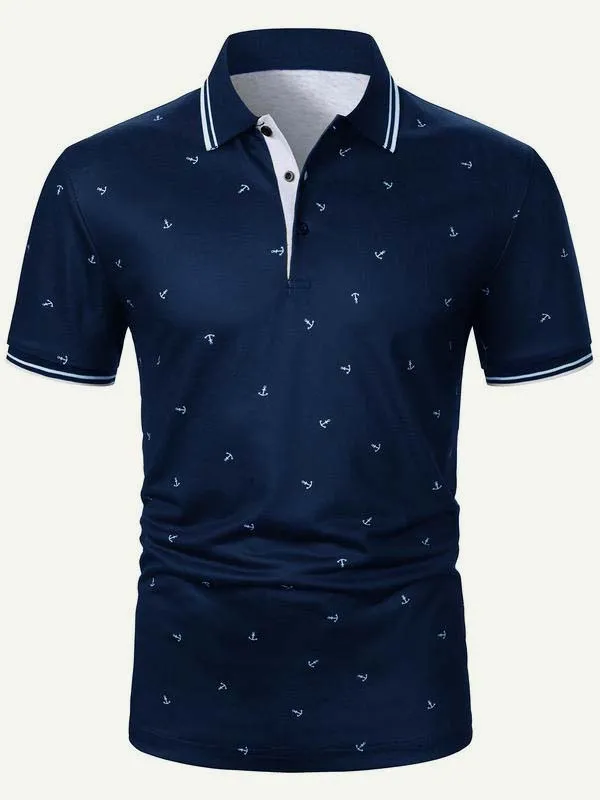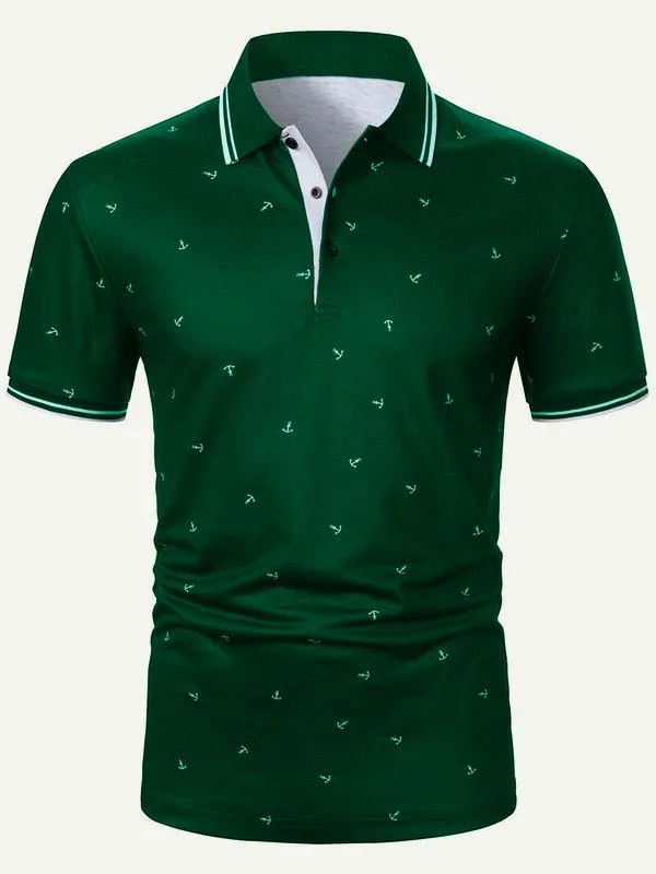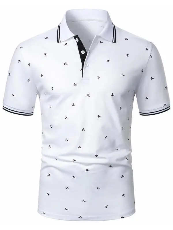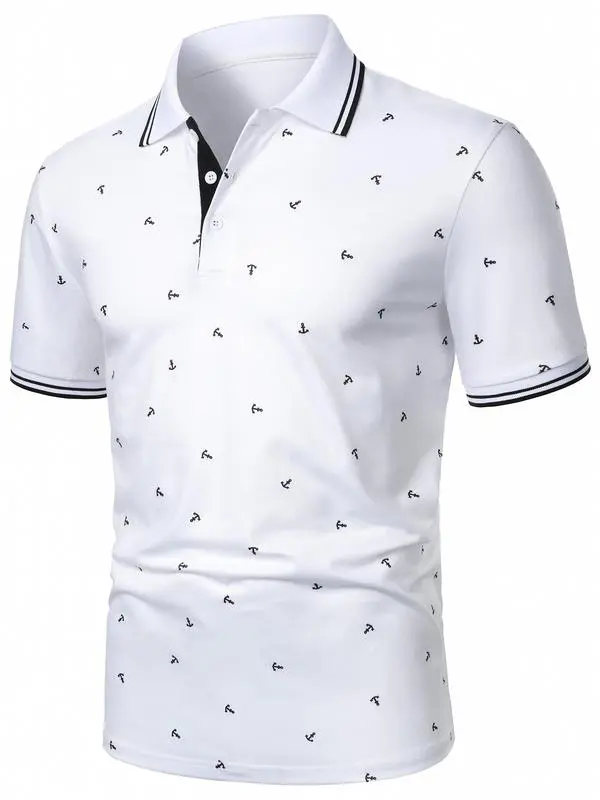 🔥$5 off for new customers🔥Men's Outfit 2-Piece Set Shortsleeve Polo Shirt & Drawstring Waist Shorts Set