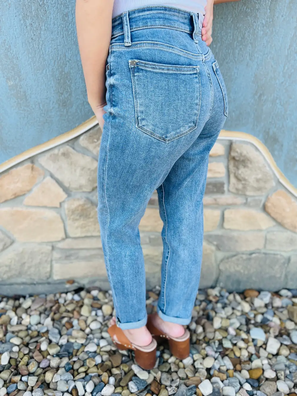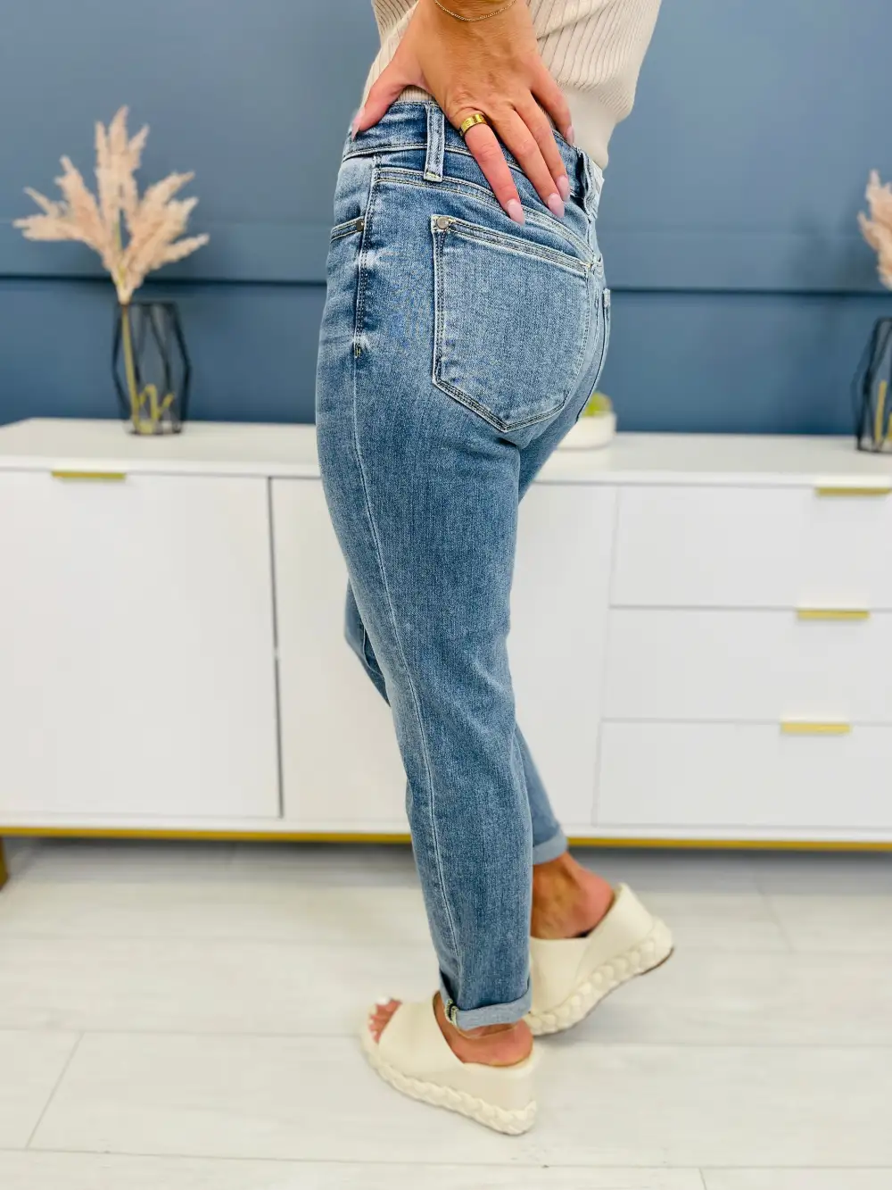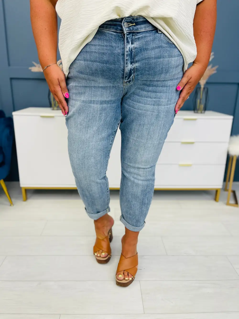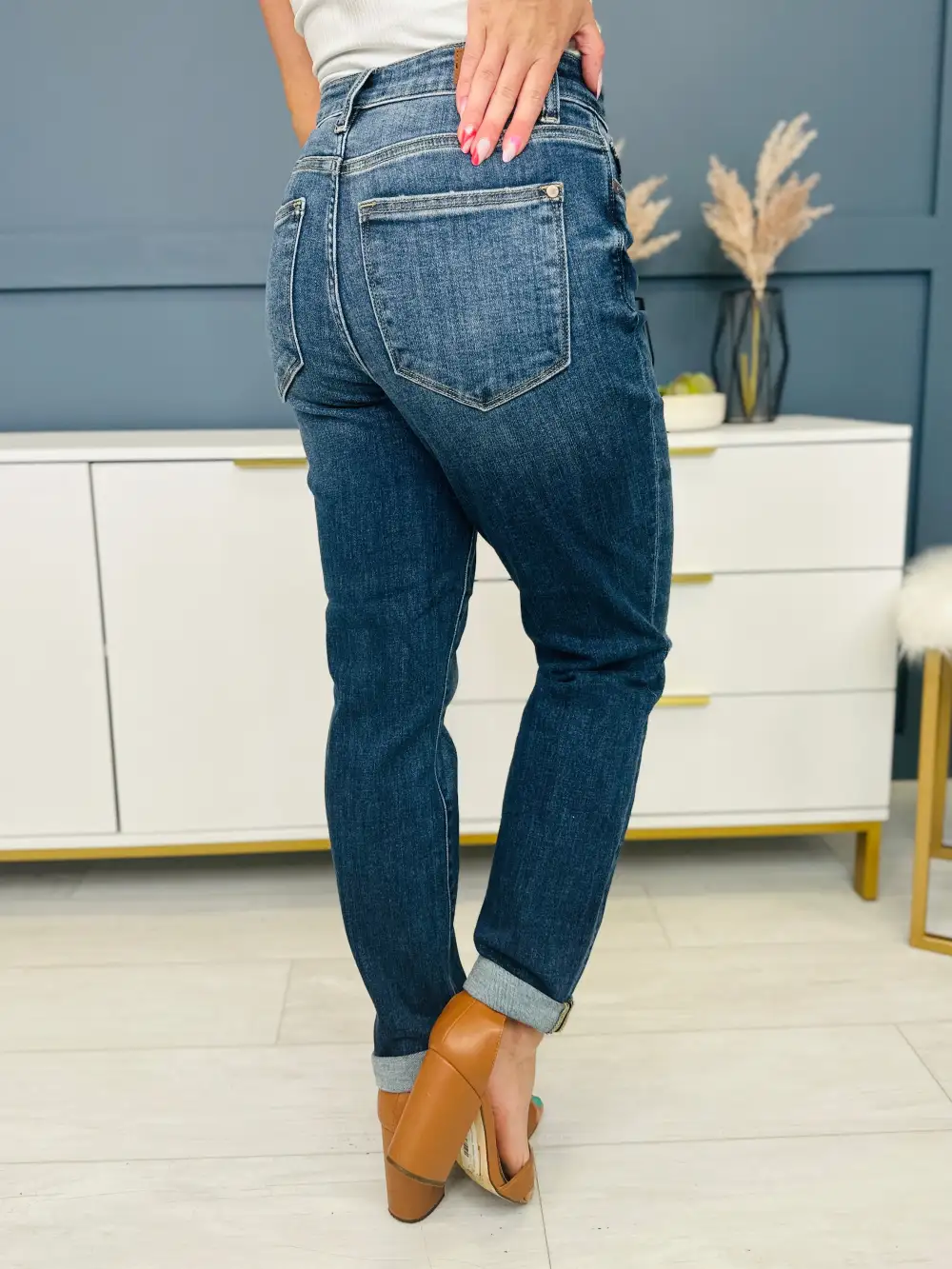 🔥Tummy Control Distressed Cuffed Boyfriend Jeans