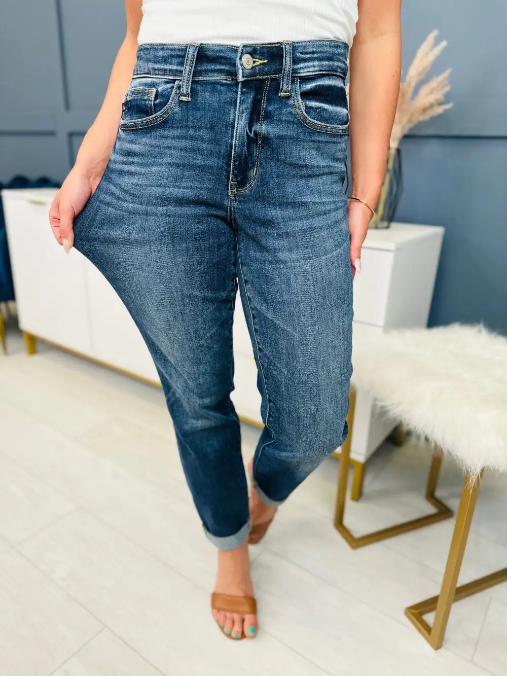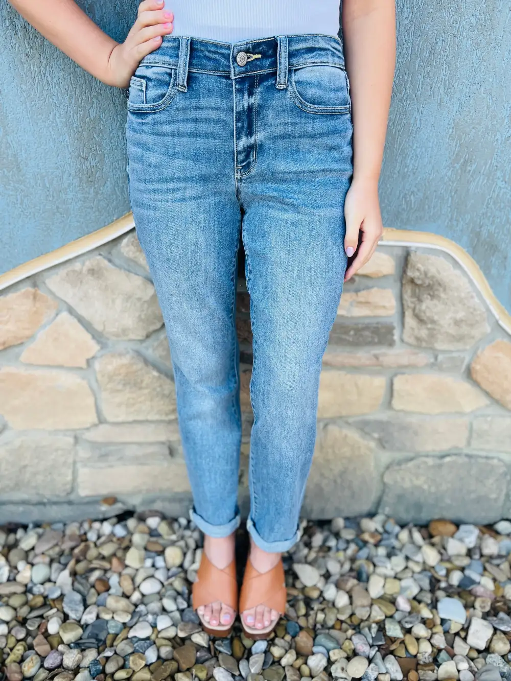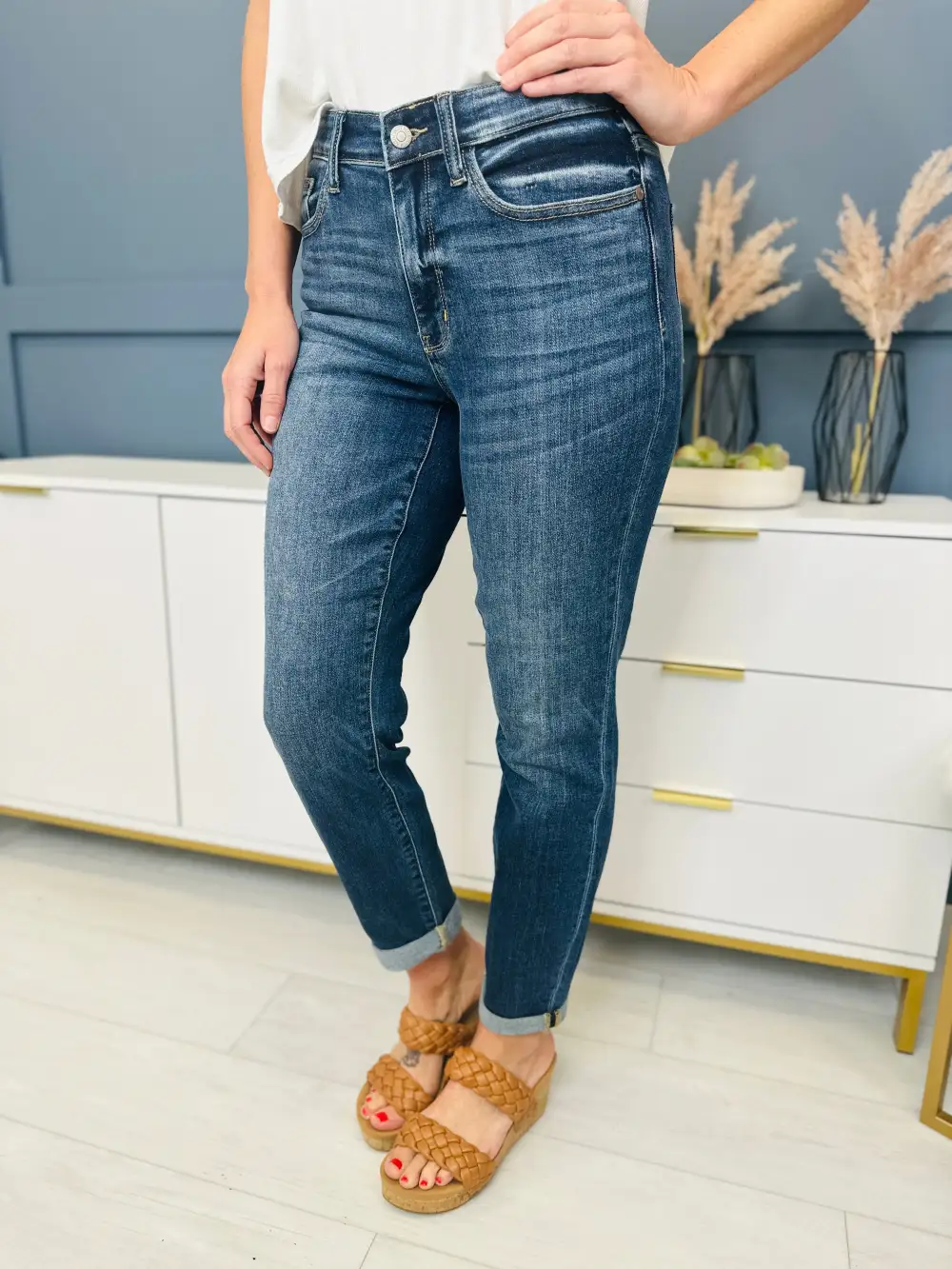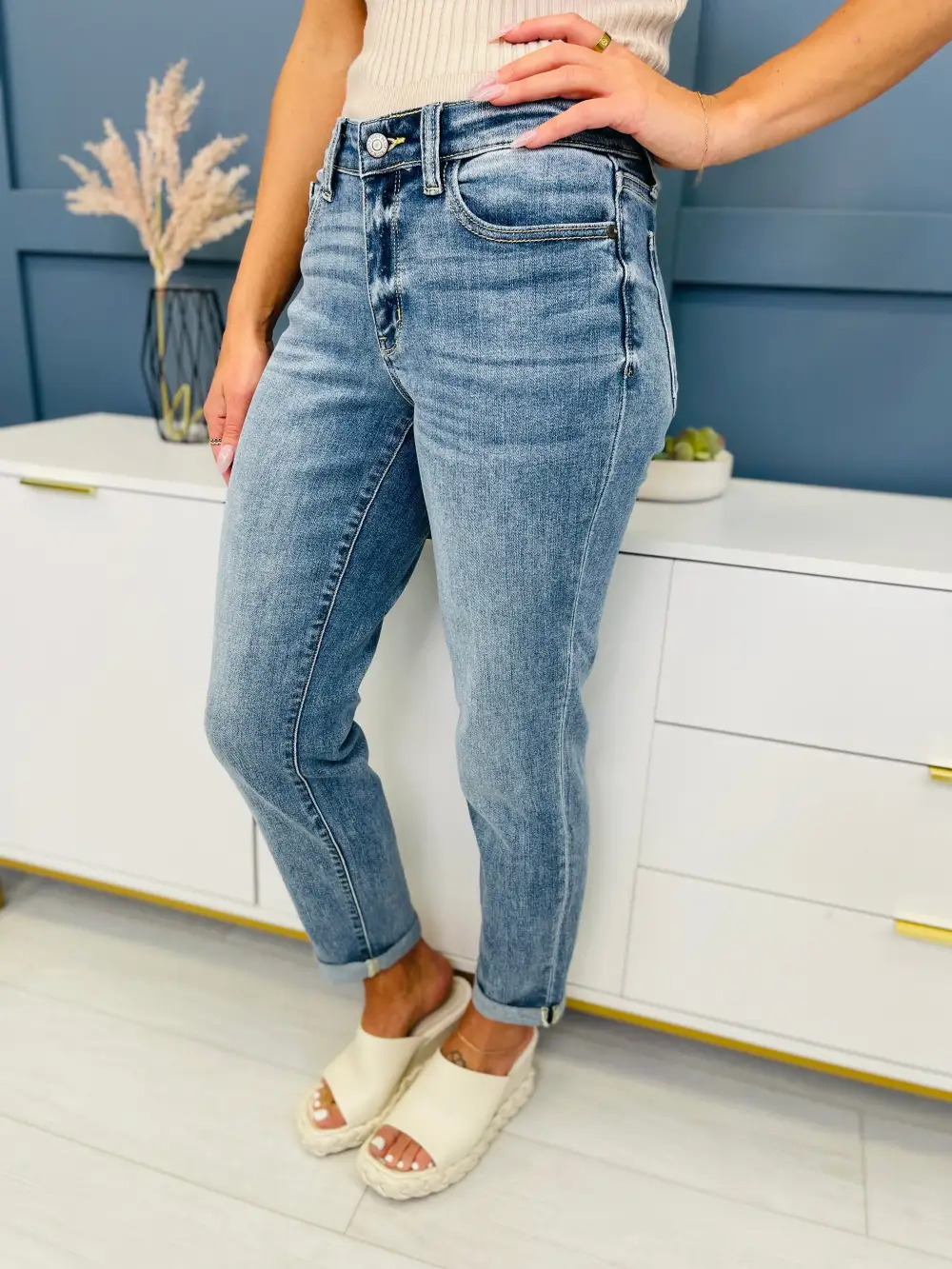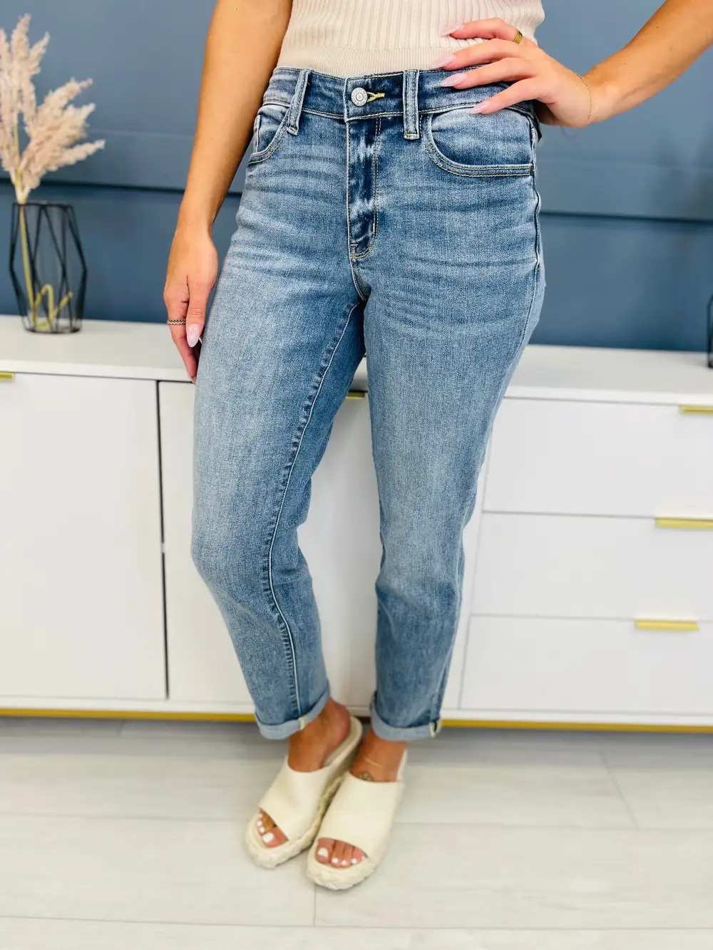 🔥Tummy Control Distressed Cuffed Boyfriend Jeans