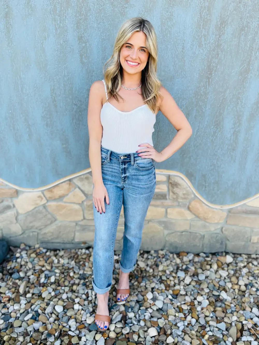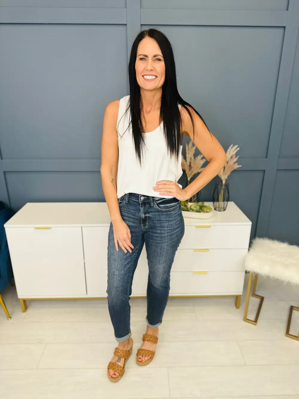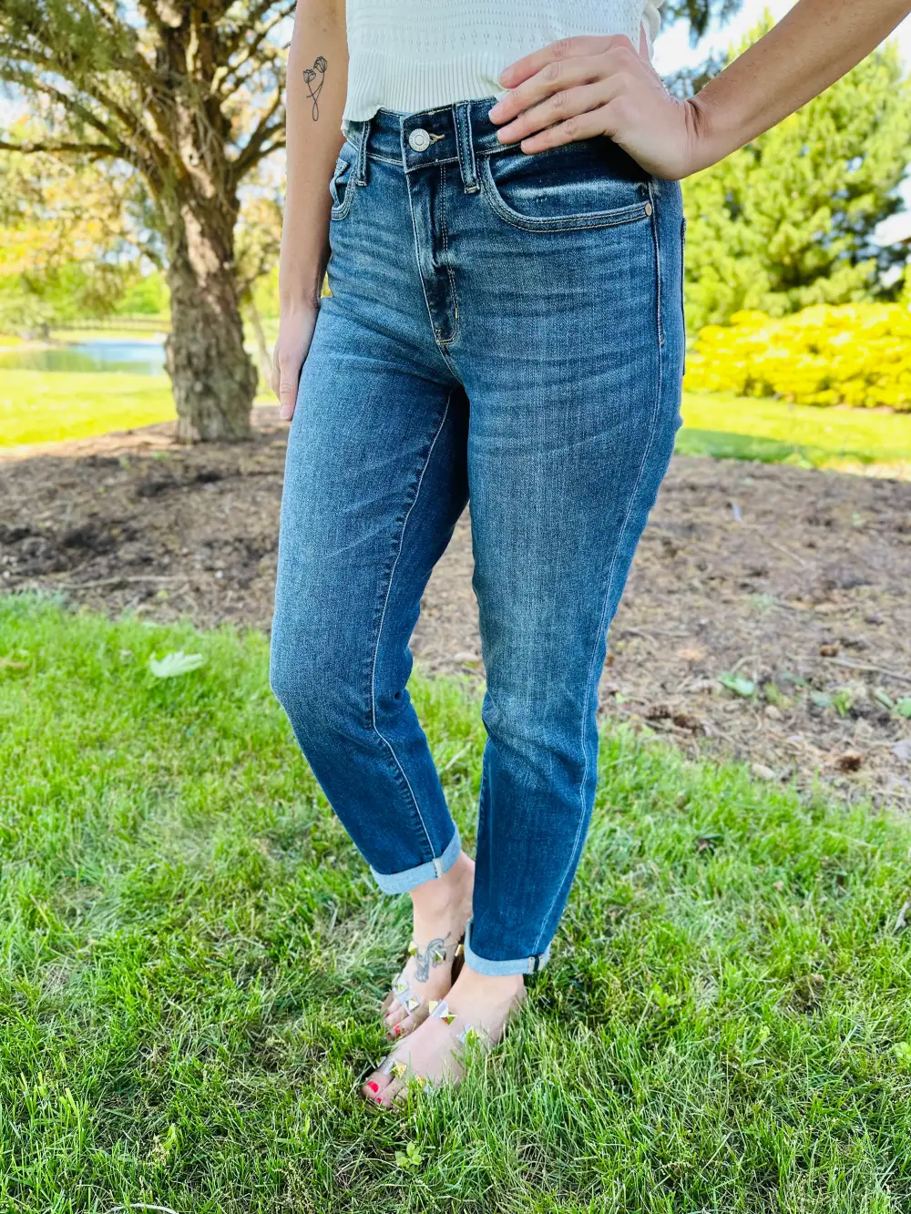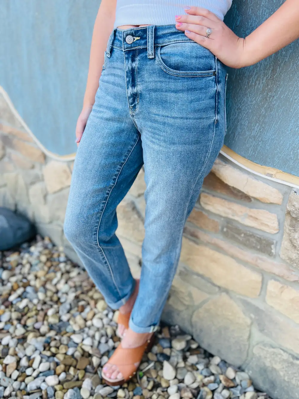 🔥Tummy Control Distressed Cuffed Boyfriend Jeans