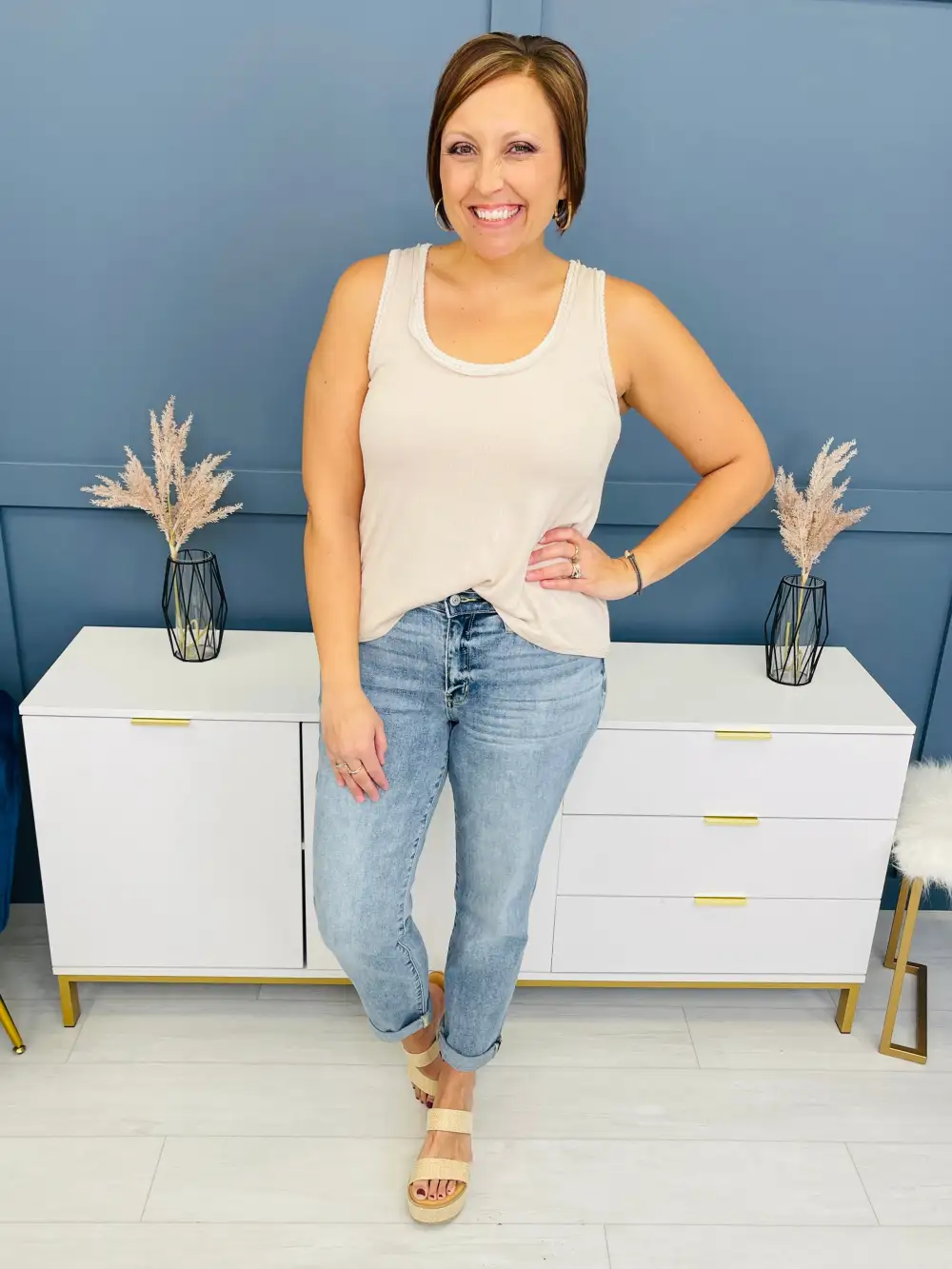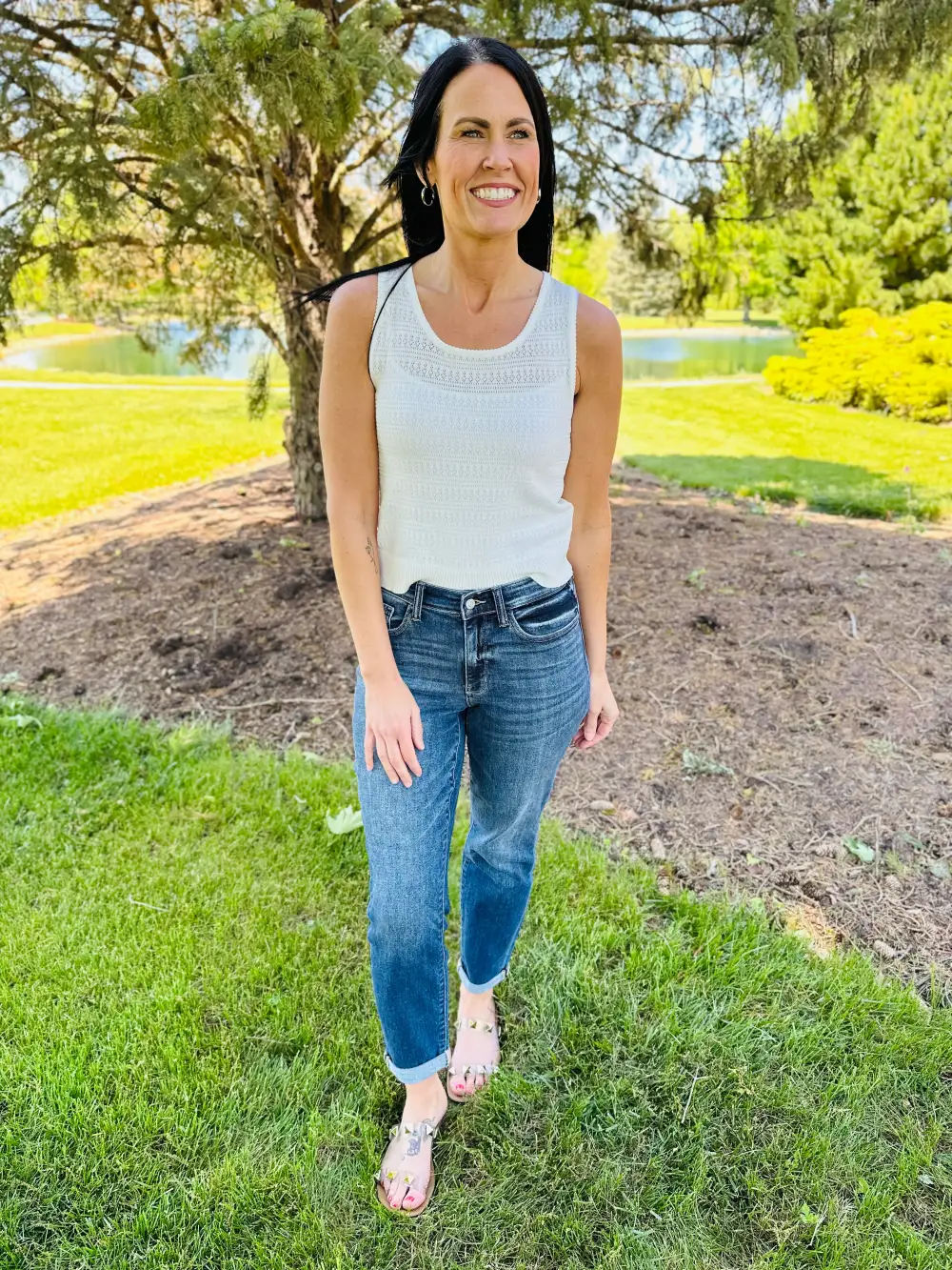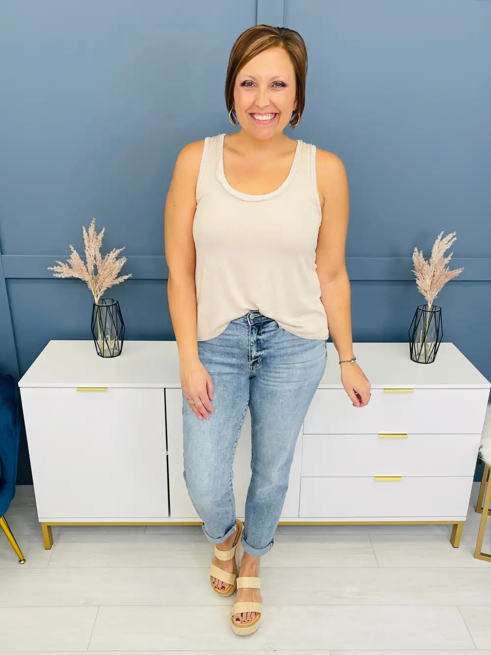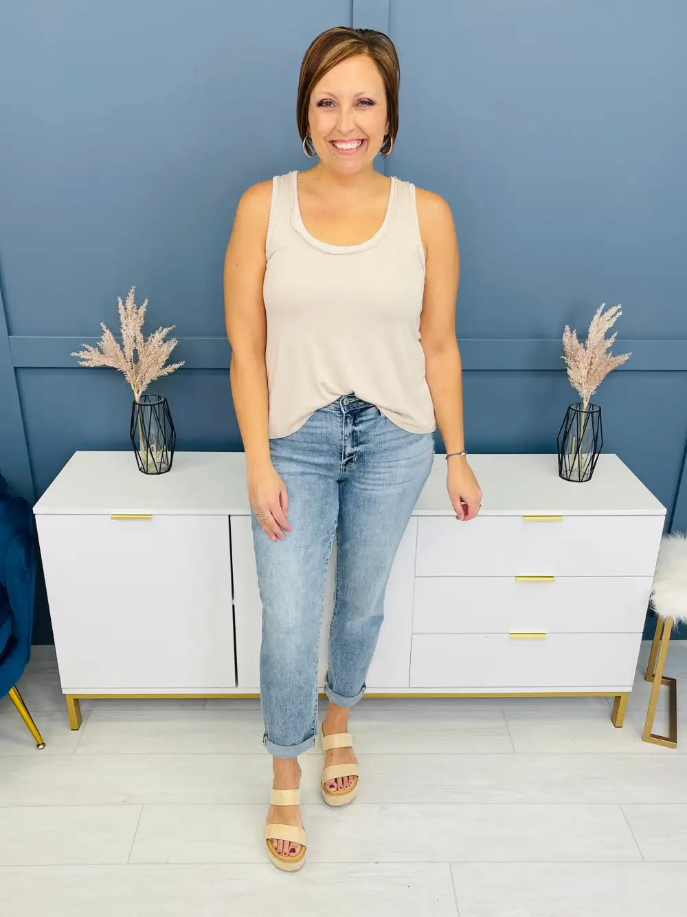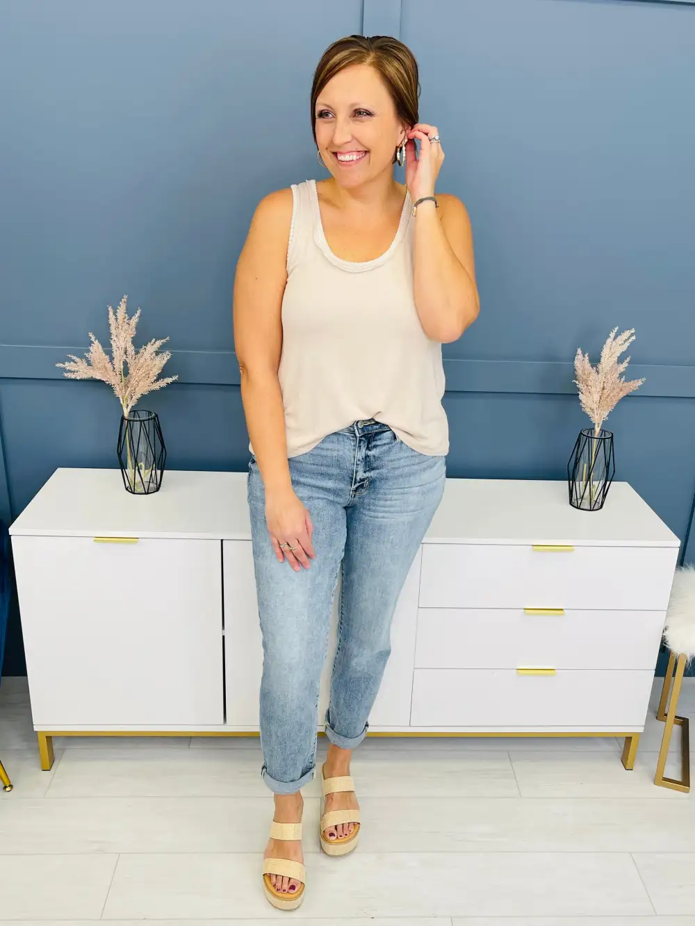 🔥Tummy Control Distressed Cuffed Boyfriend Jeans