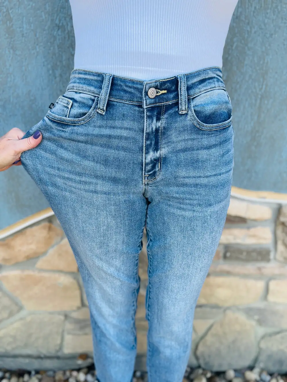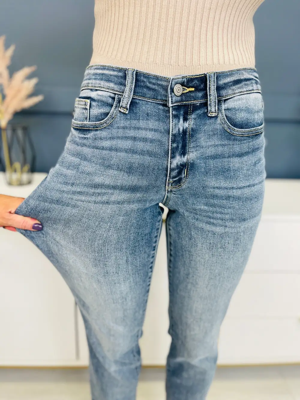 ⏰LAST DAY💥High Rise Vintage Wash Tummy Control Top Straight Leg Jeans