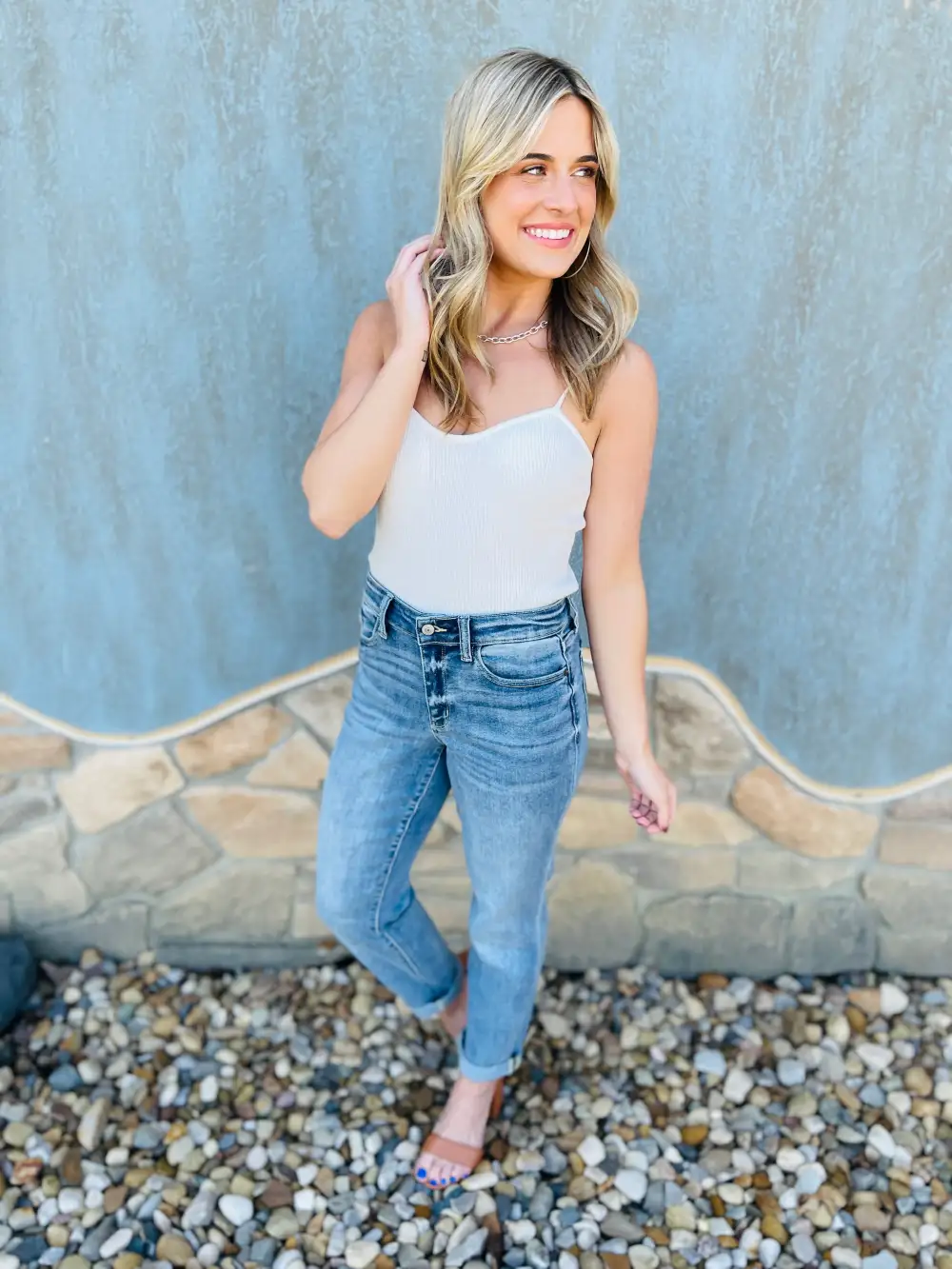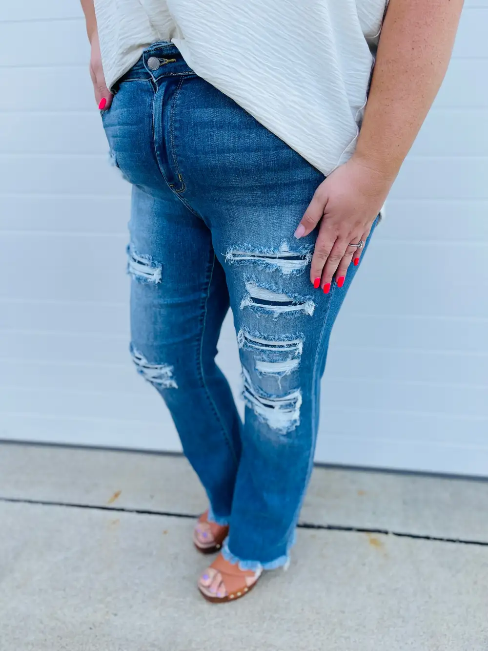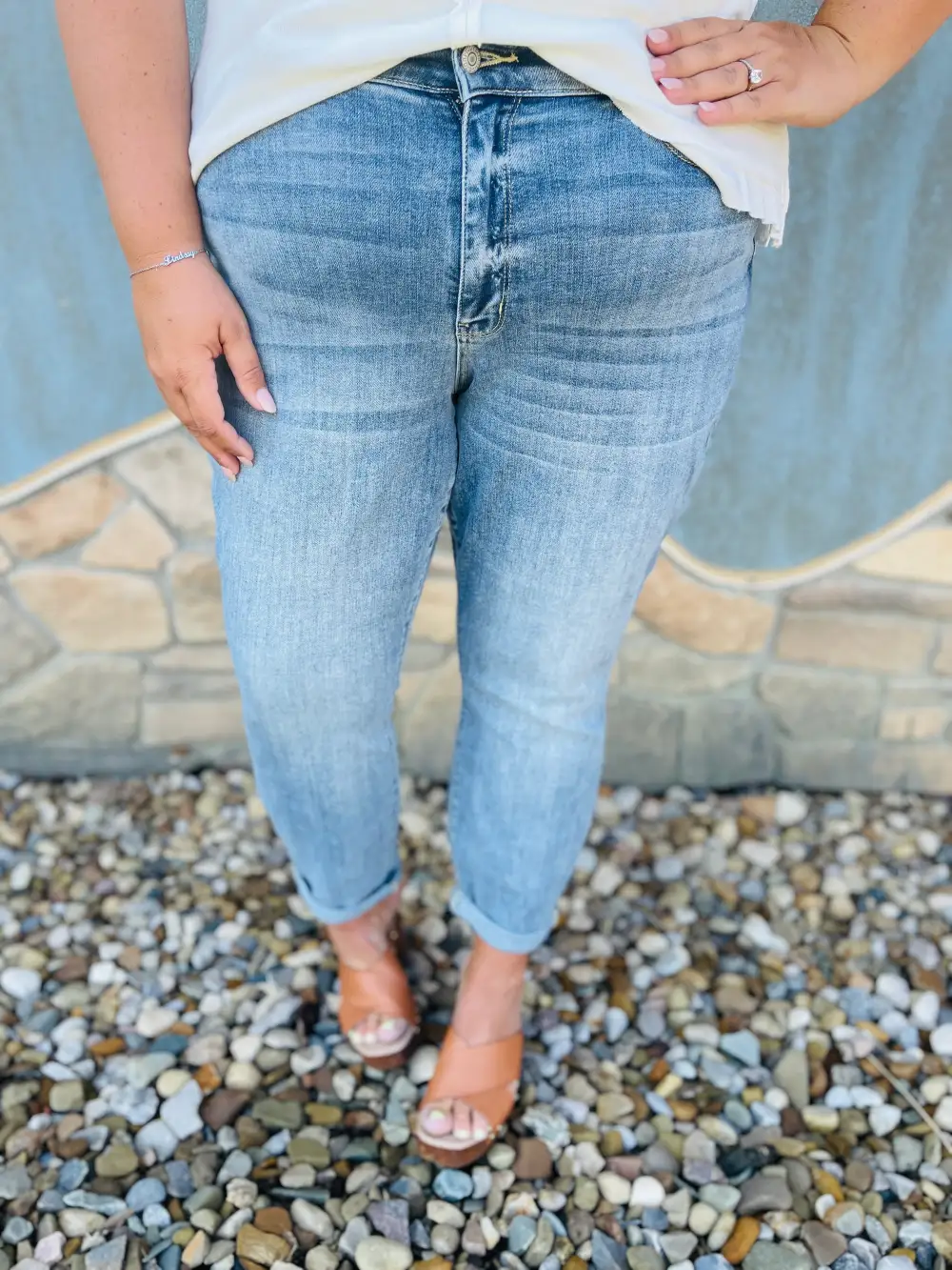 Restock! Blue REG/CURVY Go Against The Grain Capri Jeans