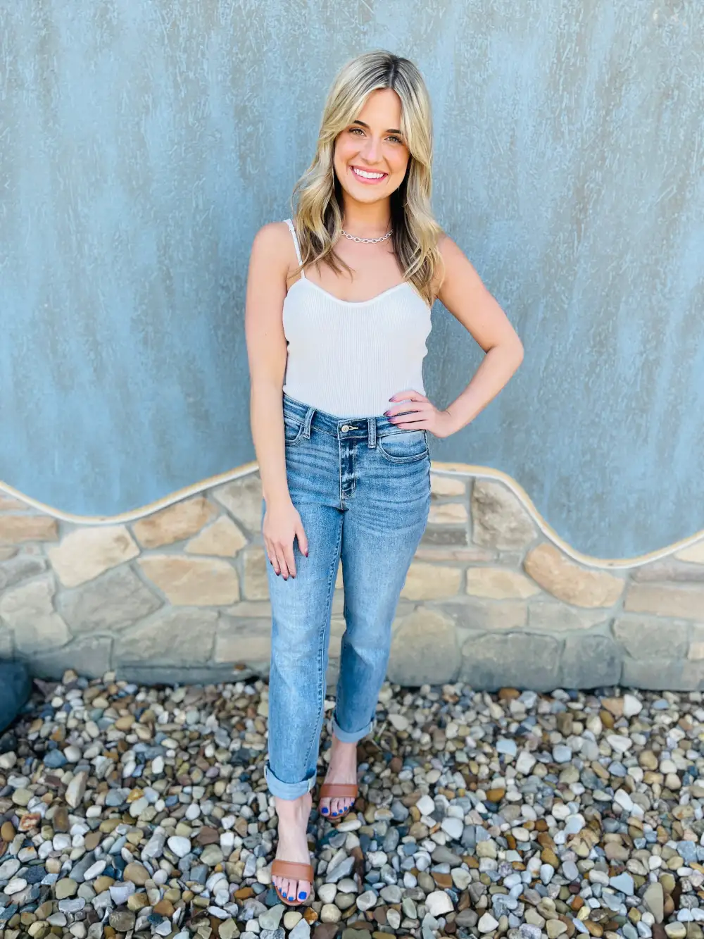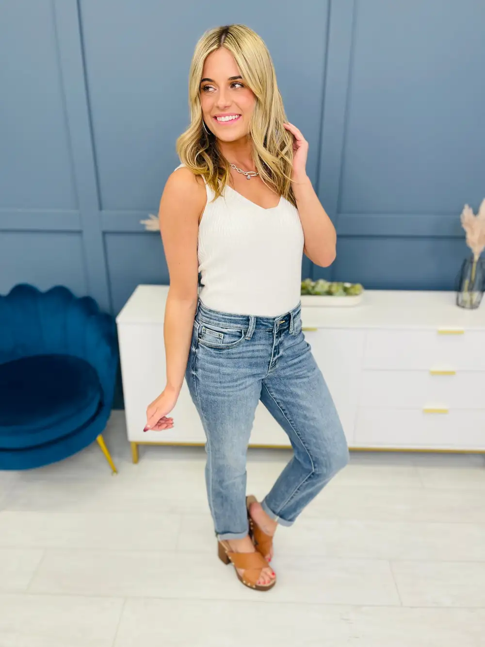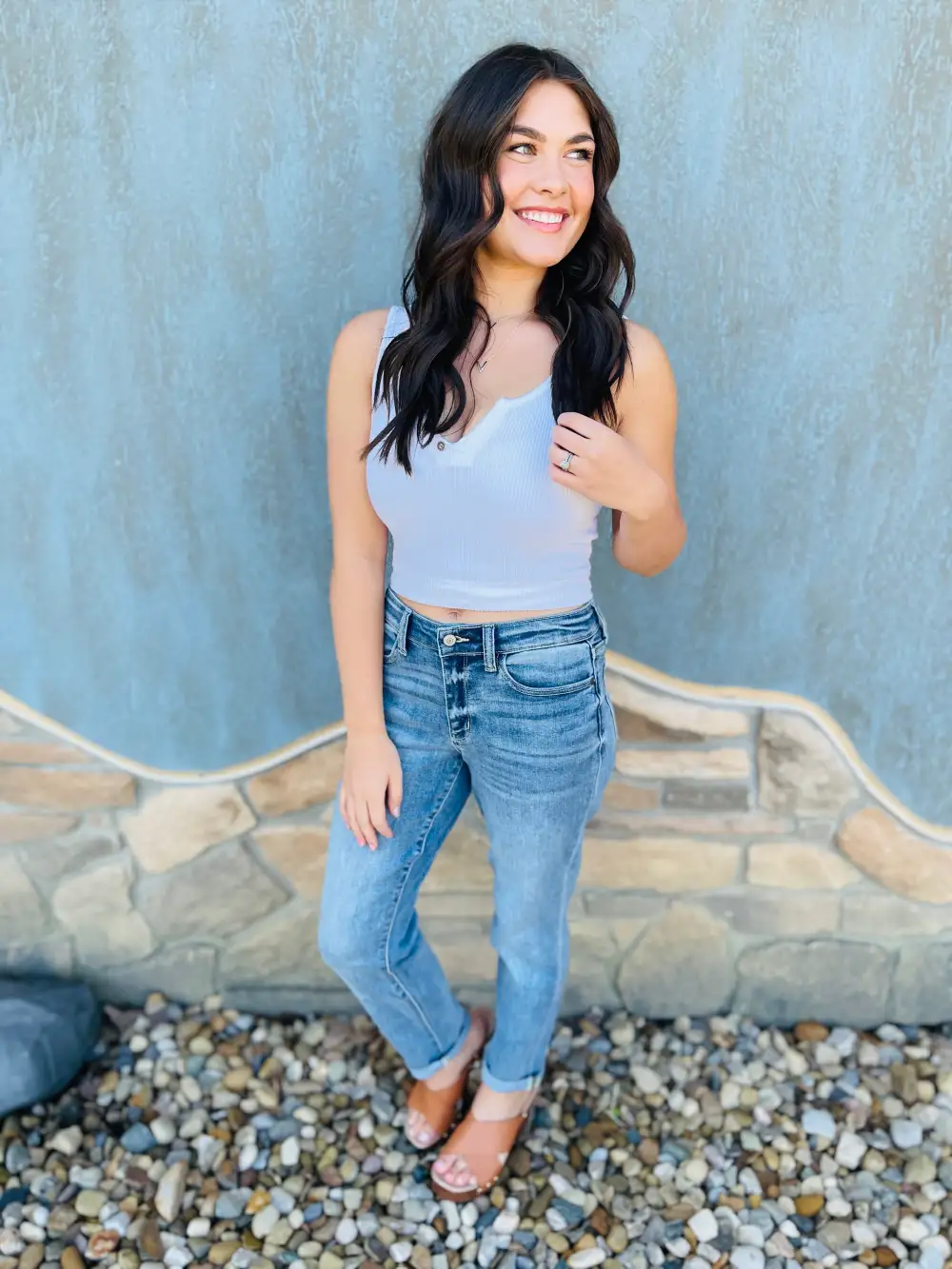 Restock! Blue REG/CURVY Go Against The Grain Capri Jeans
