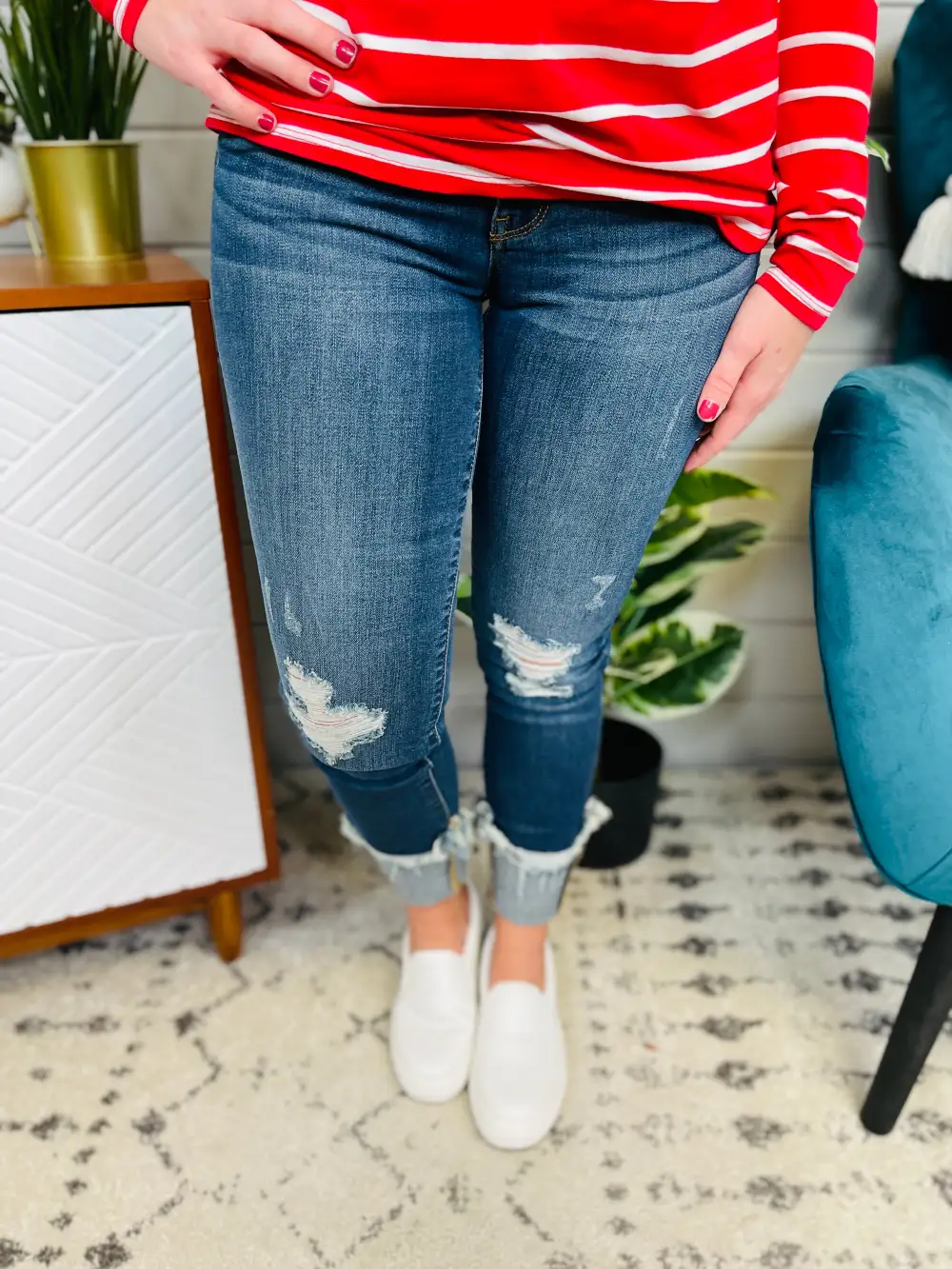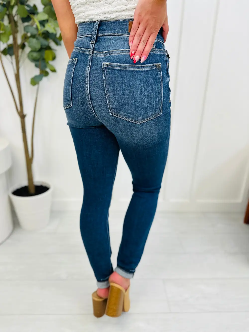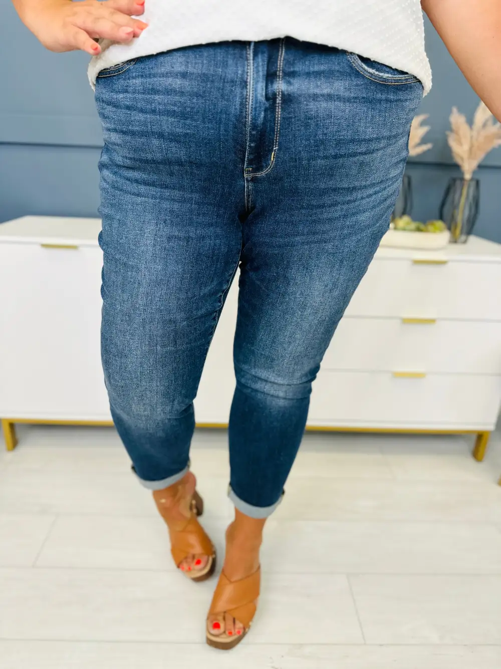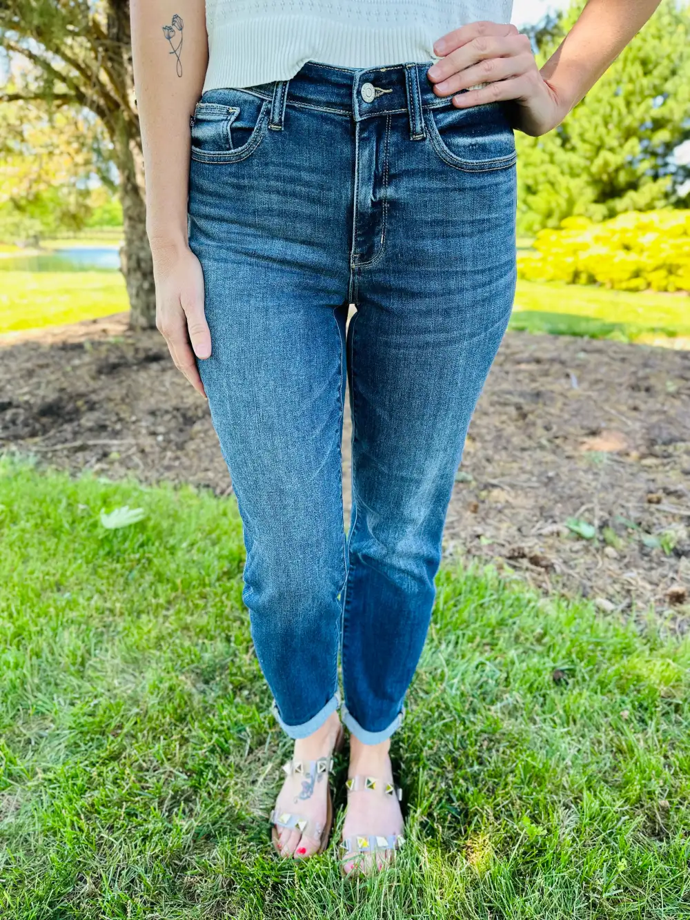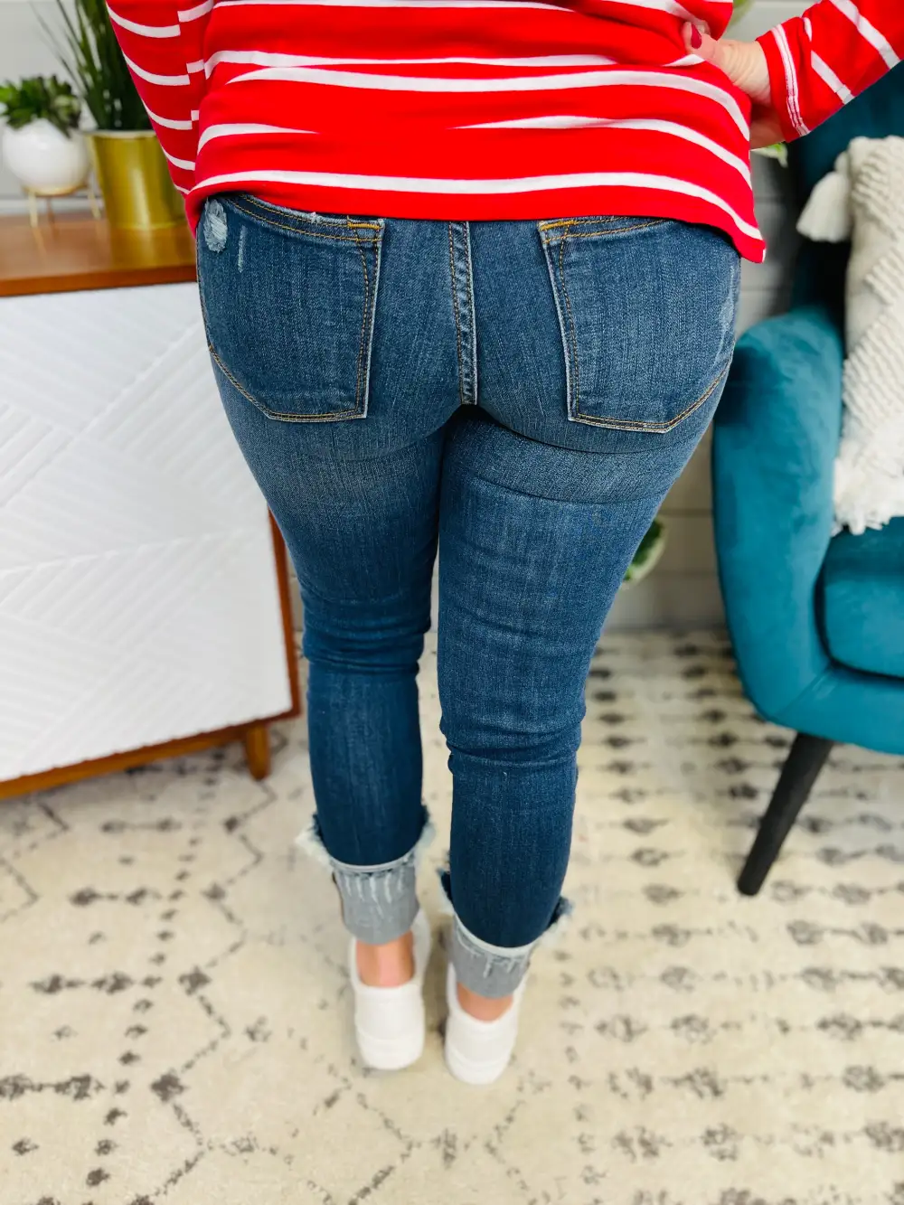 Dark Wash Mega Stretchy Cuffed Skinny Jeans