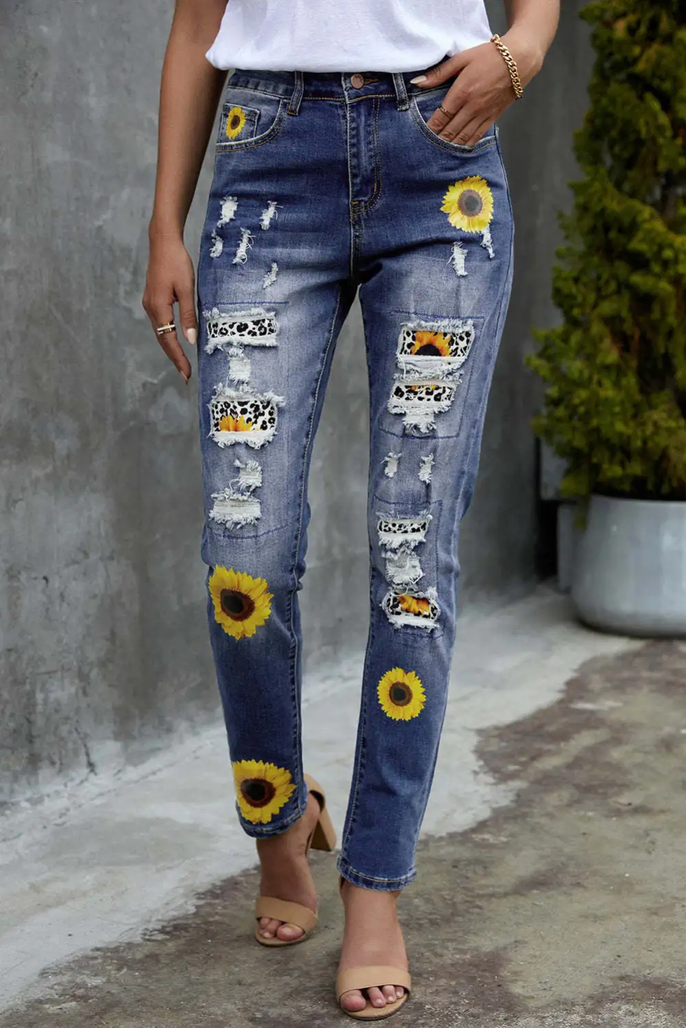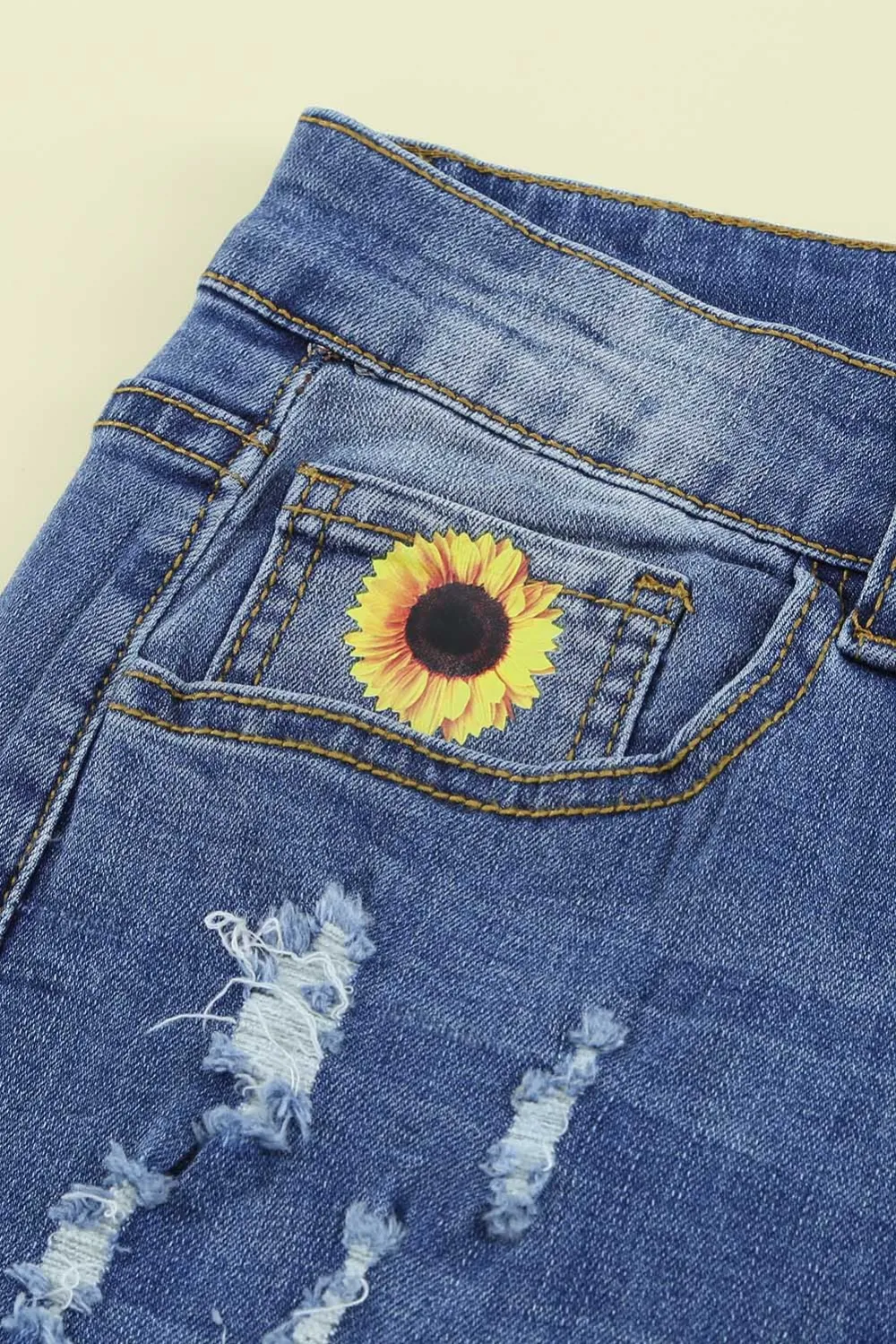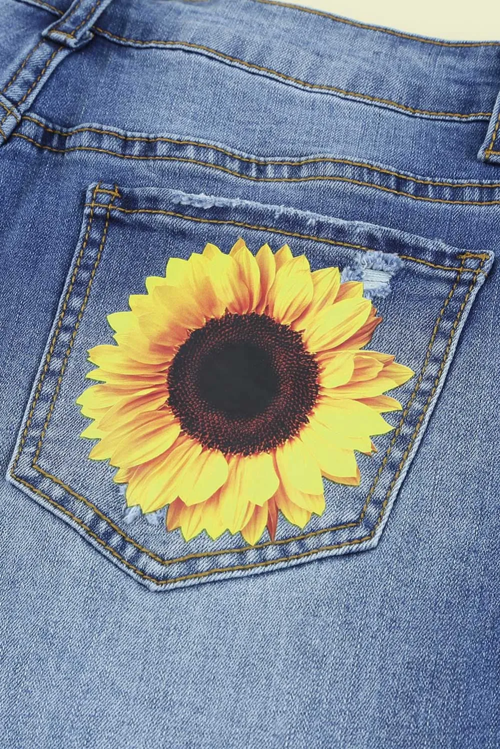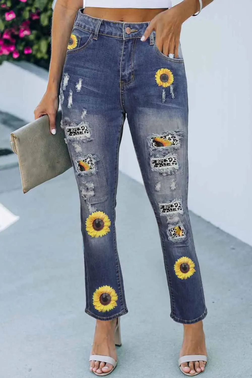 Sunflower Floral Straight Fit Ripped Jeans