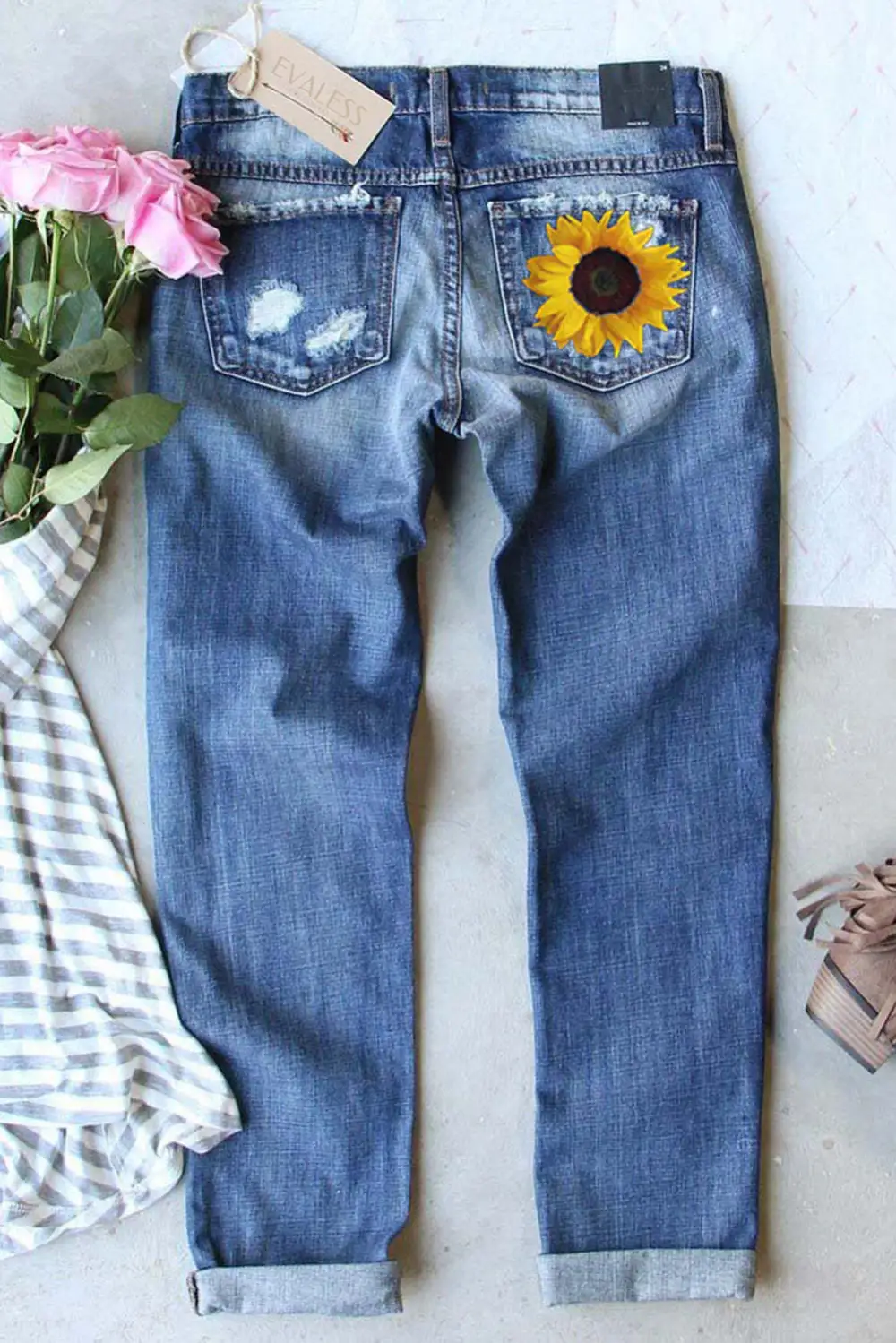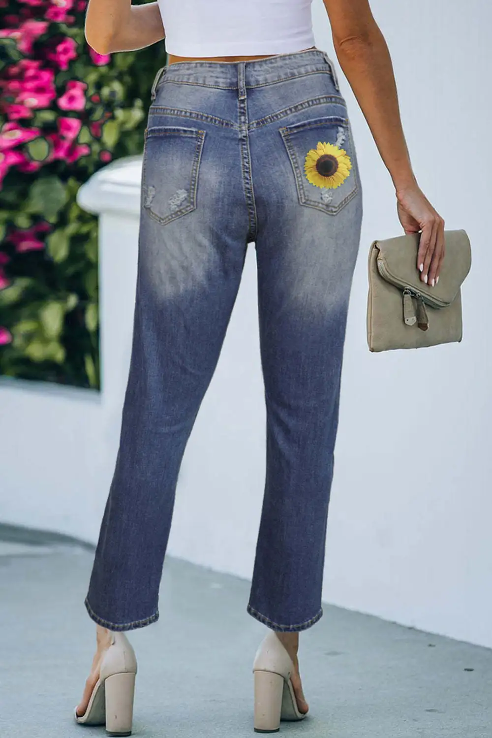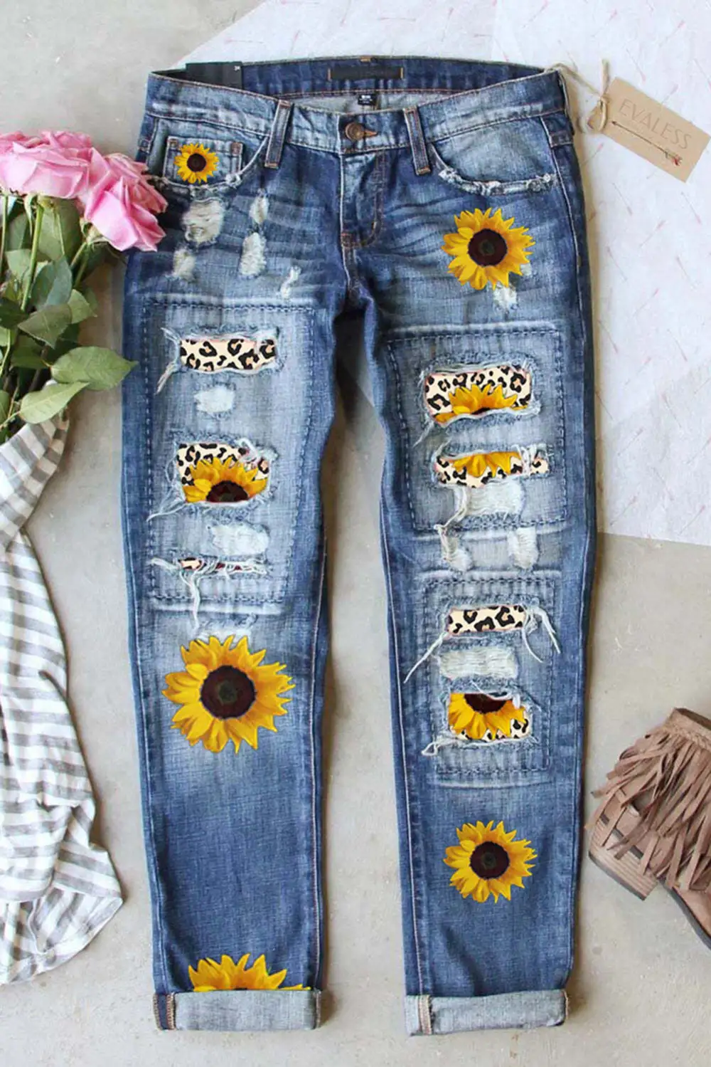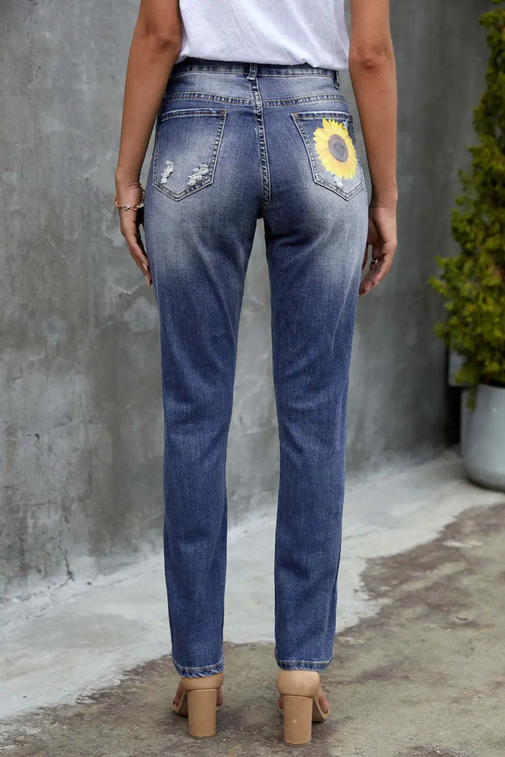 Sunflower Floral Straight Fit Ripped Jeans