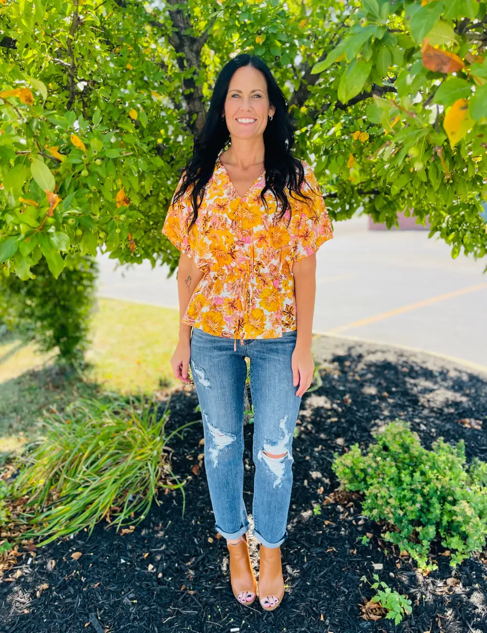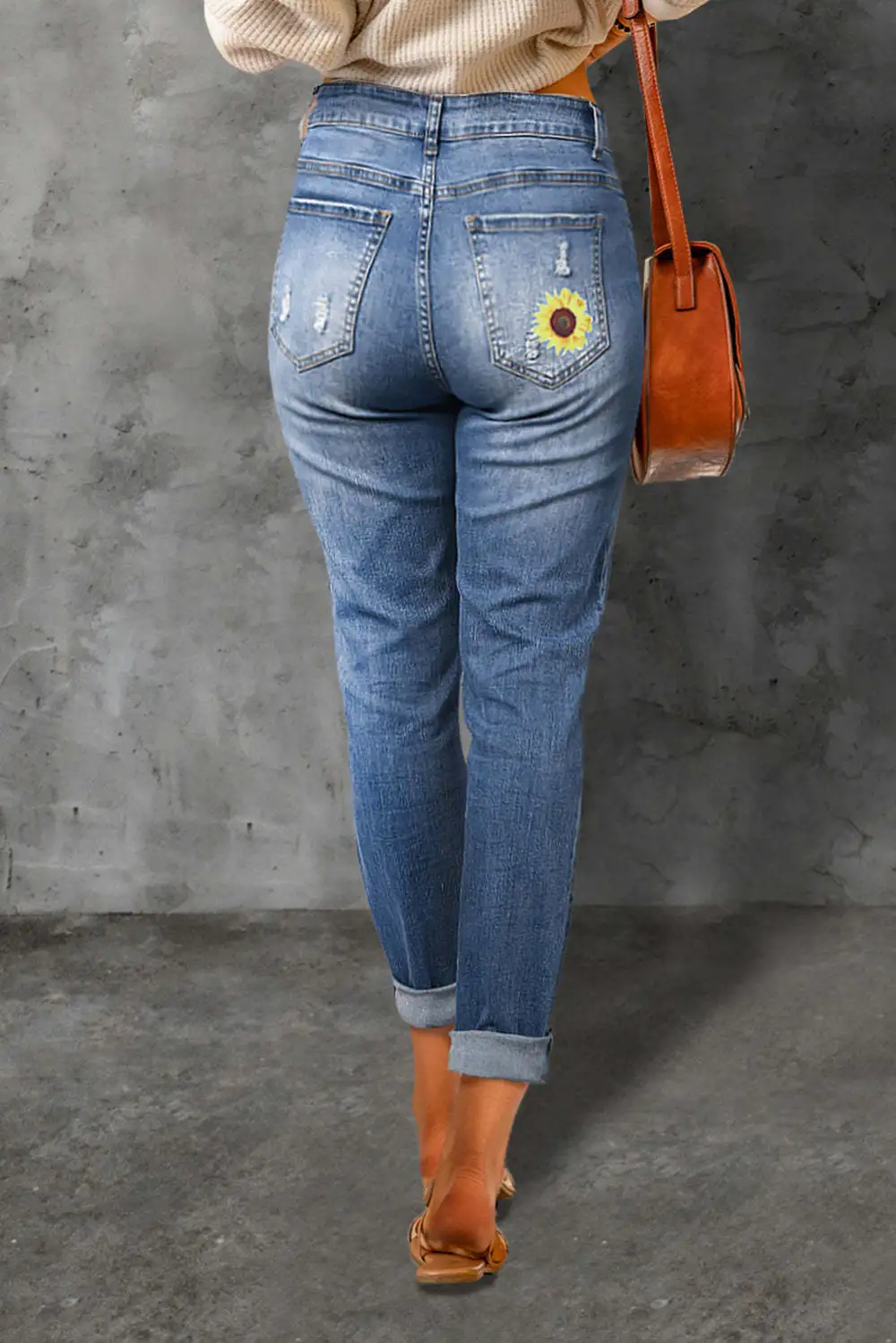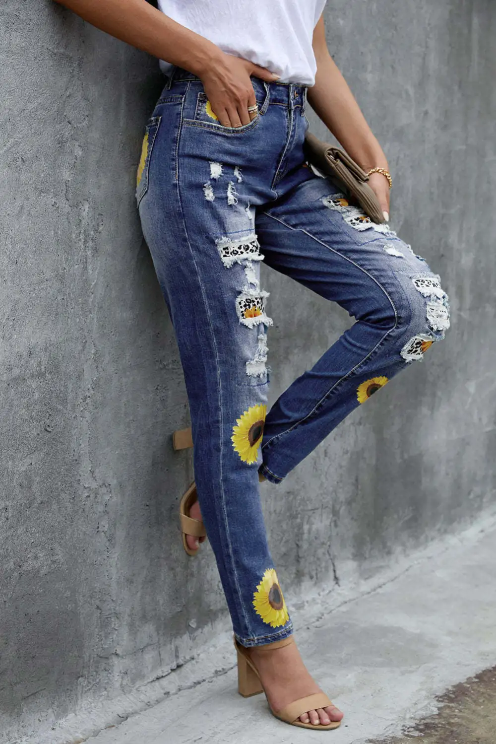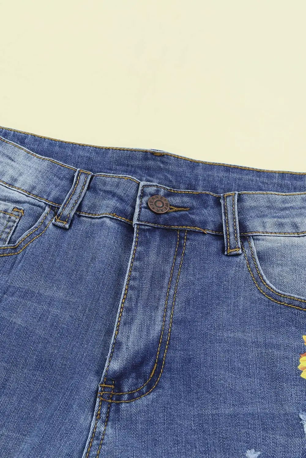 Sunflower Floral Straight Fit Ripped Jeans