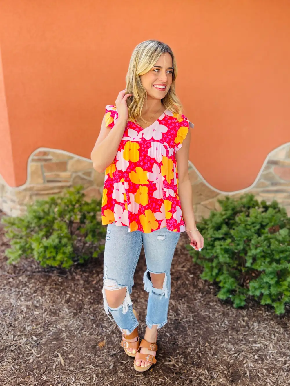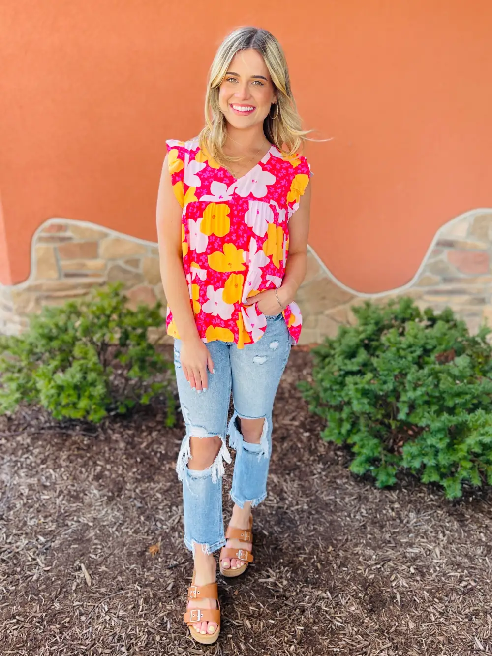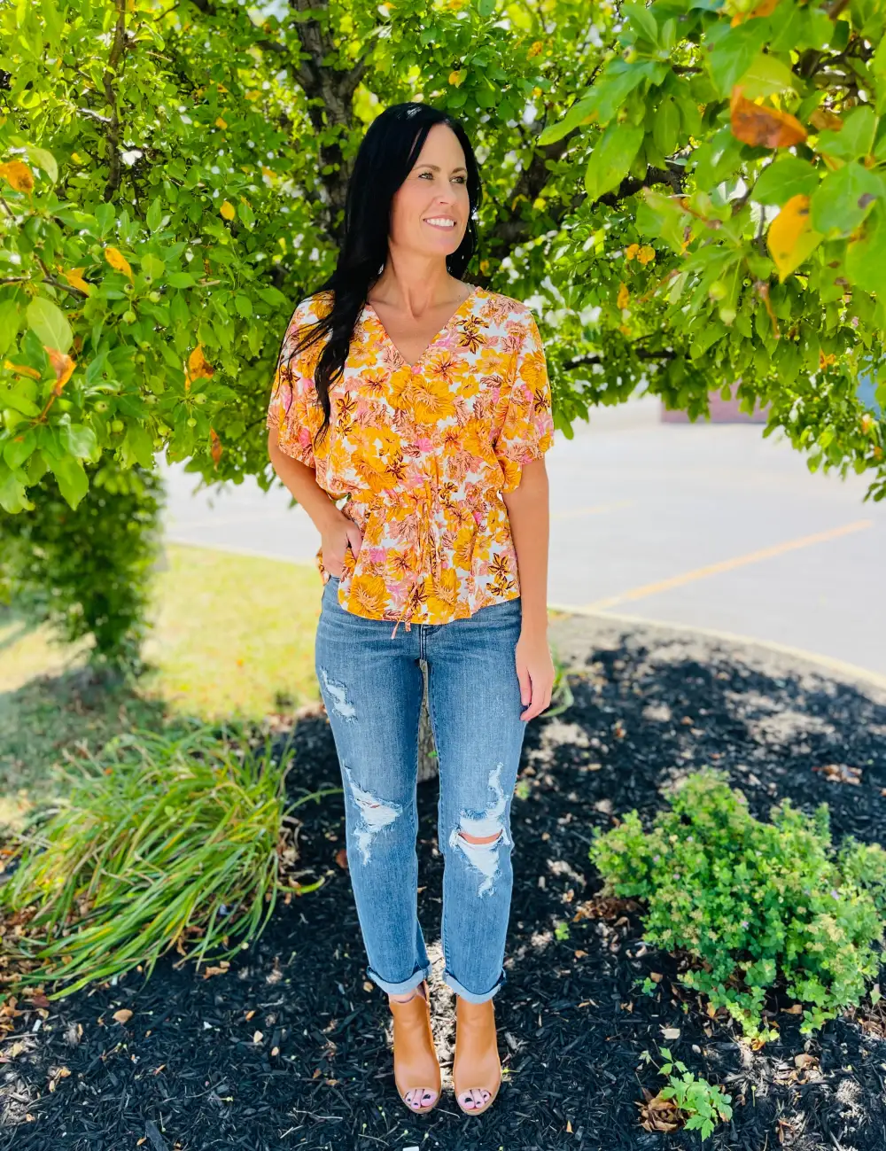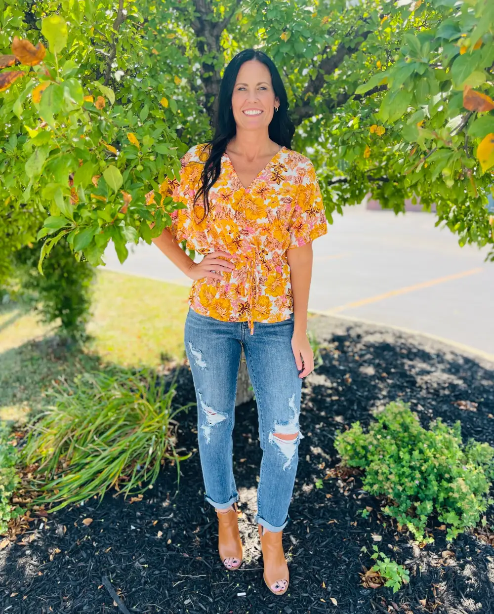 Sunflower Floral Straight Fit Ripped Jeans