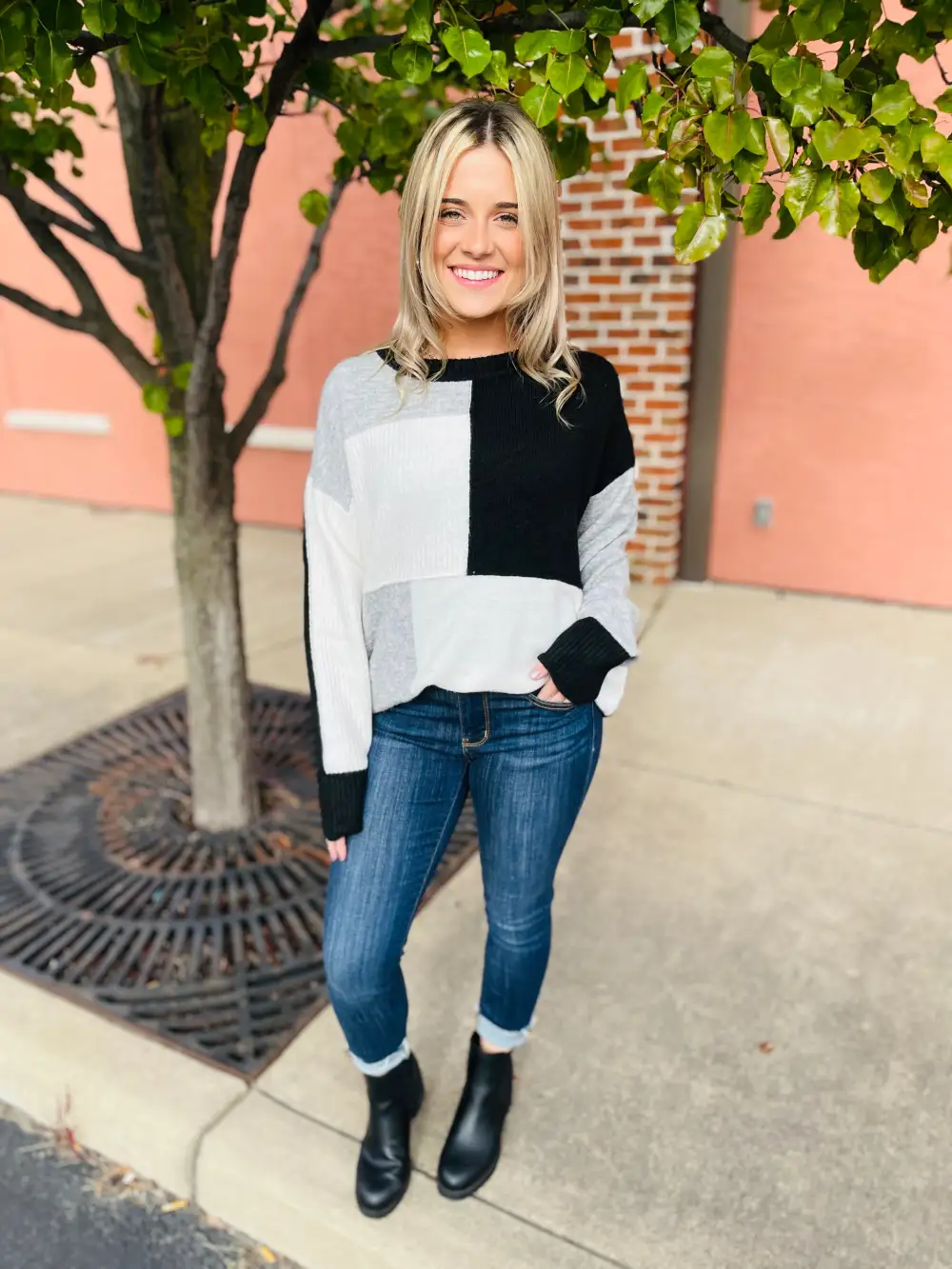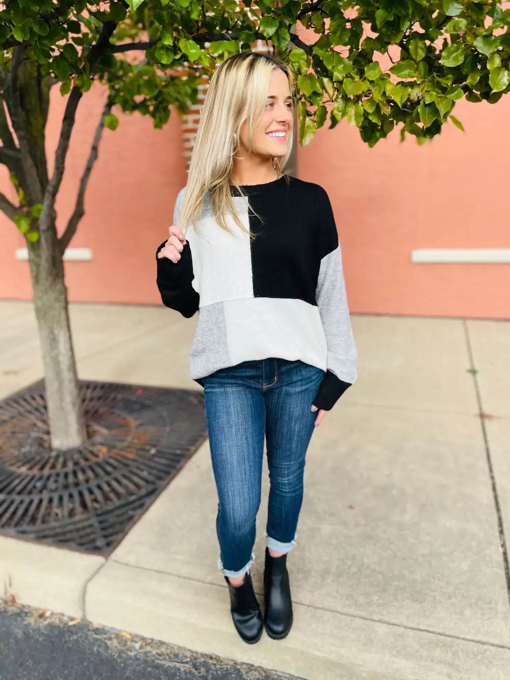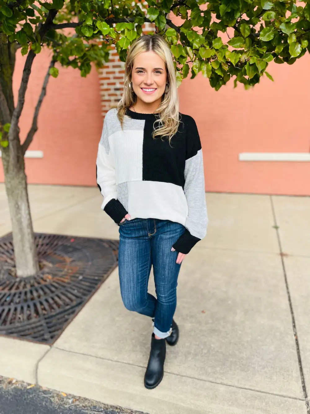 Color Block Drop Shoulder Zip Half Placket Sweater