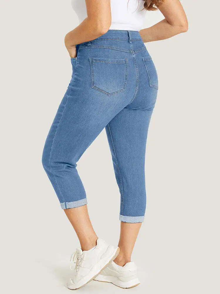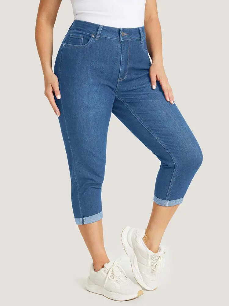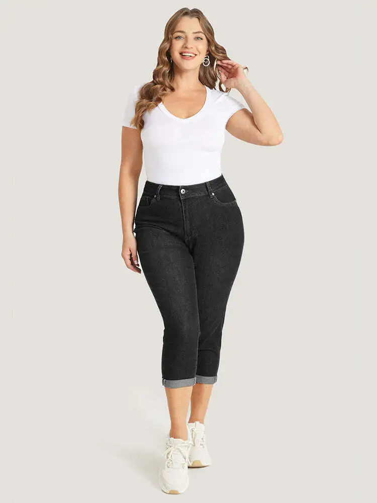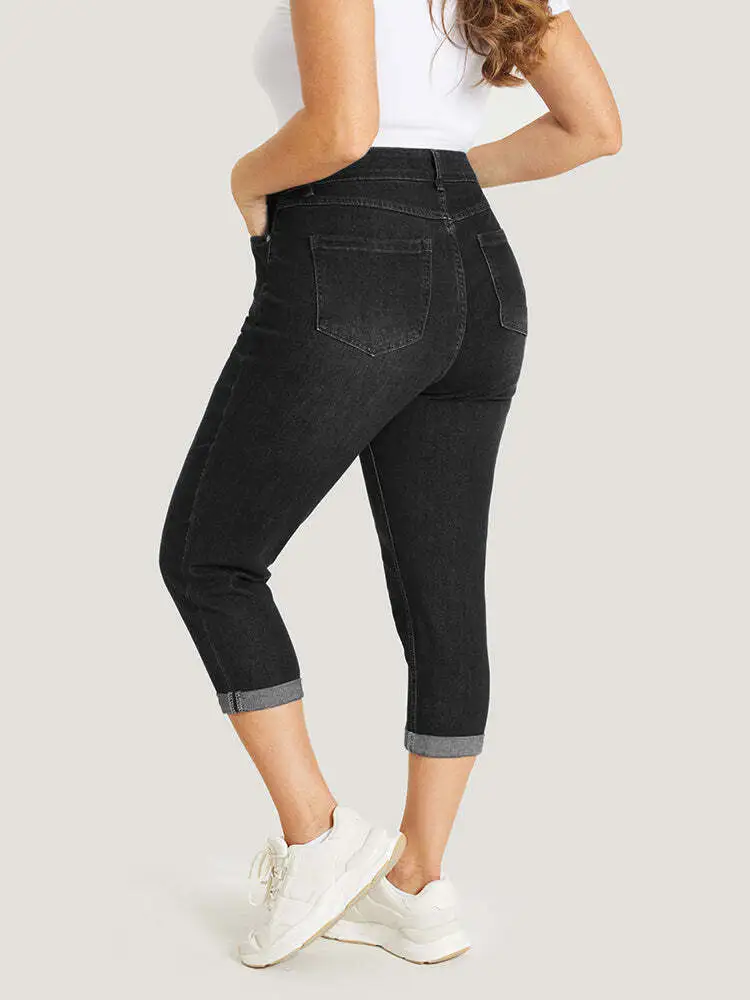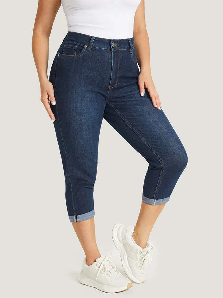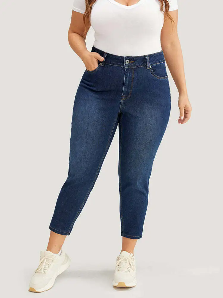 Very Stretchy High Rise Dark Wash Cropped Jeans