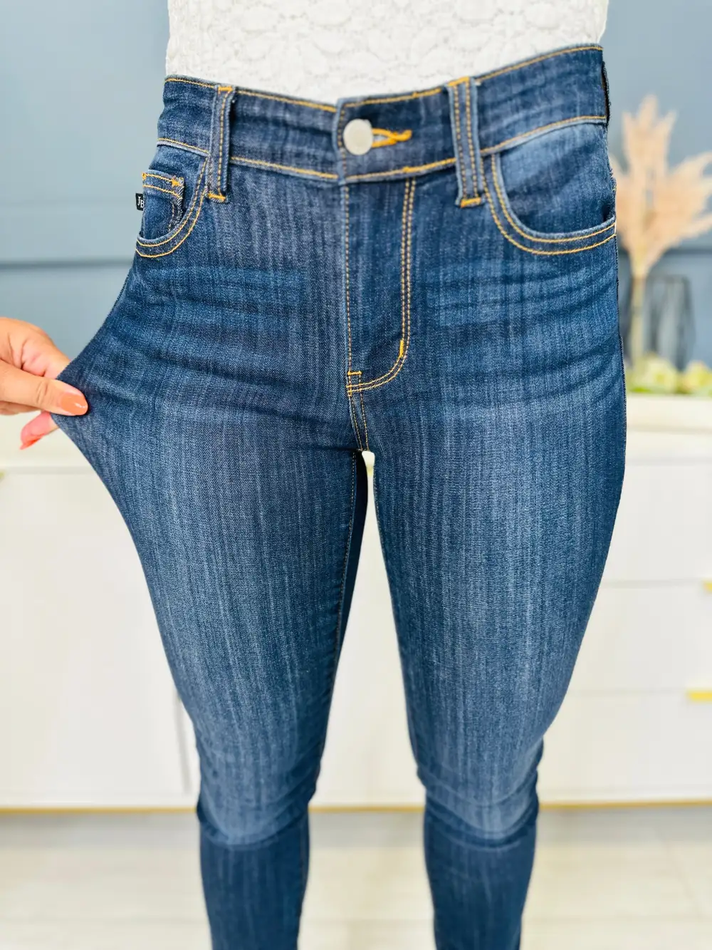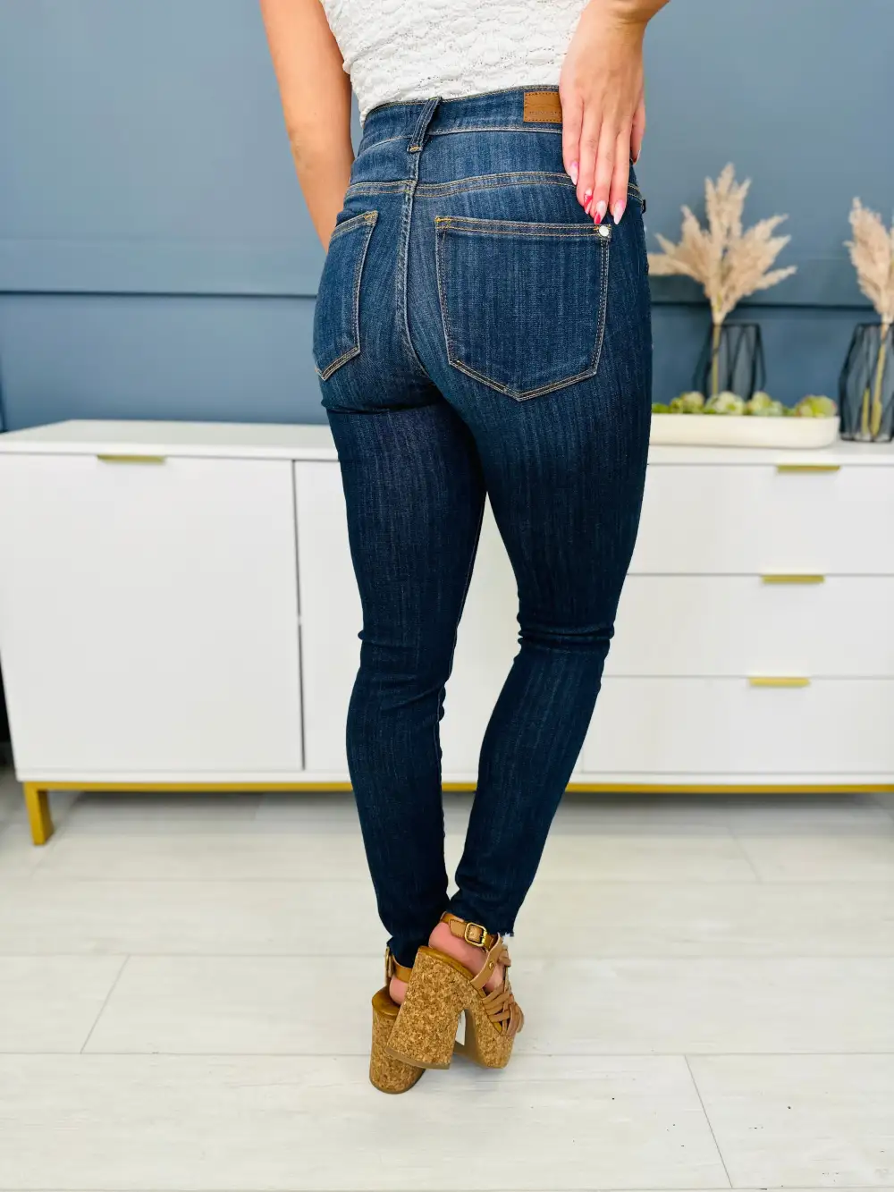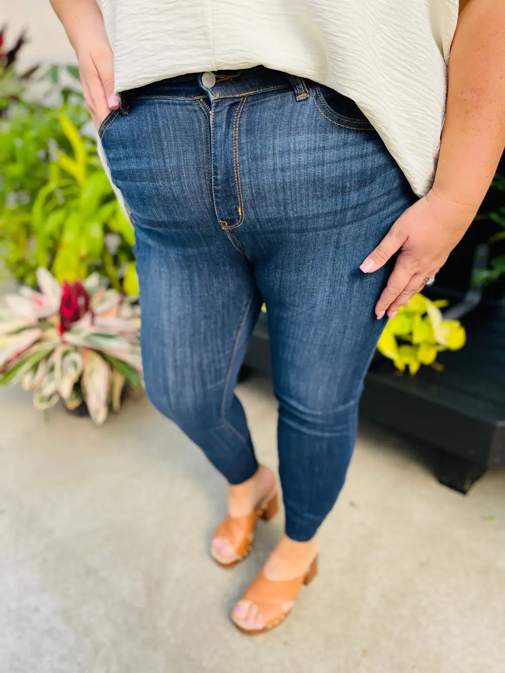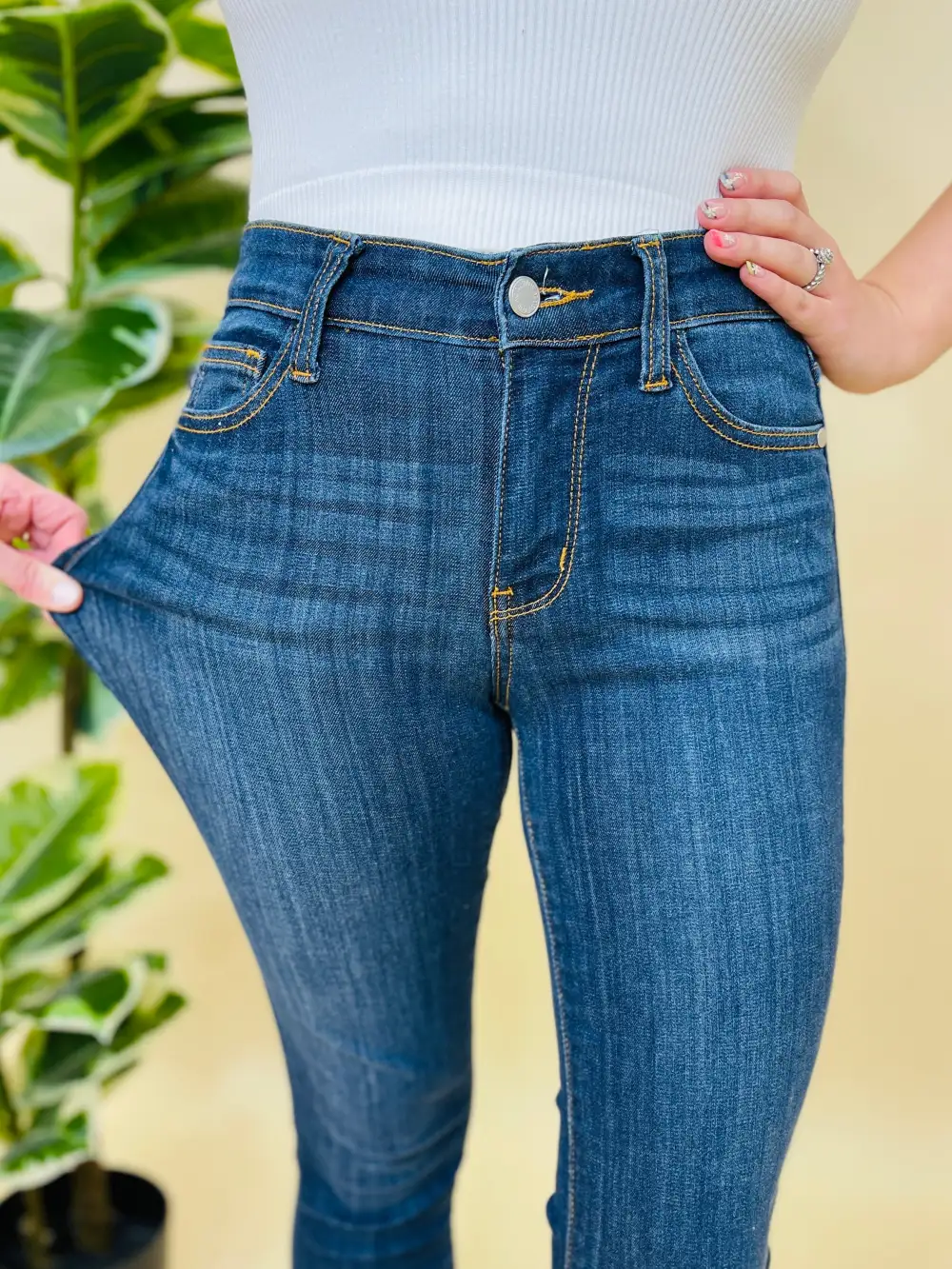 Very Stretchy High Rise Dark Wash Cropped Jeans