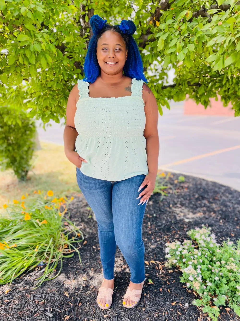 Blue Distressed Flare Jeans