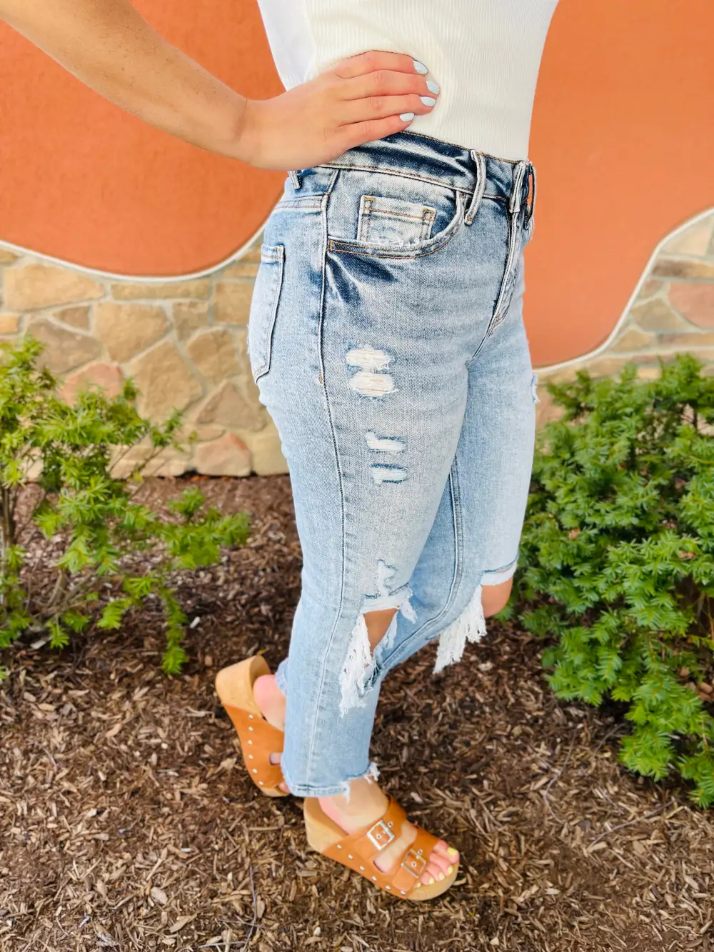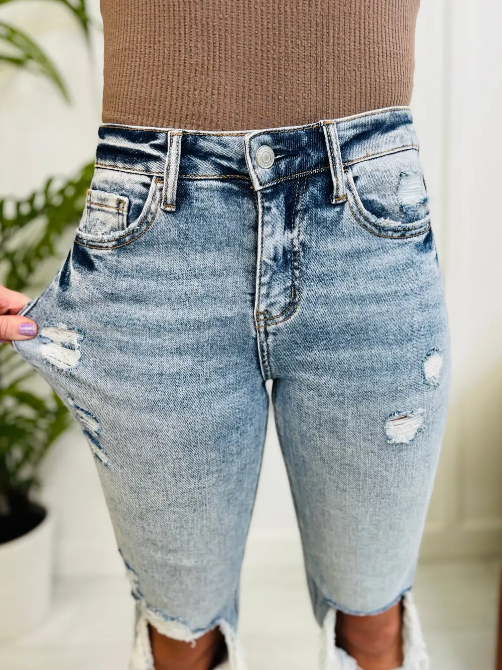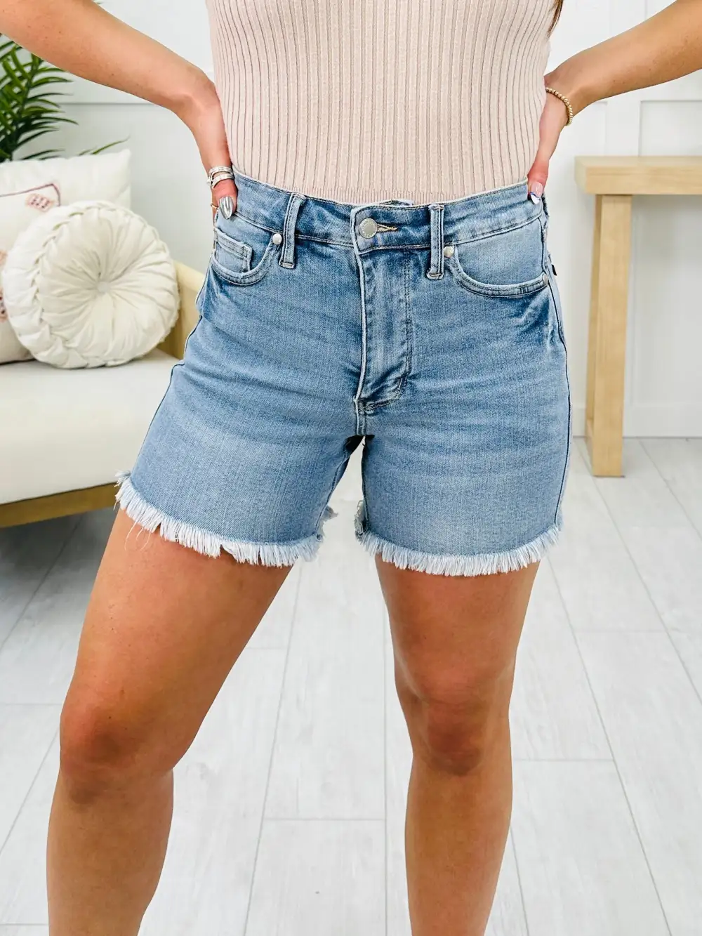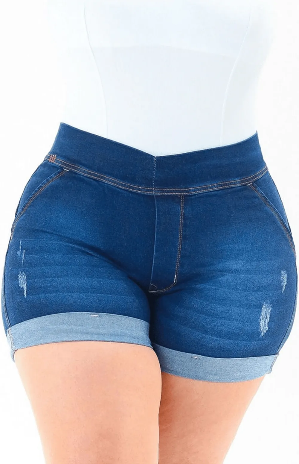 High-Rise Mild Destroy Cut Offs Mid Length Shorts