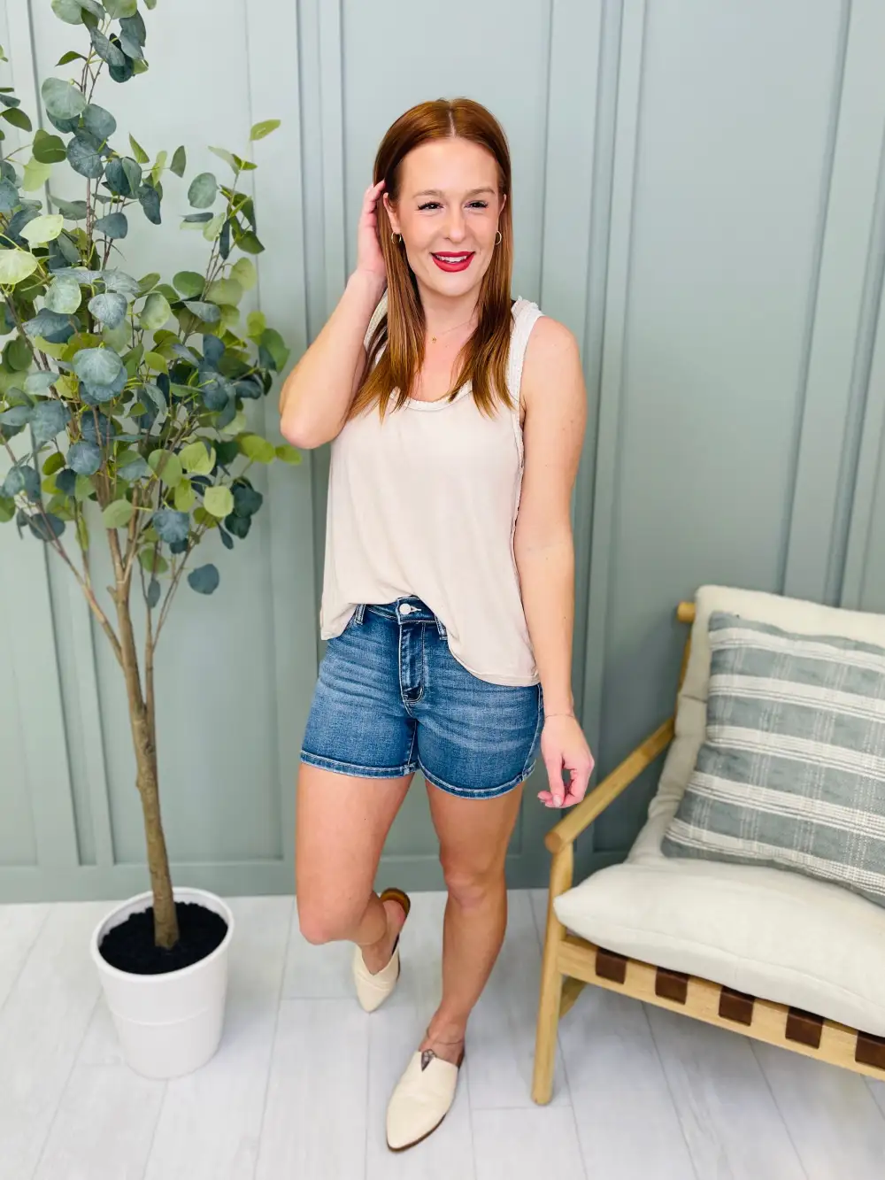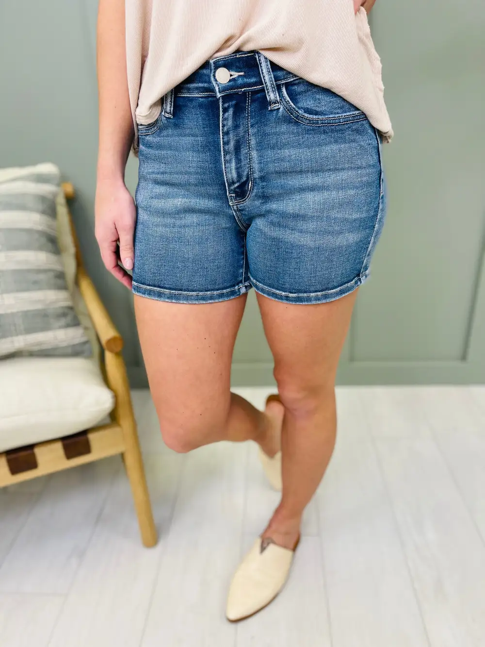 High-Rise Tummy Control Denim Shorts
