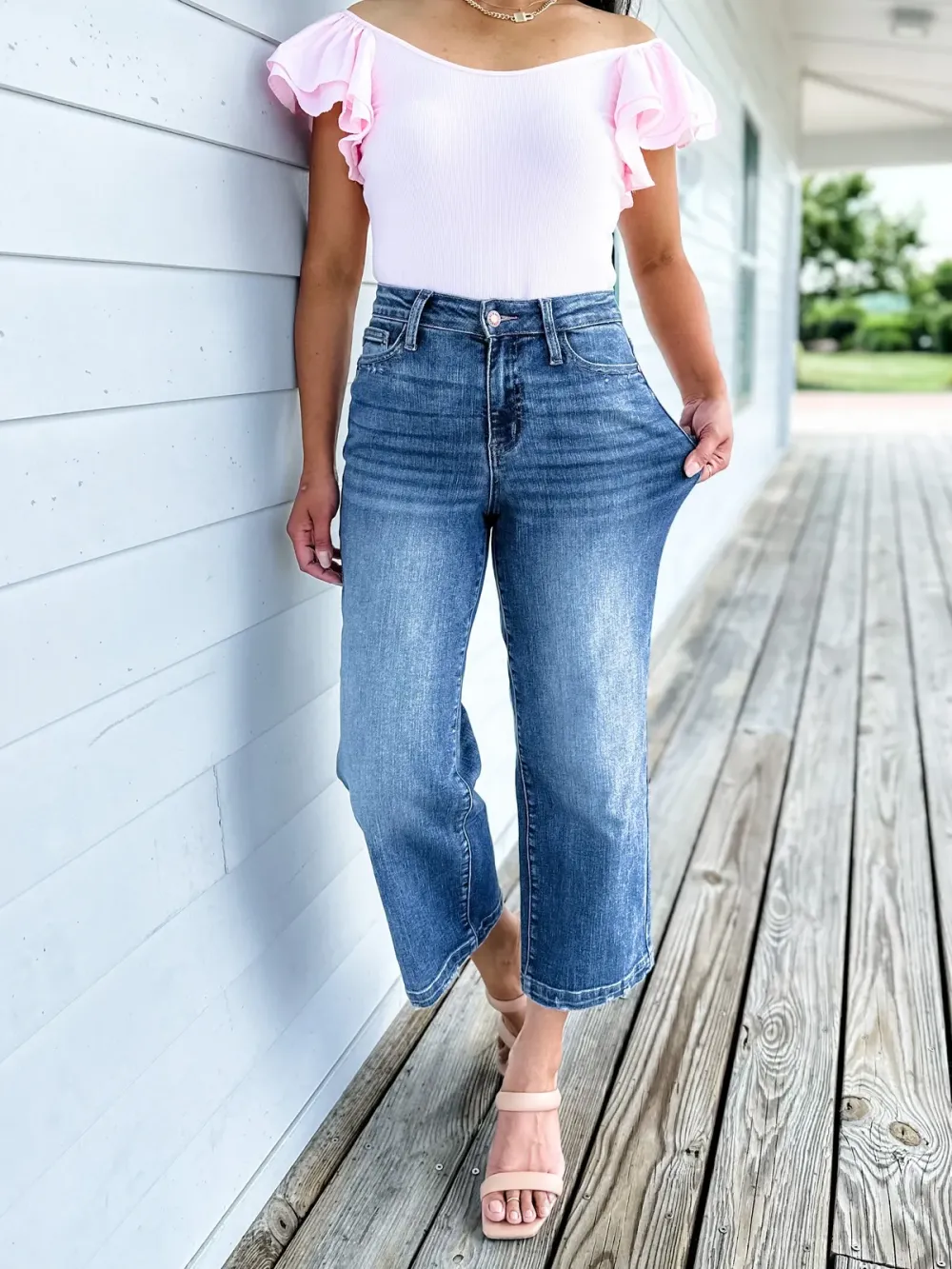 🔥Hot Sales🔥MARKDOWNS!! Look at Me Now High Rise Vintage Wash Crop Wide Leg Jeans