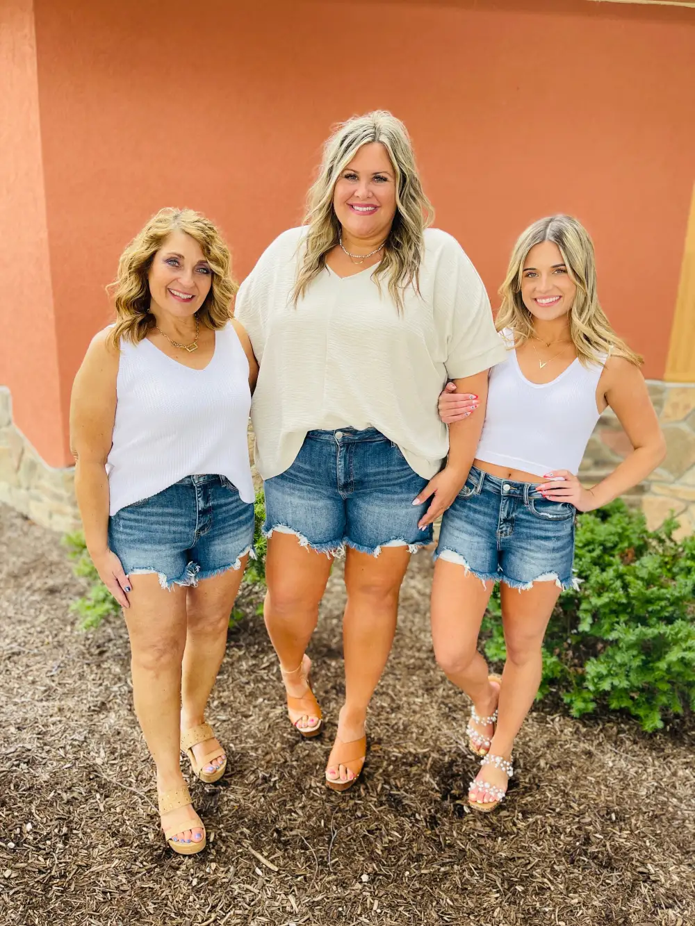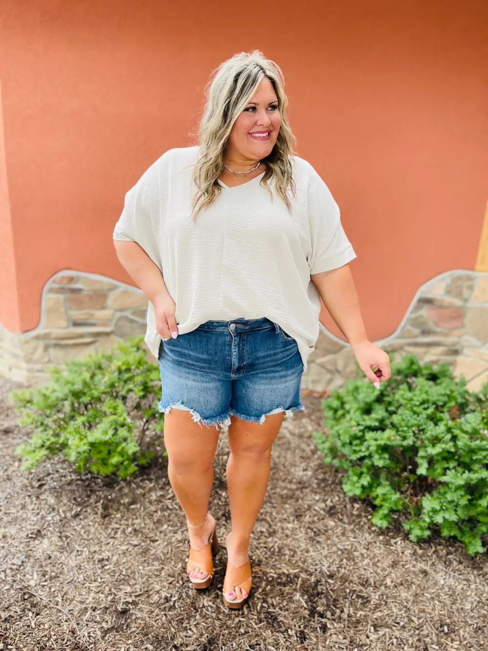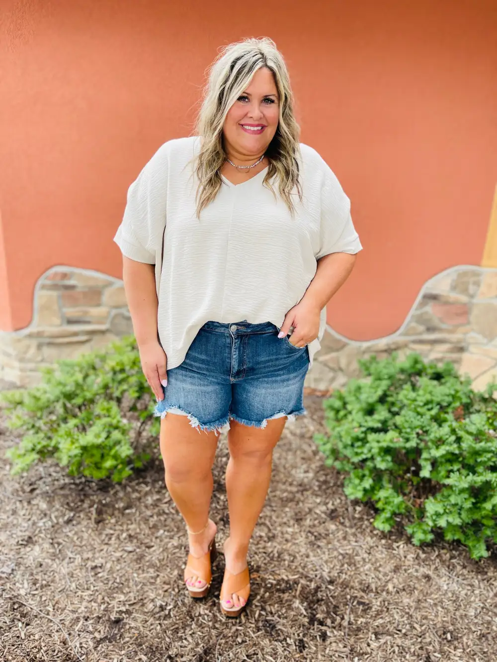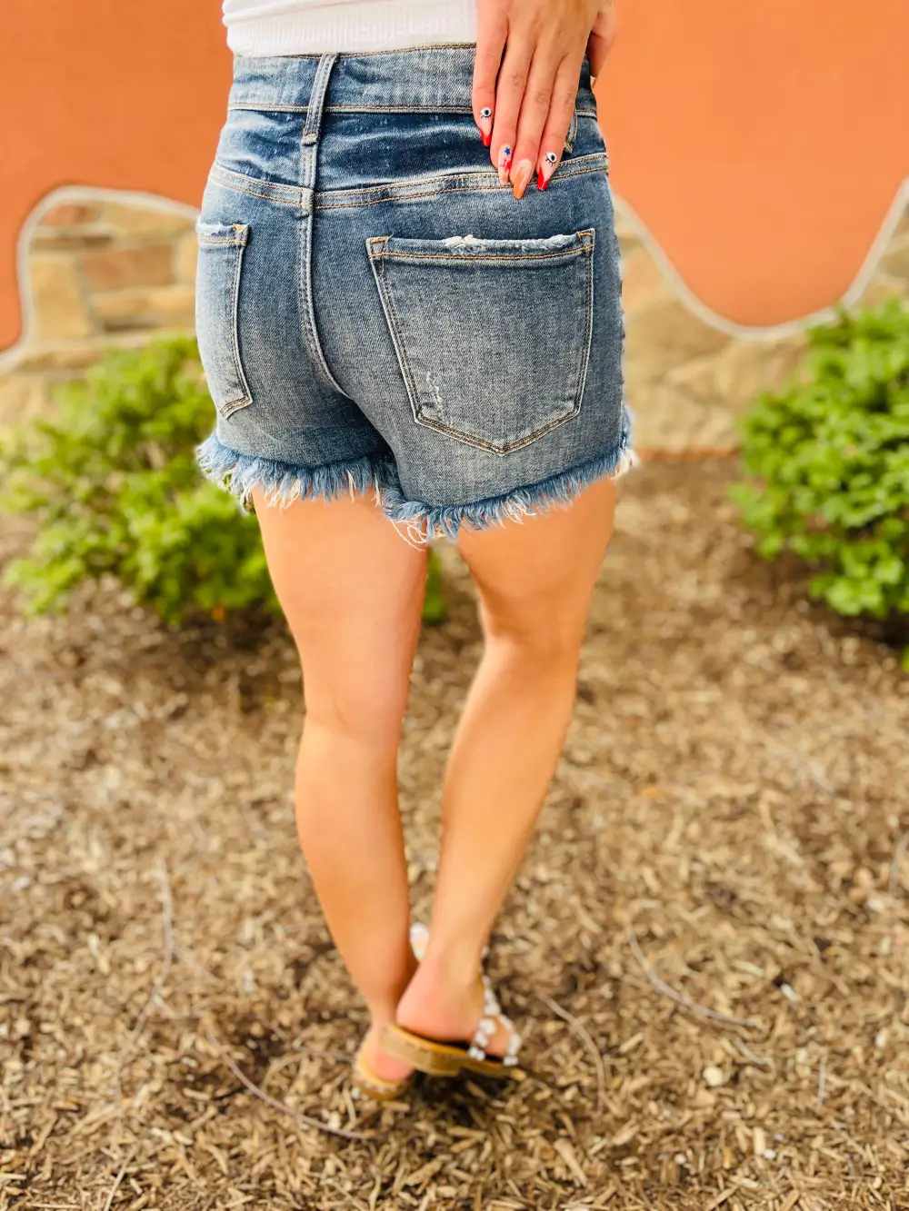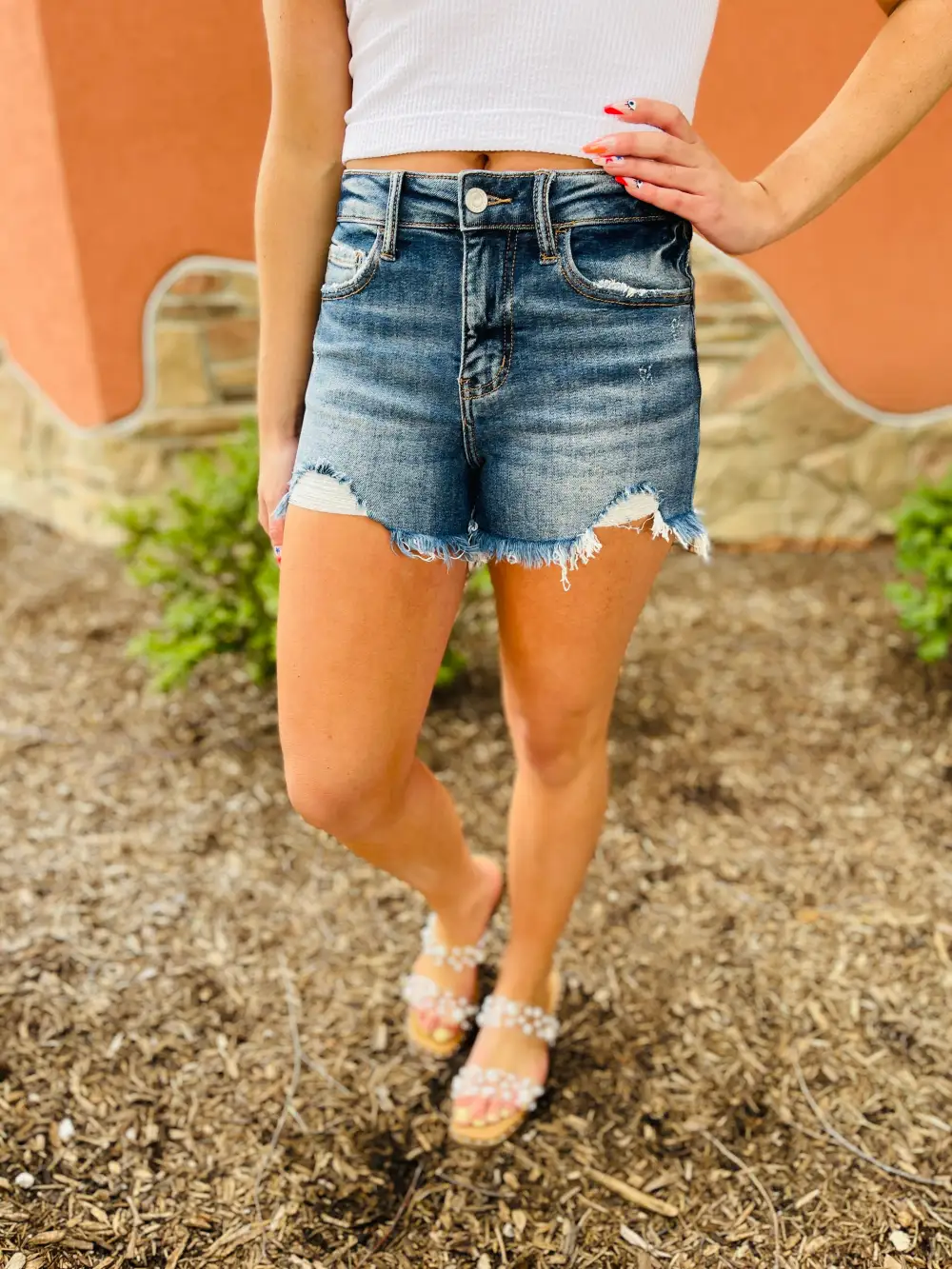 Dusk Blue Button Fly High Waist Roll Edge Denim Shorts
