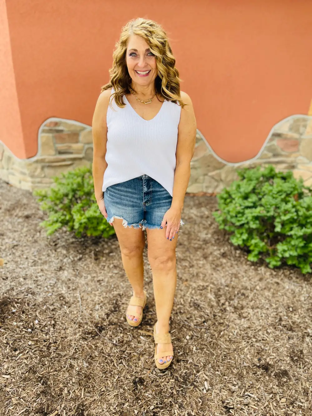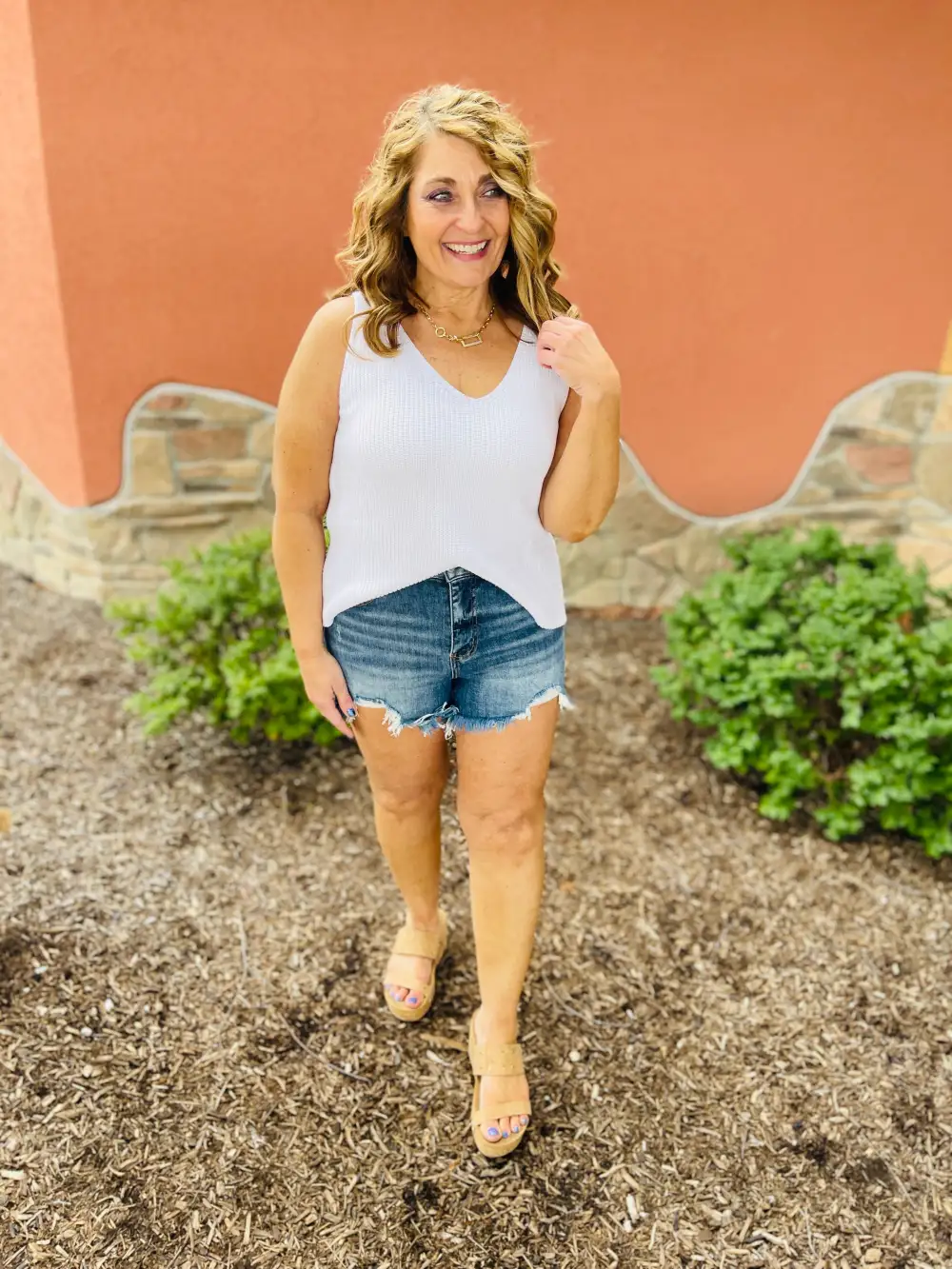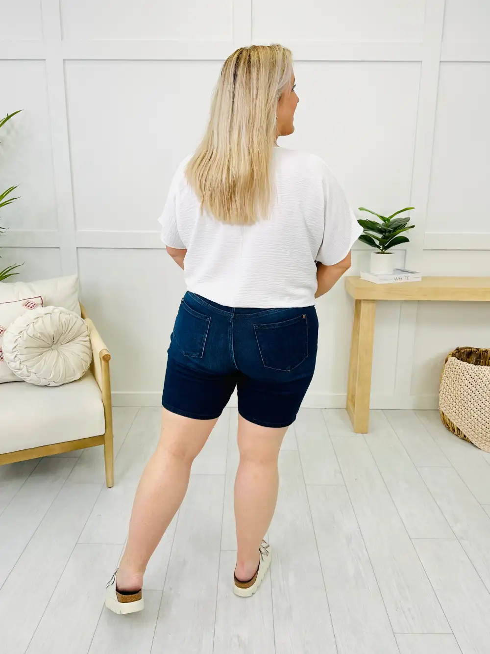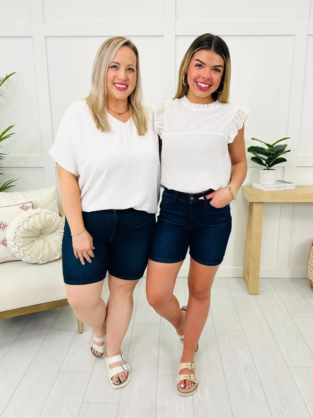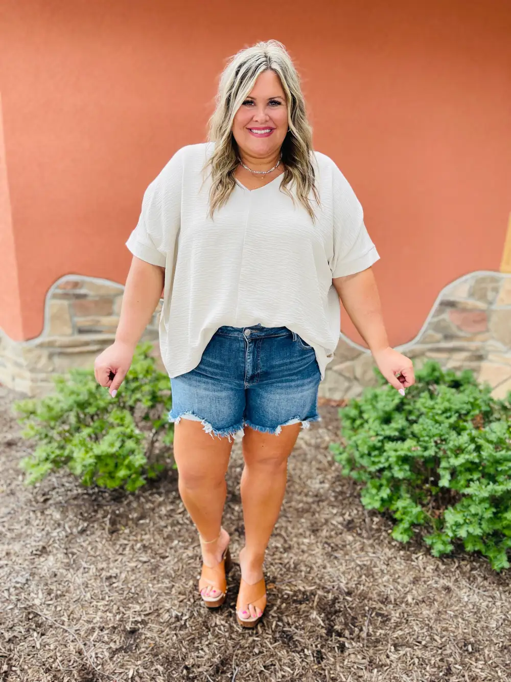 Dusk Blue Button Fly High Waist Roll Edge Denim Shorts