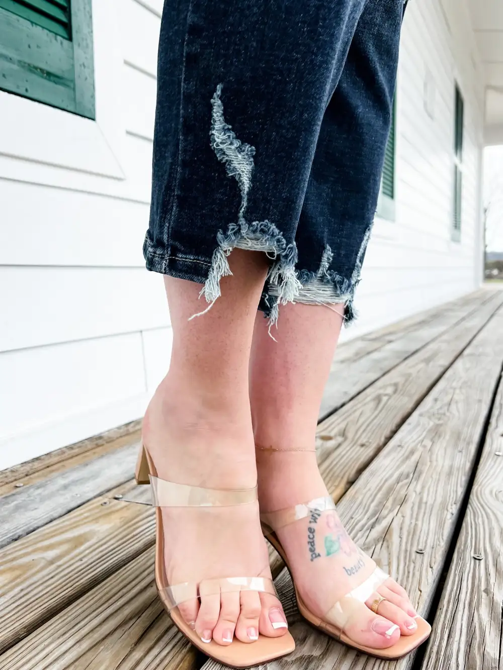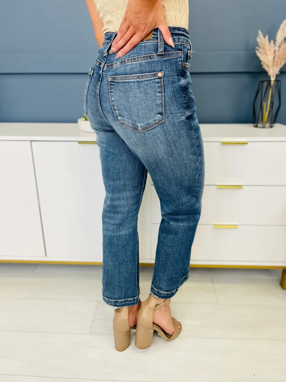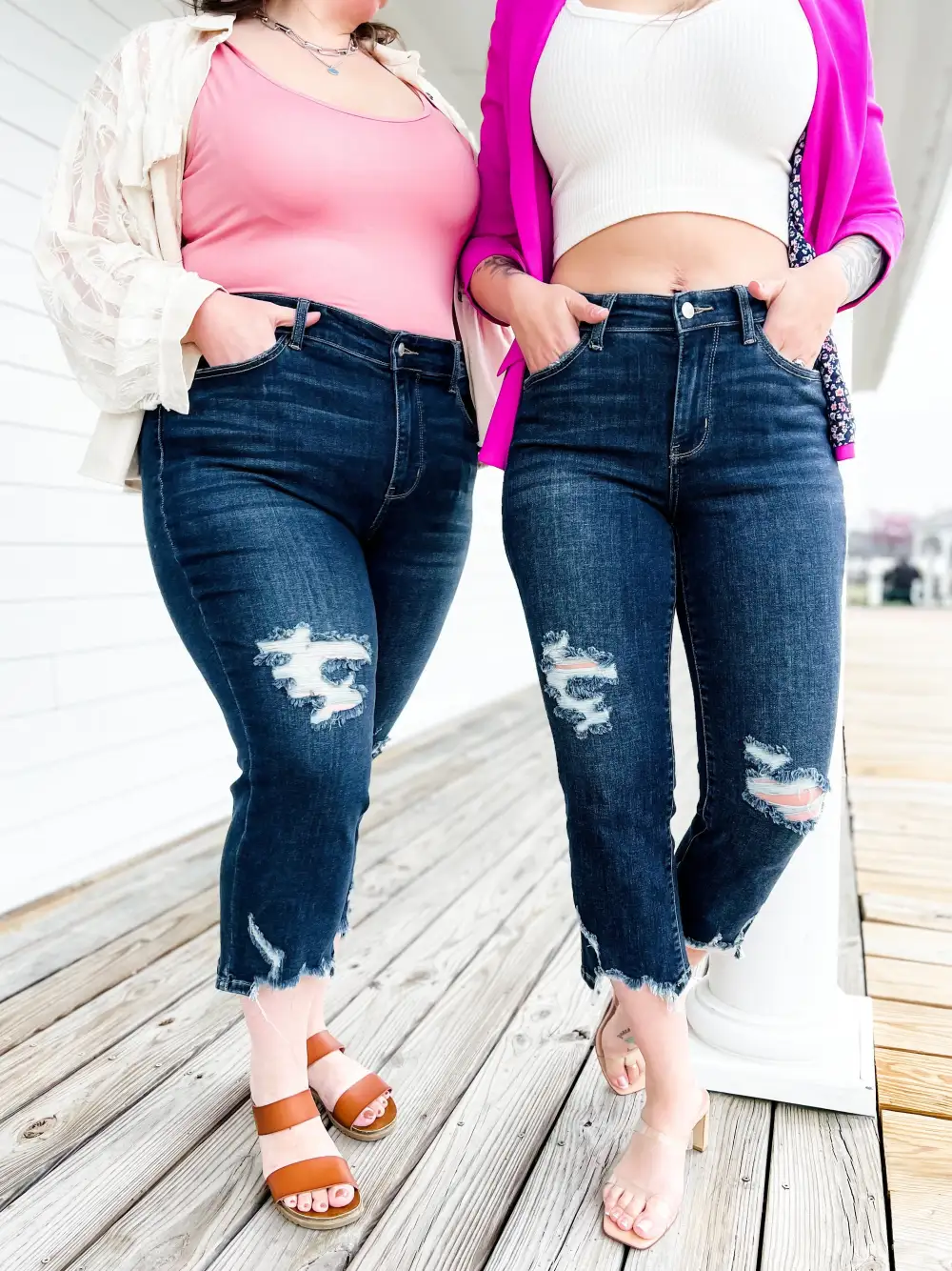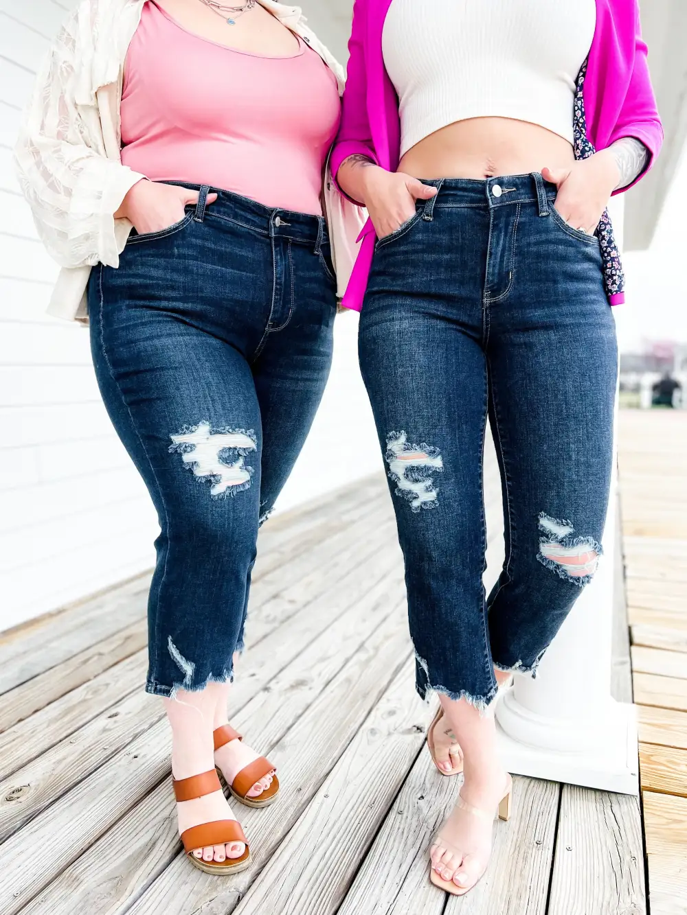 🔥Hot Sales🔥 After Hours Dark Wash Destroyed Hem Cropped Straight Leg Jeans