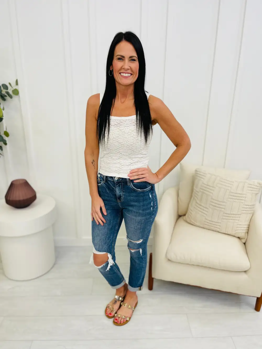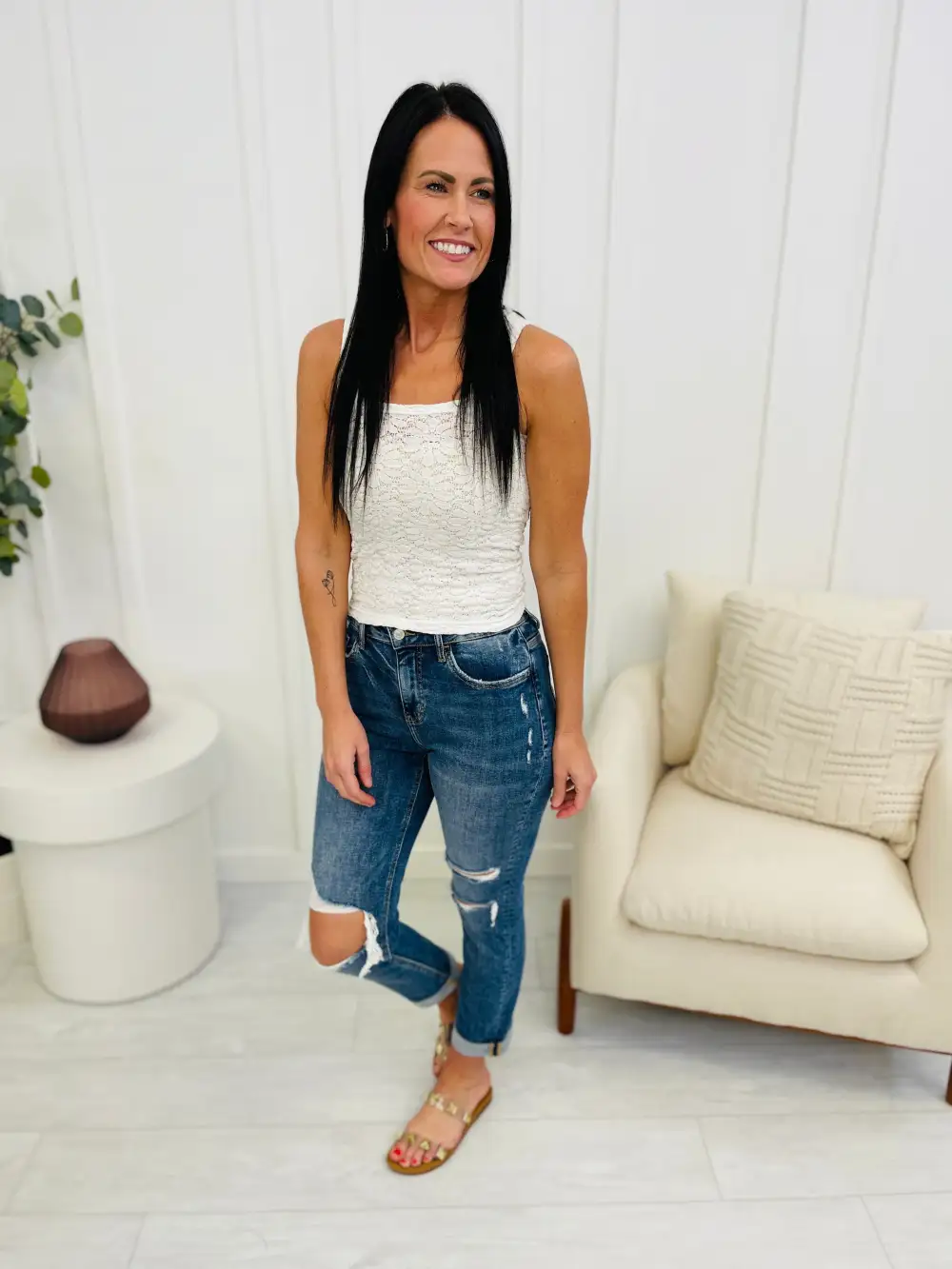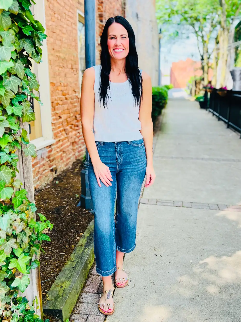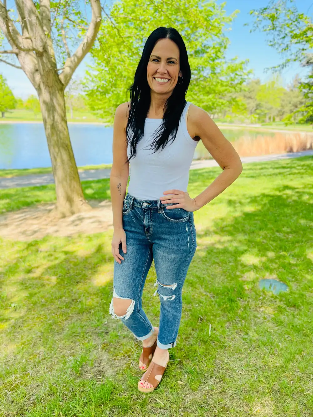 🔥Hot Sales🔥 After Hours Dark Wash Destroyed Hem Cropped Straight Leg Jeans
