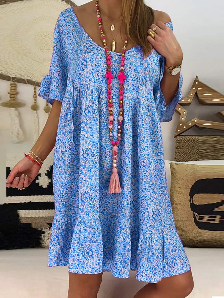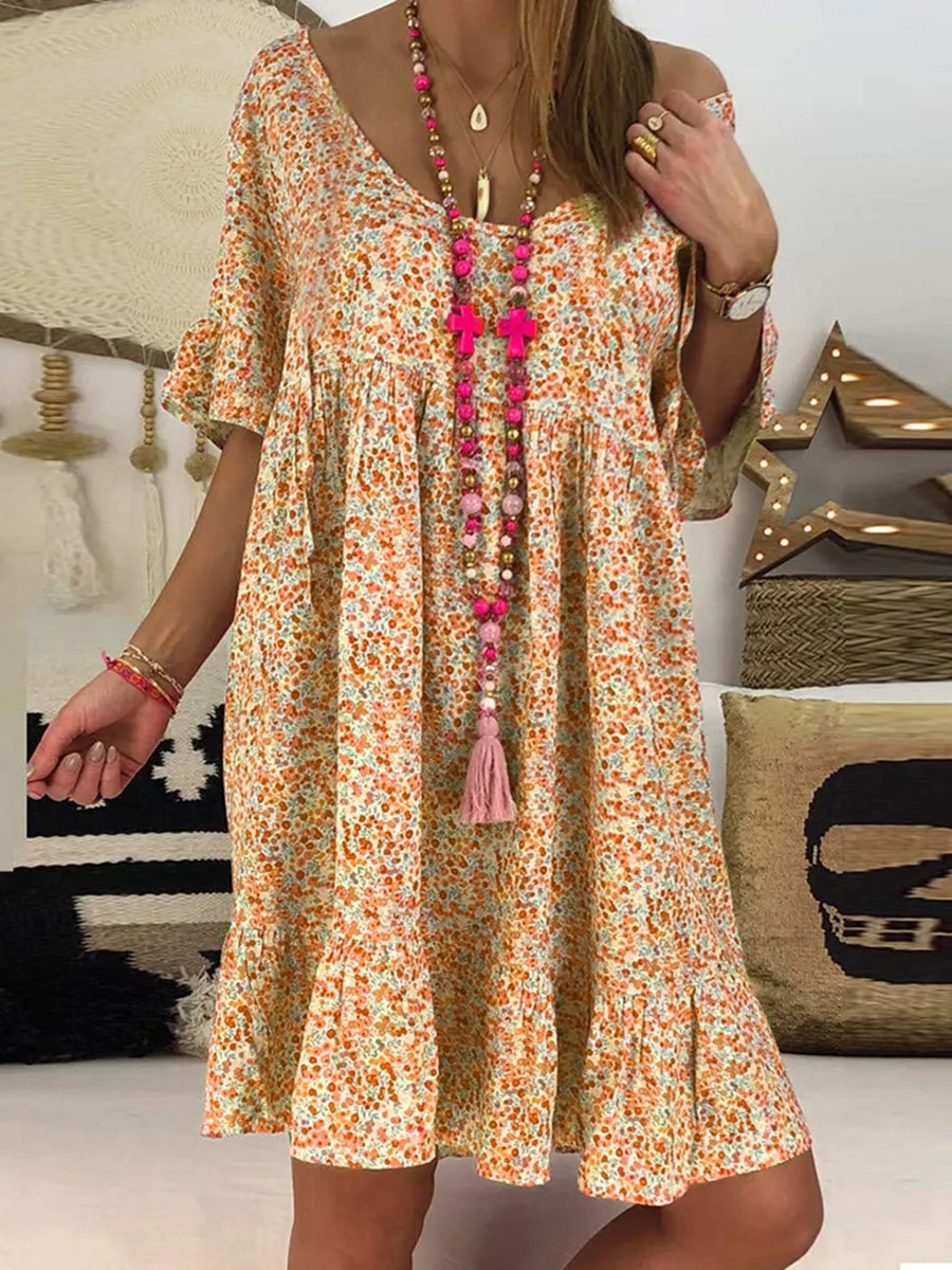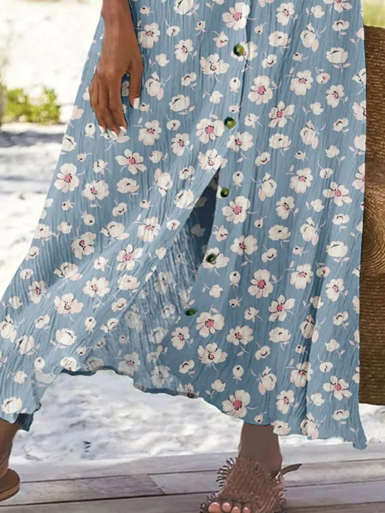 Women's Casual V-neck Sunflower Printed Short Sleeved T-shirt