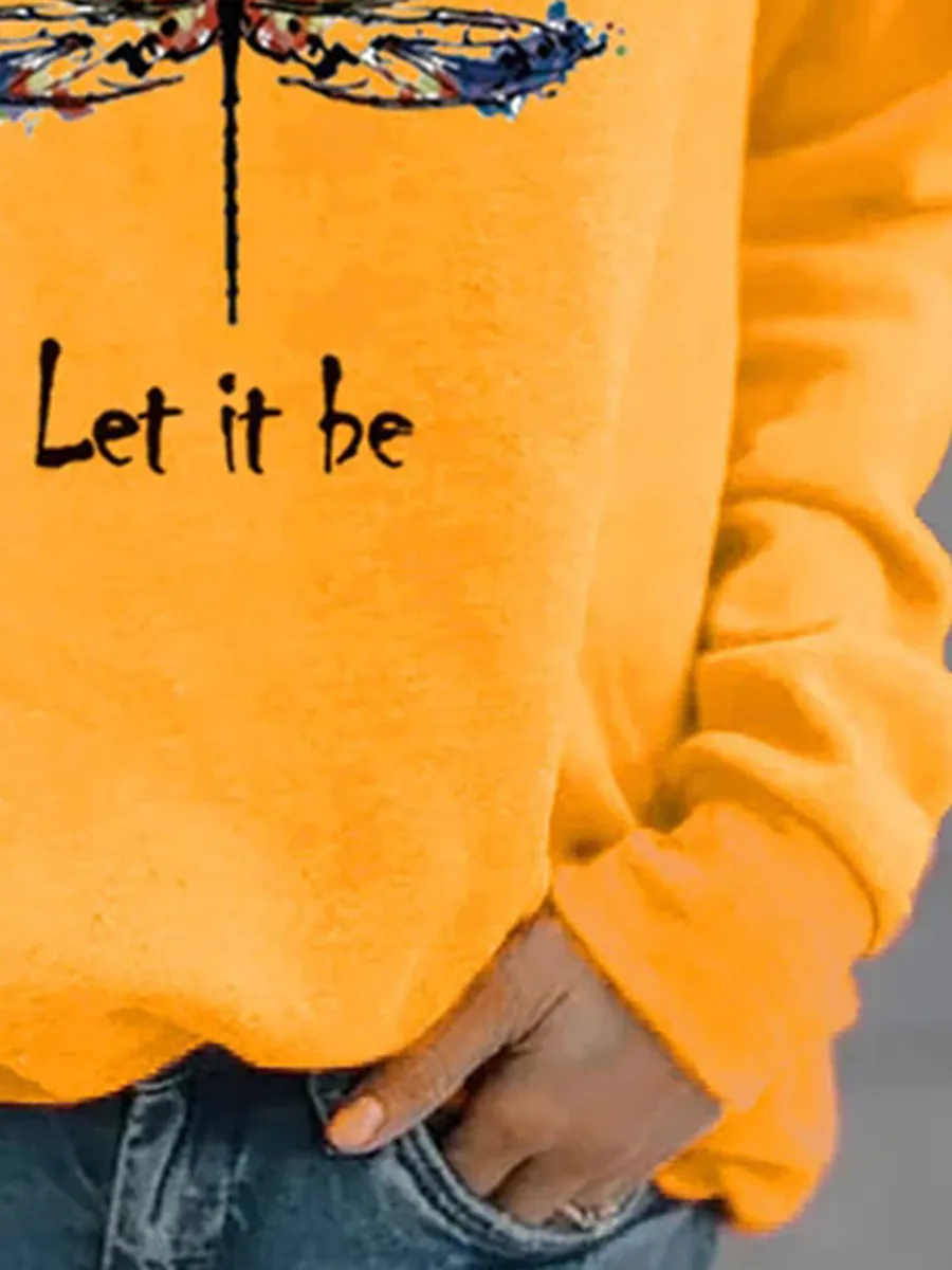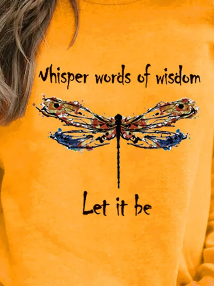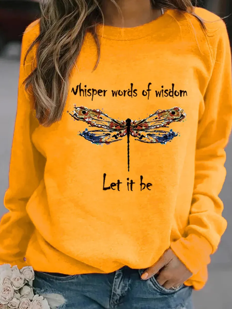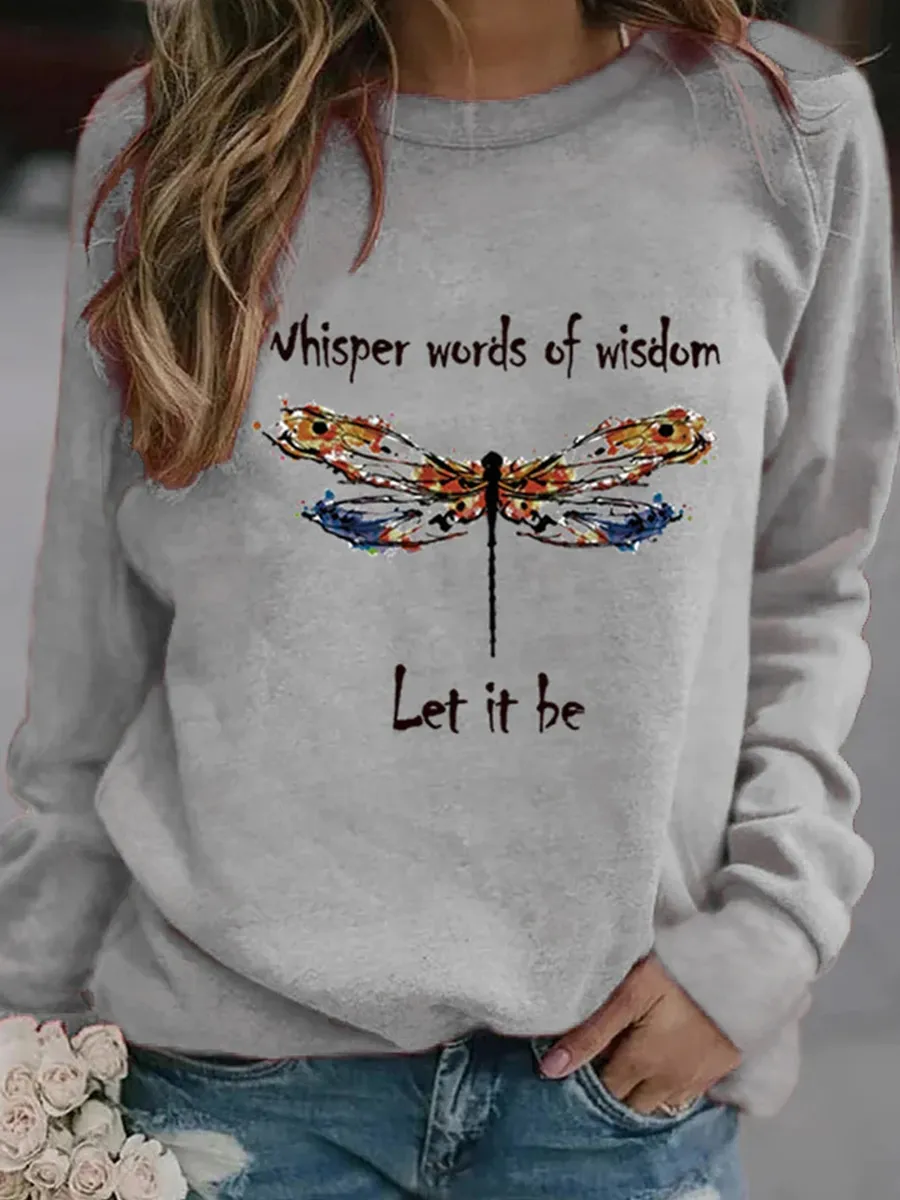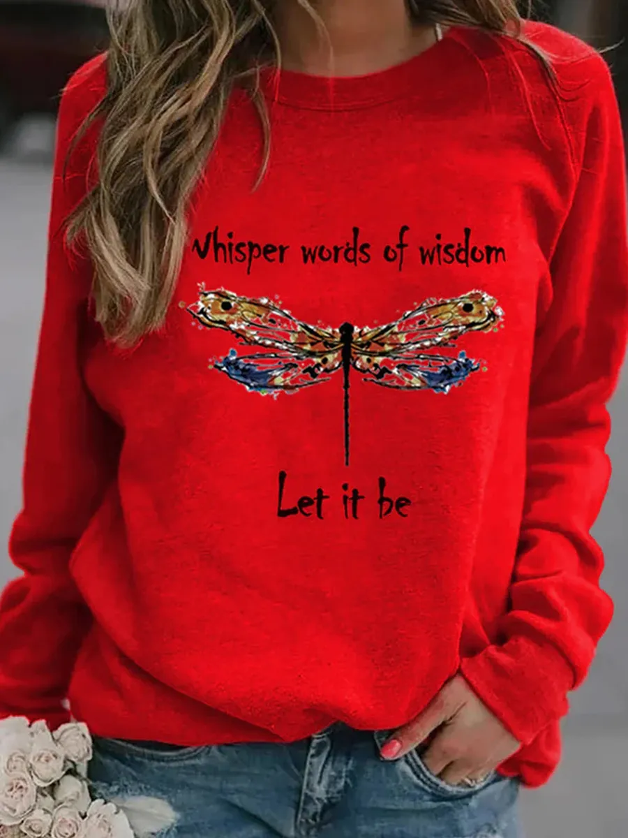 Women's Letter Dragonfly Printed Round Neck Pullover Comfortable Top