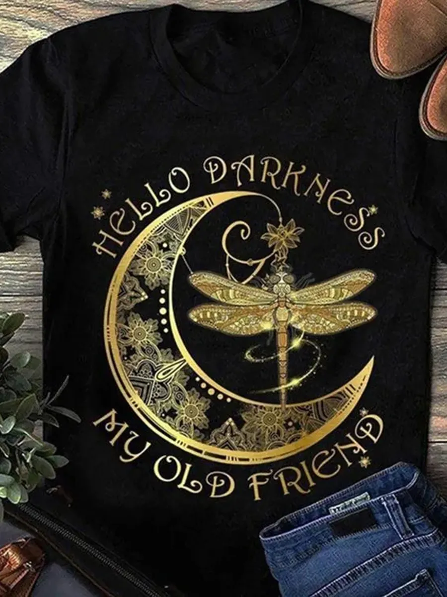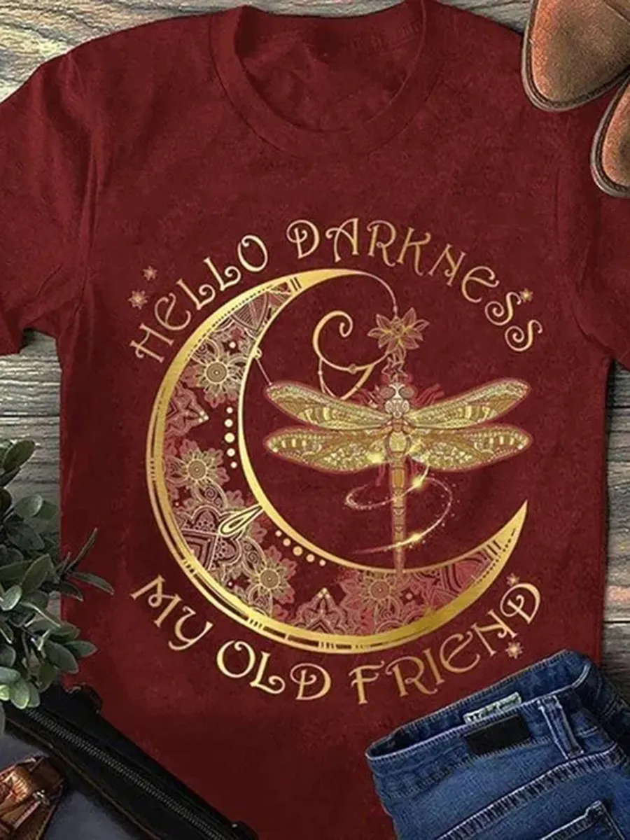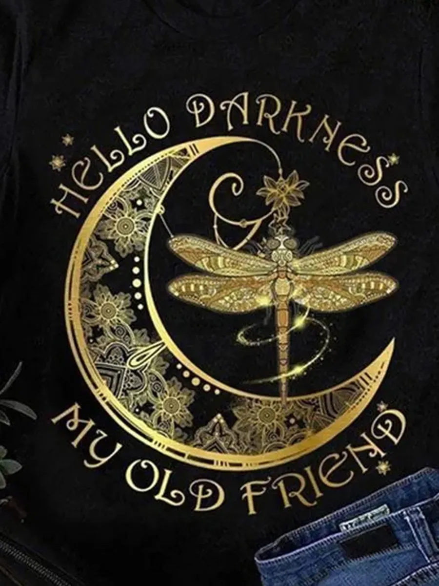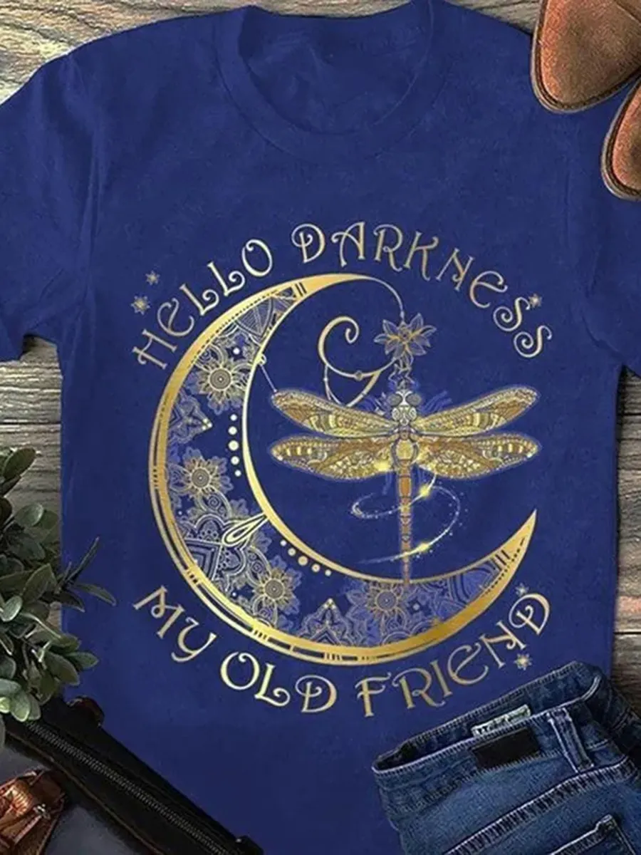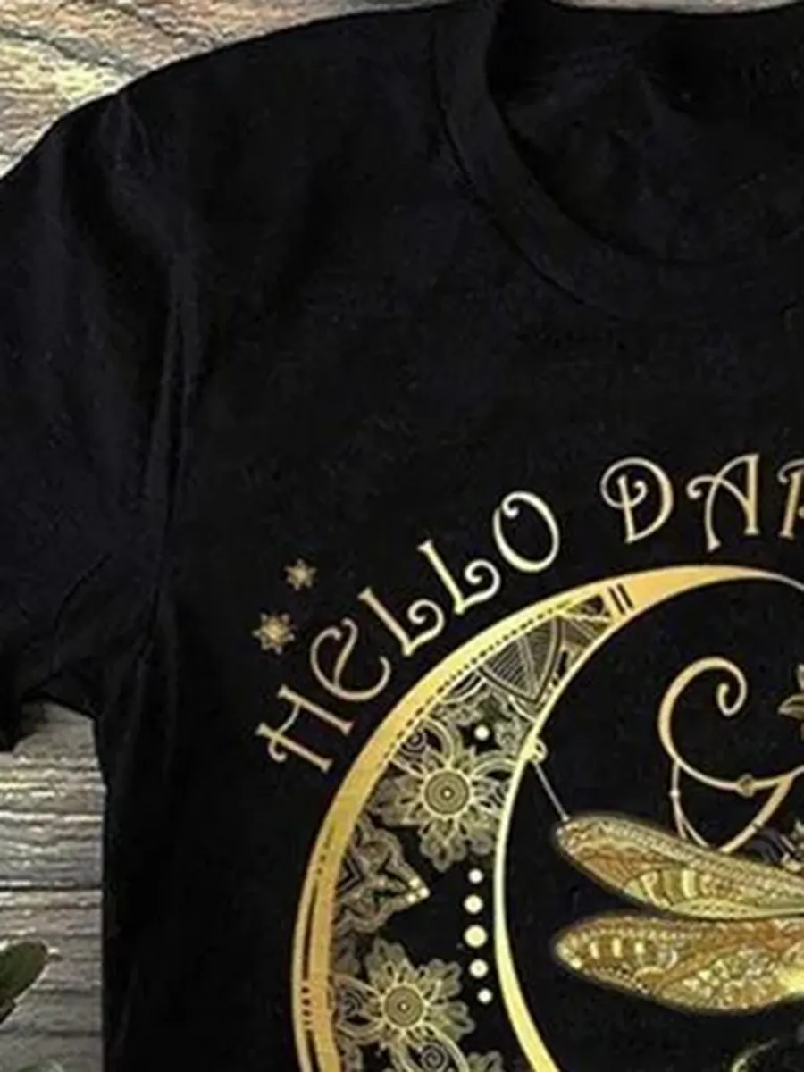 Women's Dragonfly Printed T-shirt With Round Neck And Short Sleeves