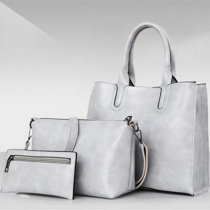 Women's new retro three-piece fashion oil wax leather large-capacity handbag