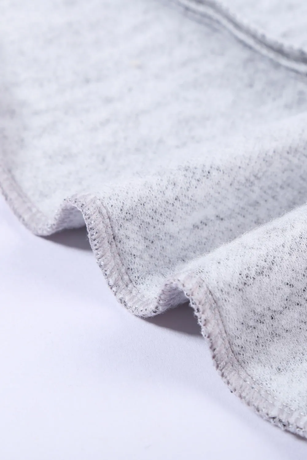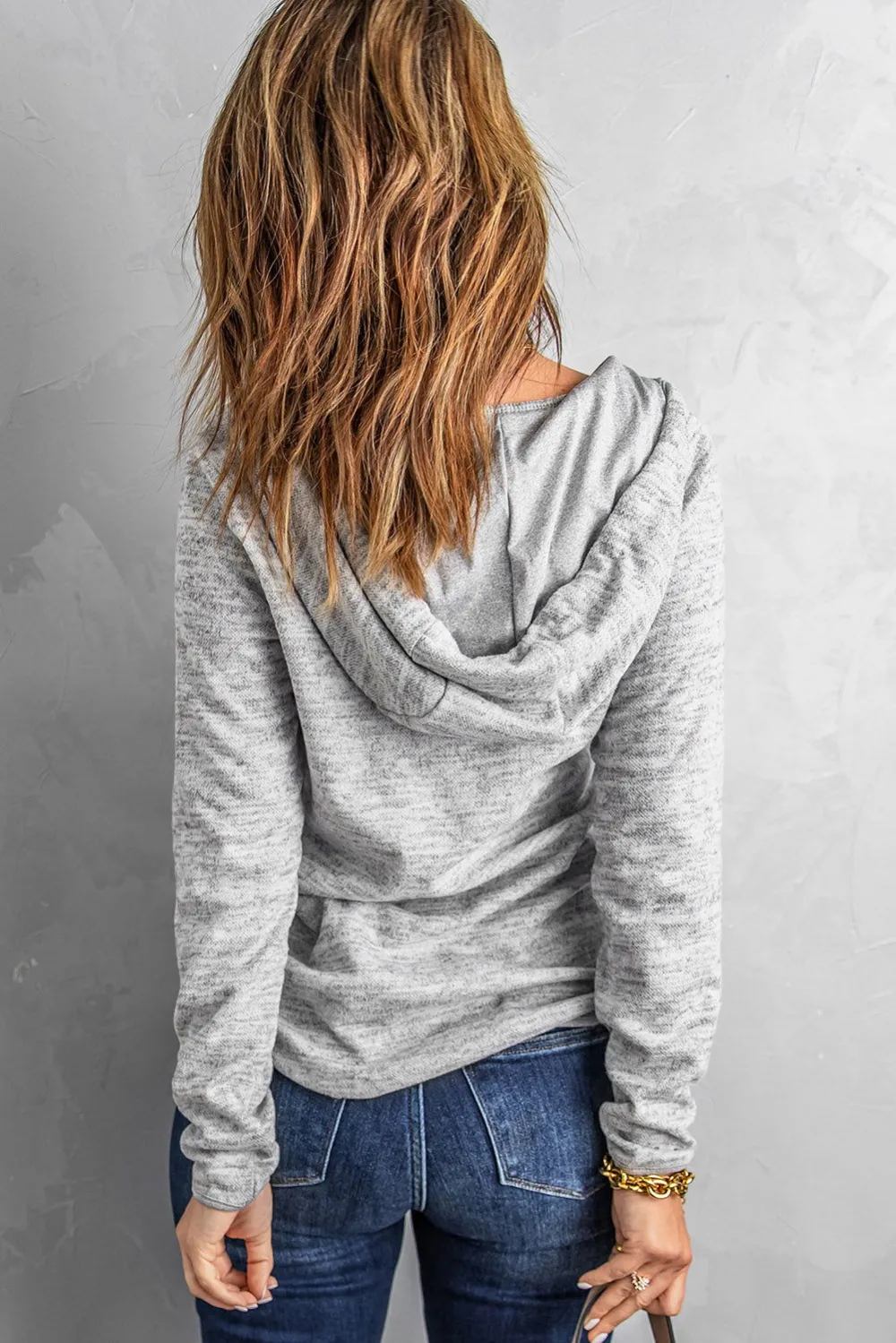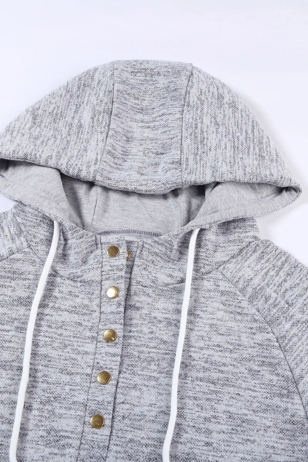 Grey Snap Button Long Sleeve Pullover Hoodie for Women