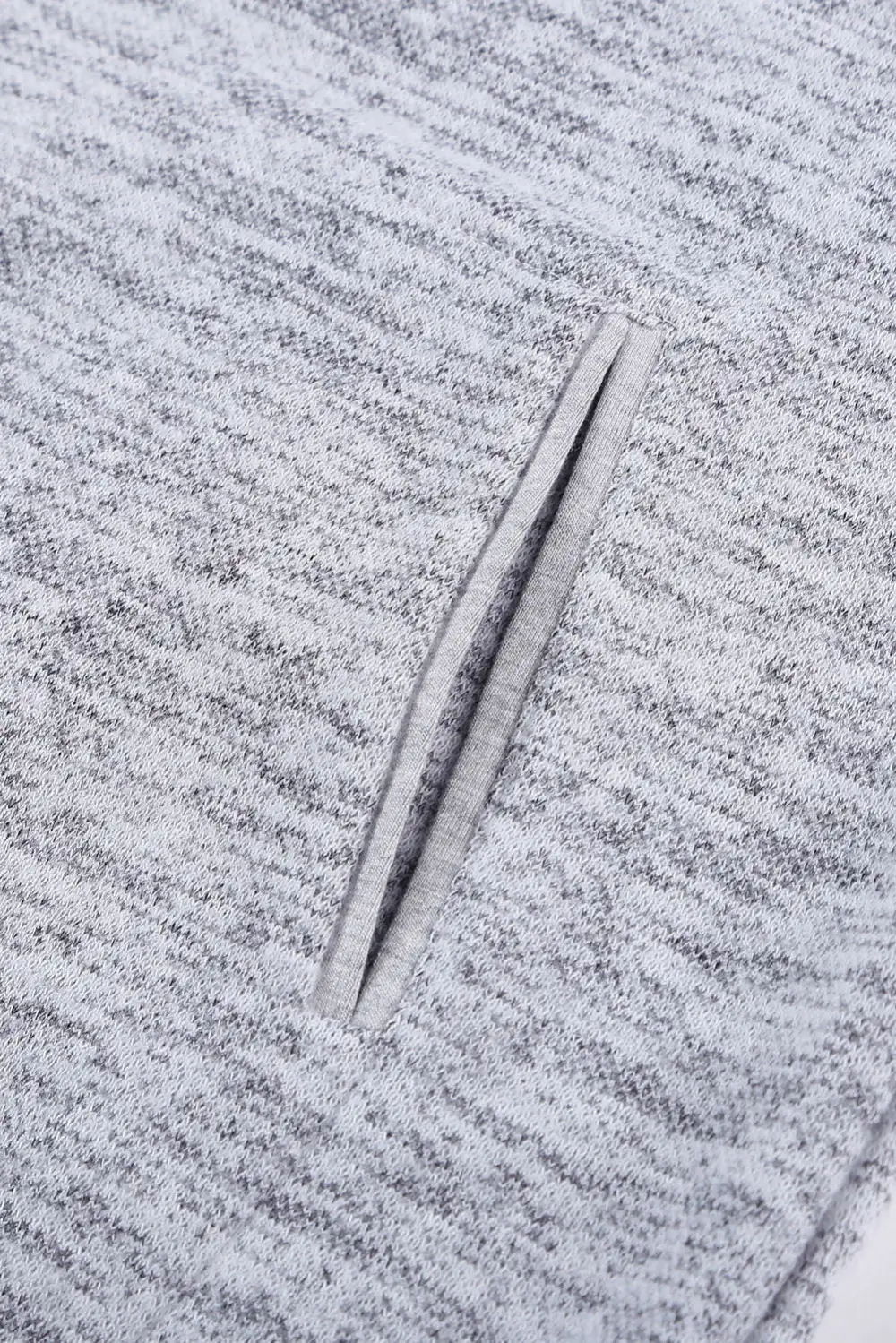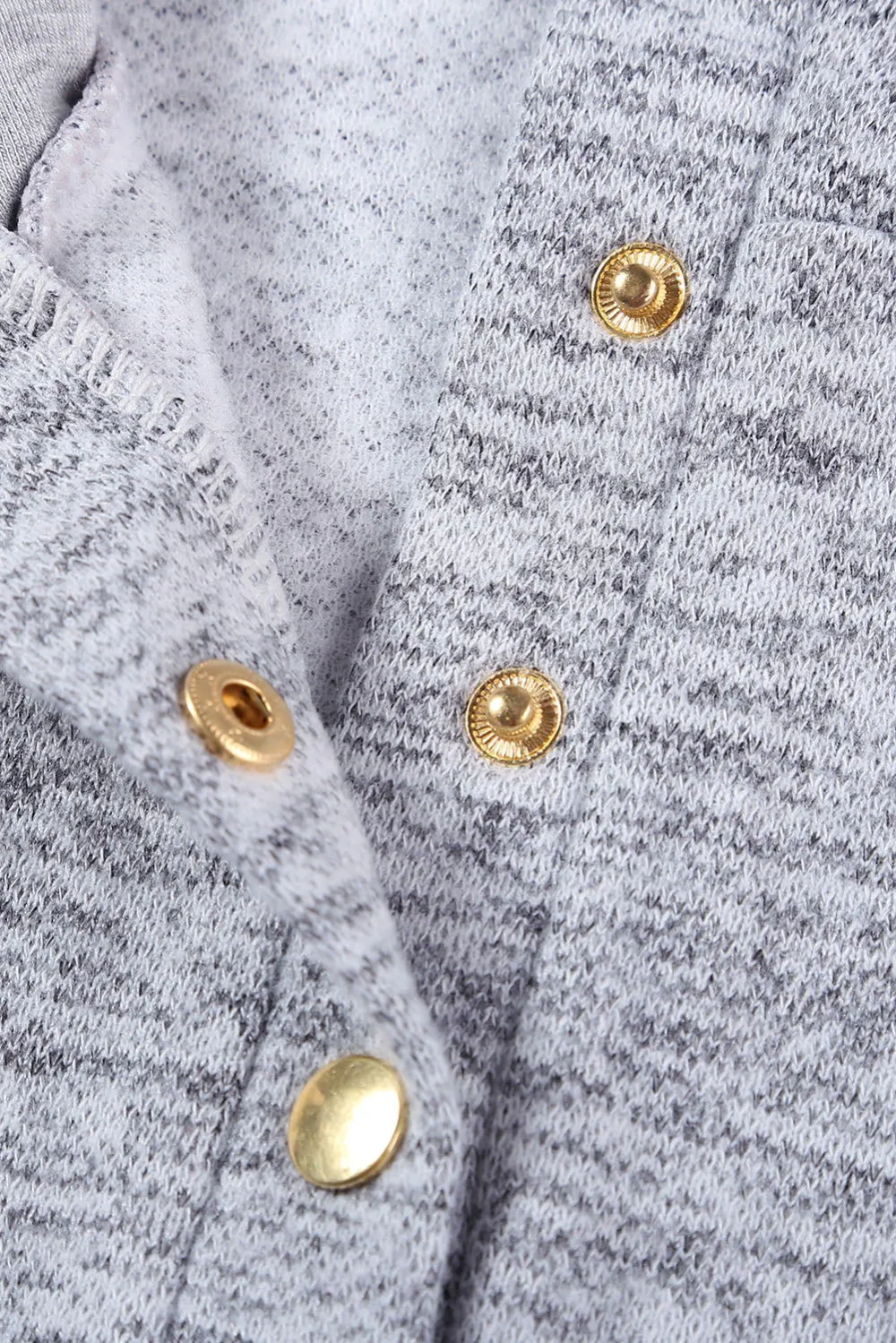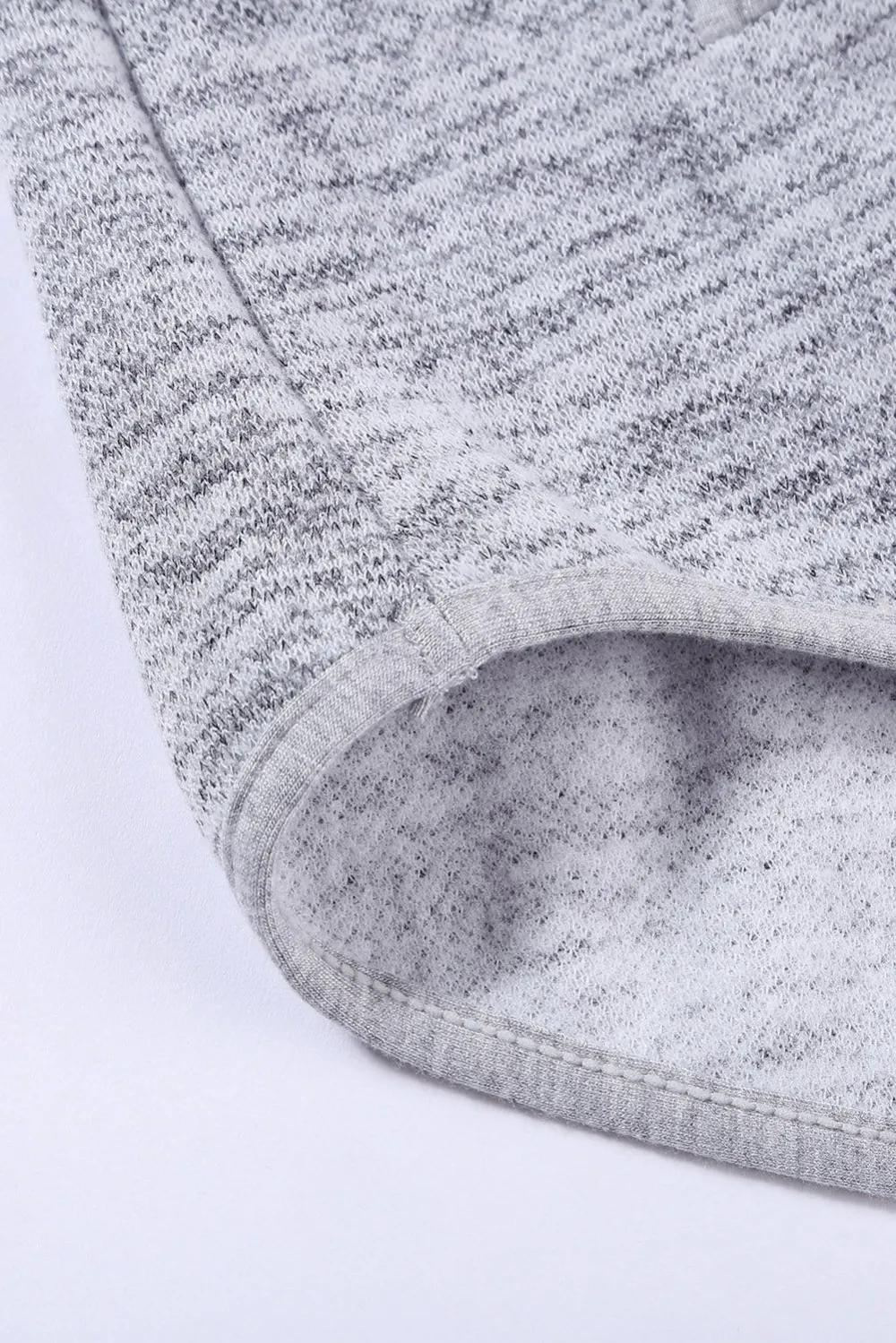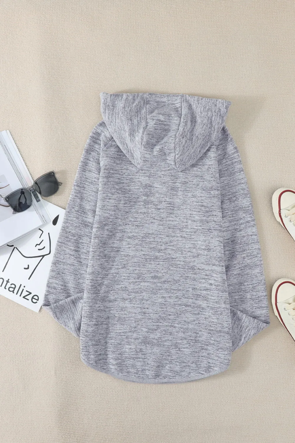 Grey Snap Button Long Sleeve Pullover Hoodie for Women