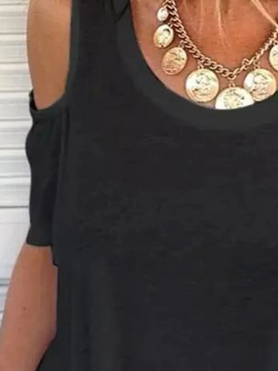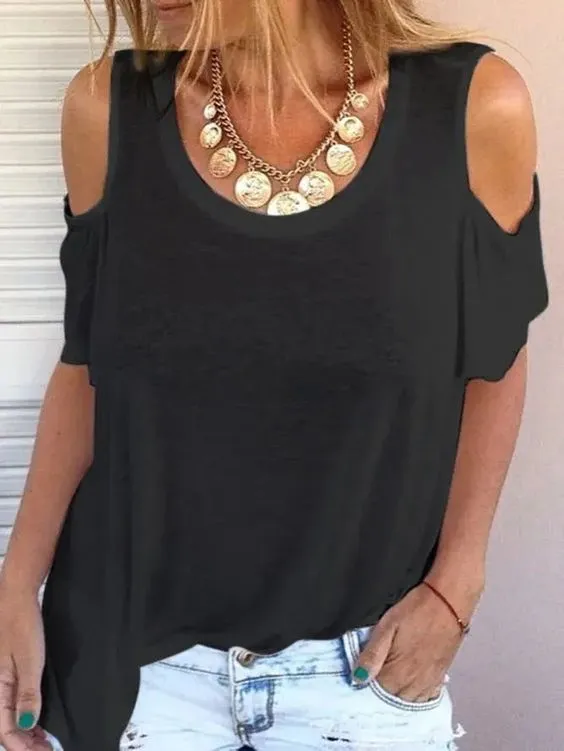 Women's Solid Color Casual Off Shoulder Loose Short Sleeved Top