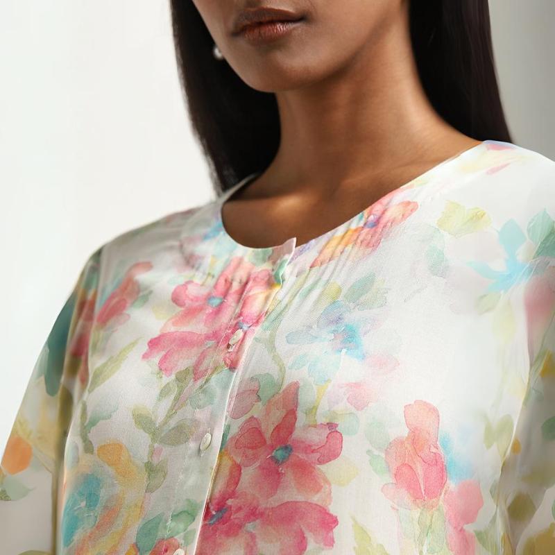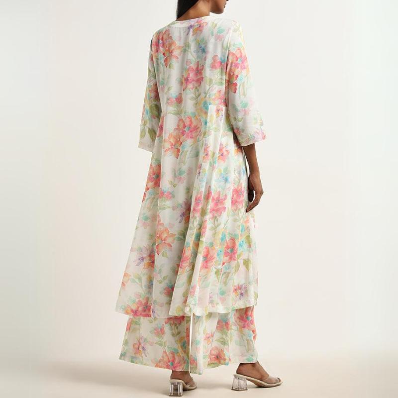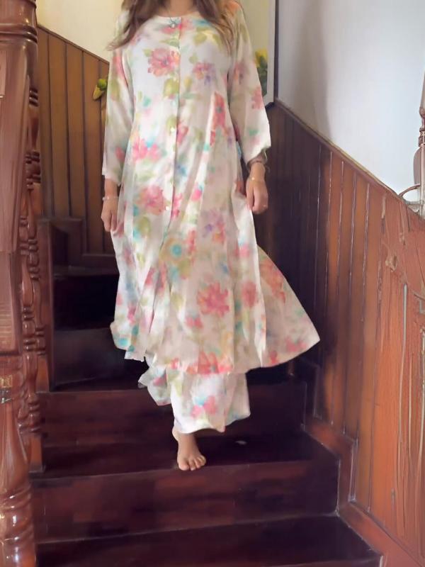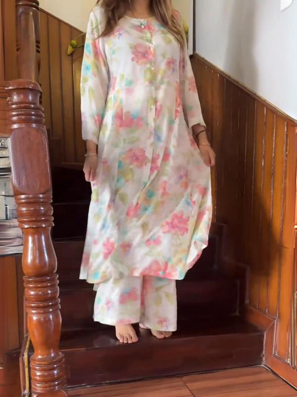 Women's Round Neck Printed Chiffon Suit