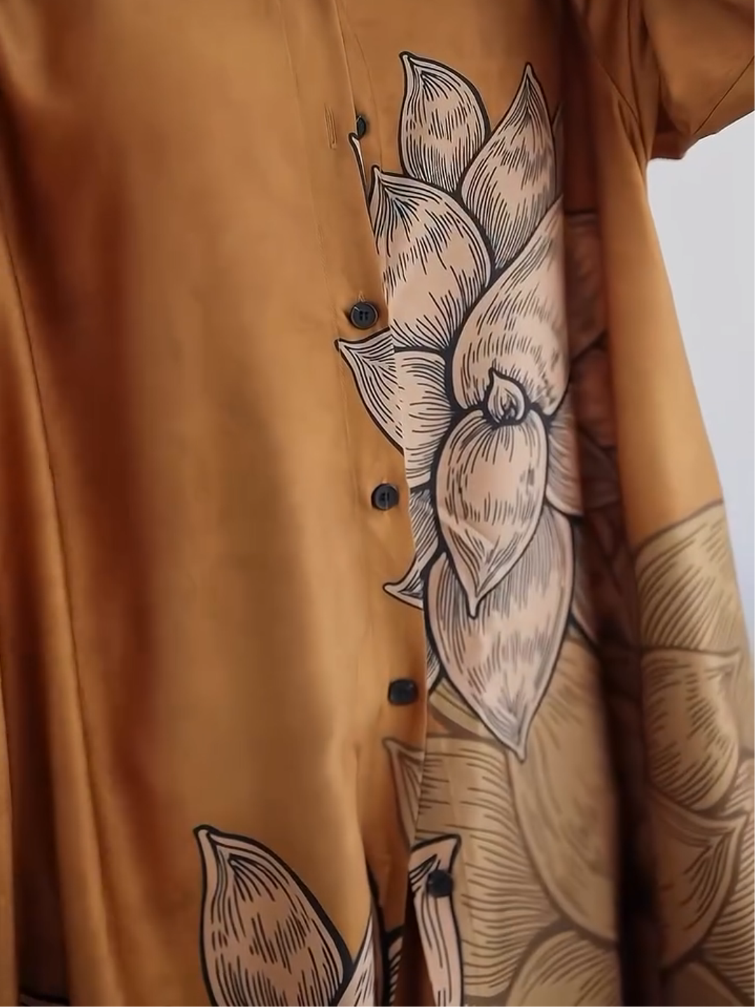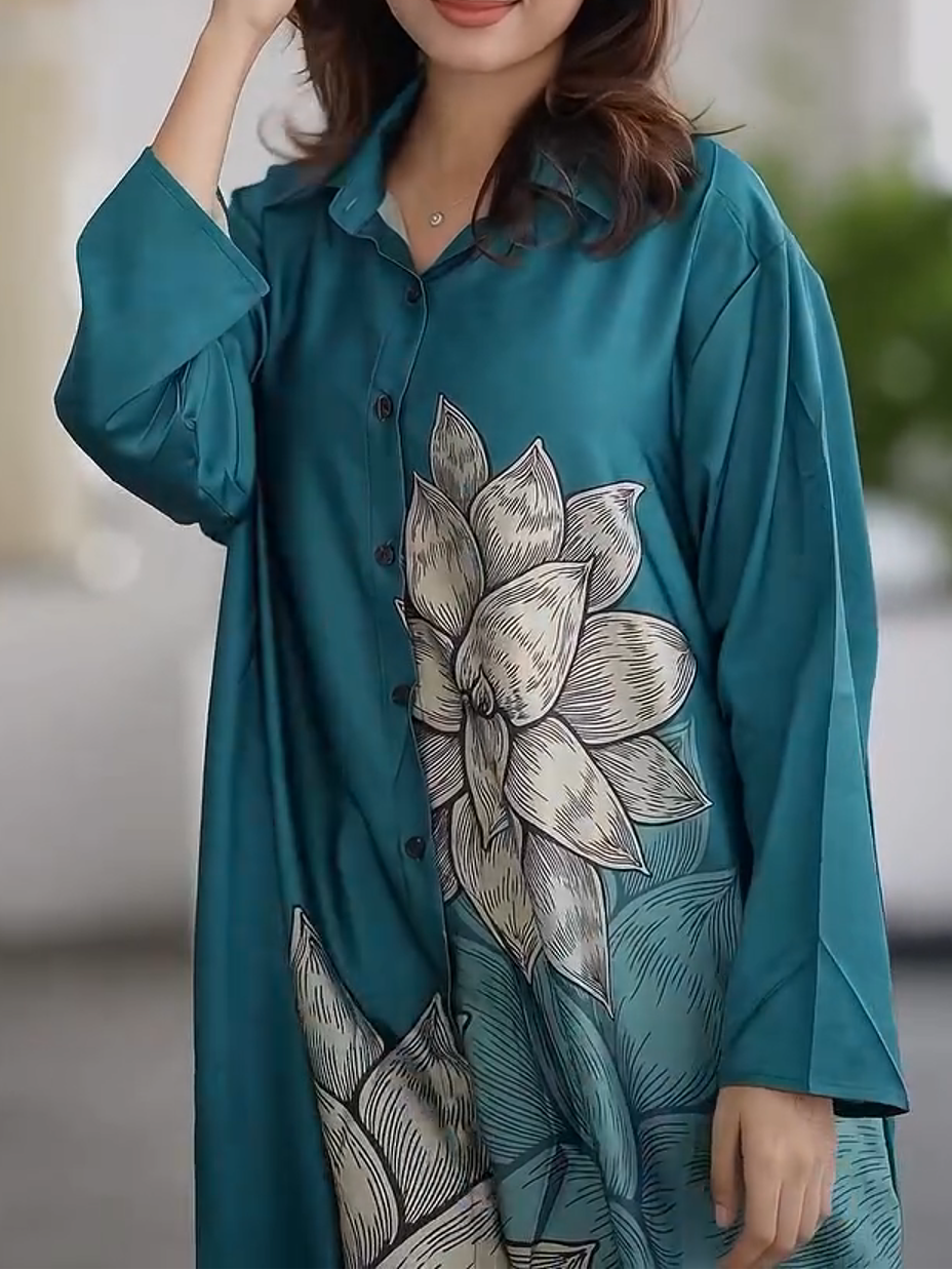 Elegant Ink Lotus Long Sleeve Shirt Robe Set