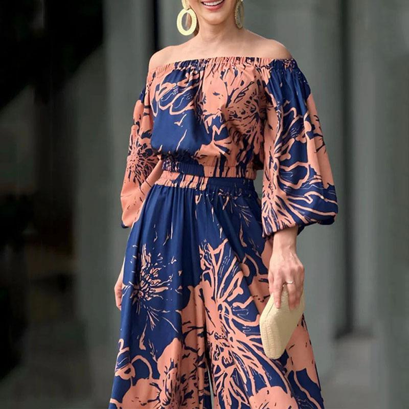 New casual printed off-shoulder wide-leg pants suit
