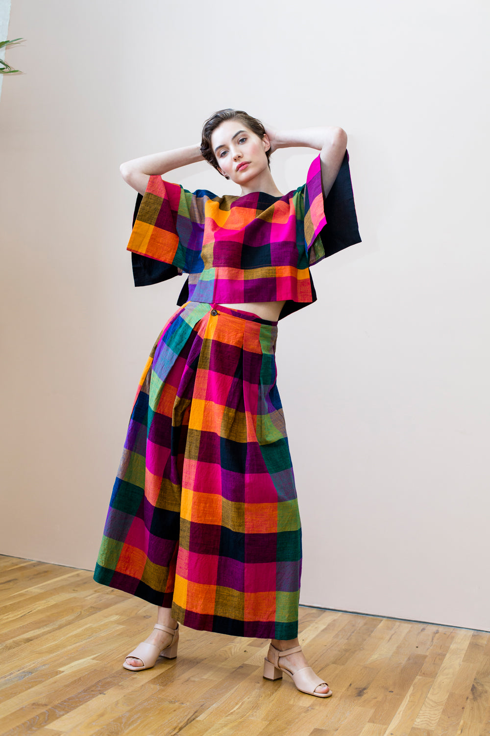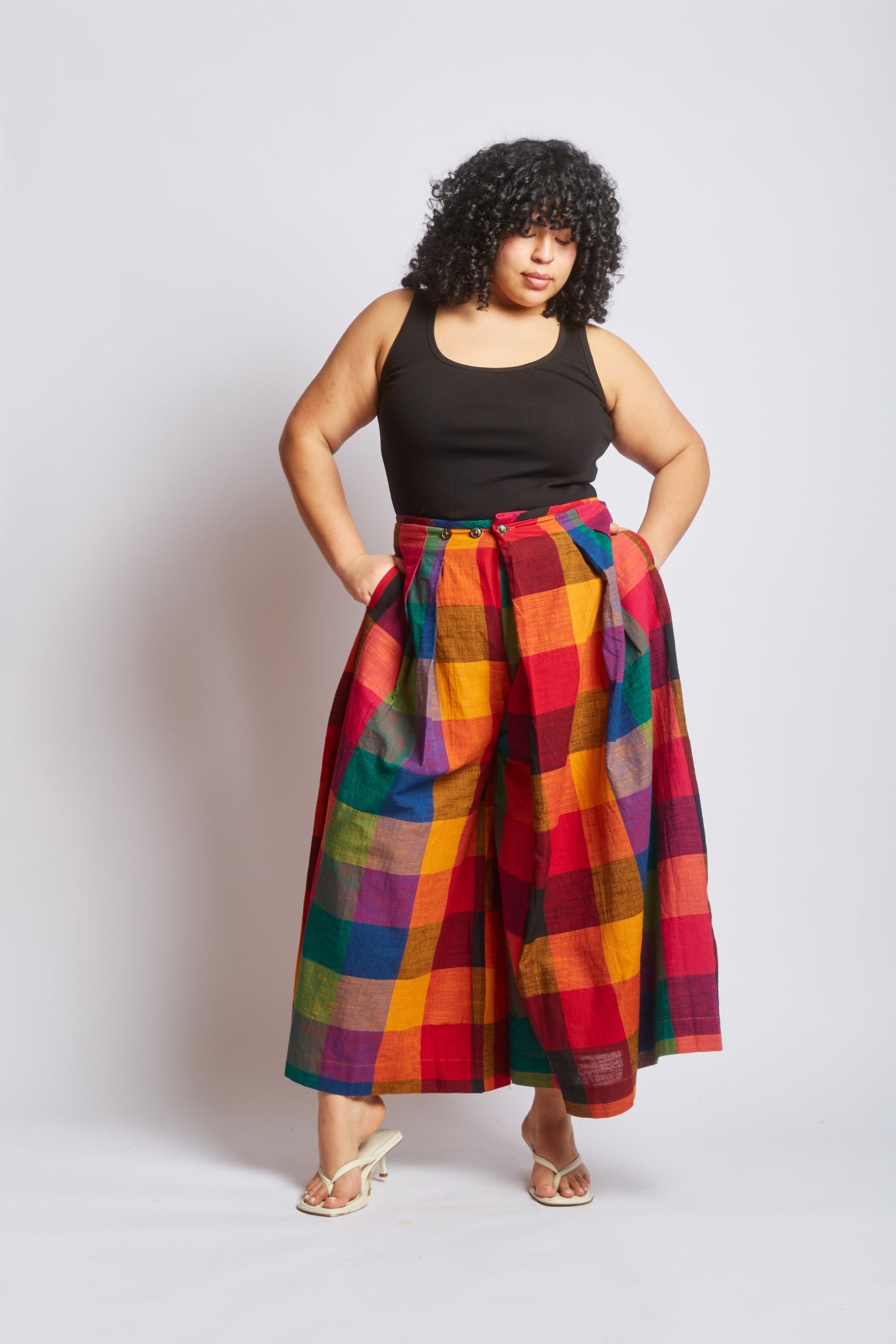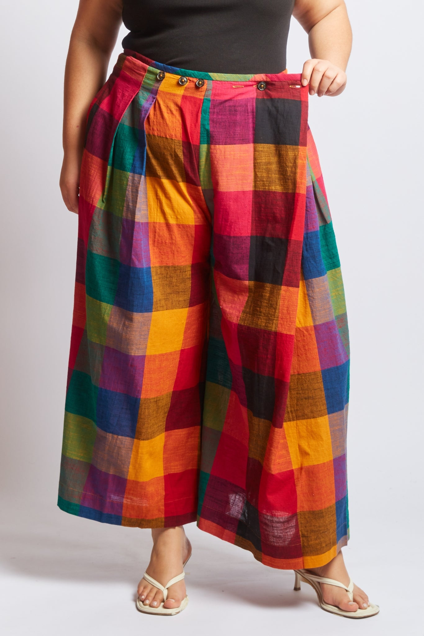 🔥Limited time sale🔥High waist flared pants high-end plaid button lock suitable for any body type | MULTI CHEX