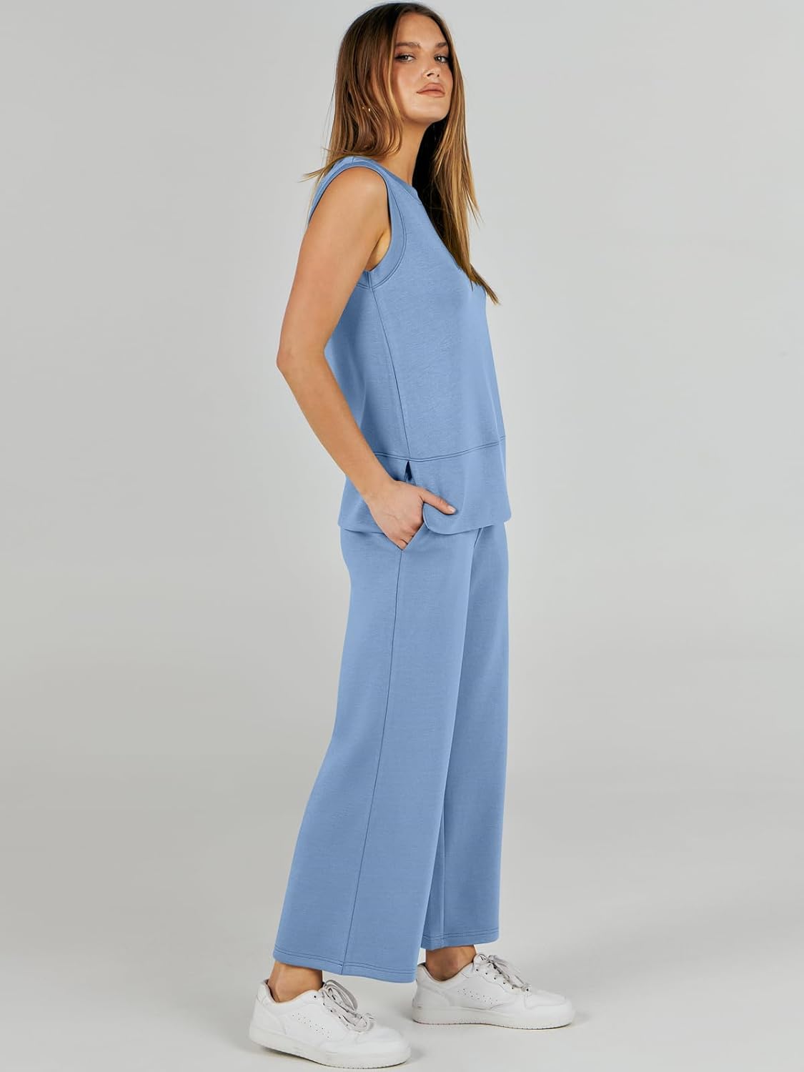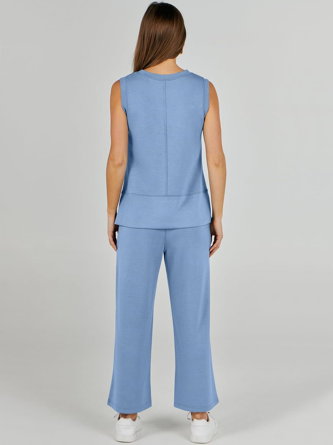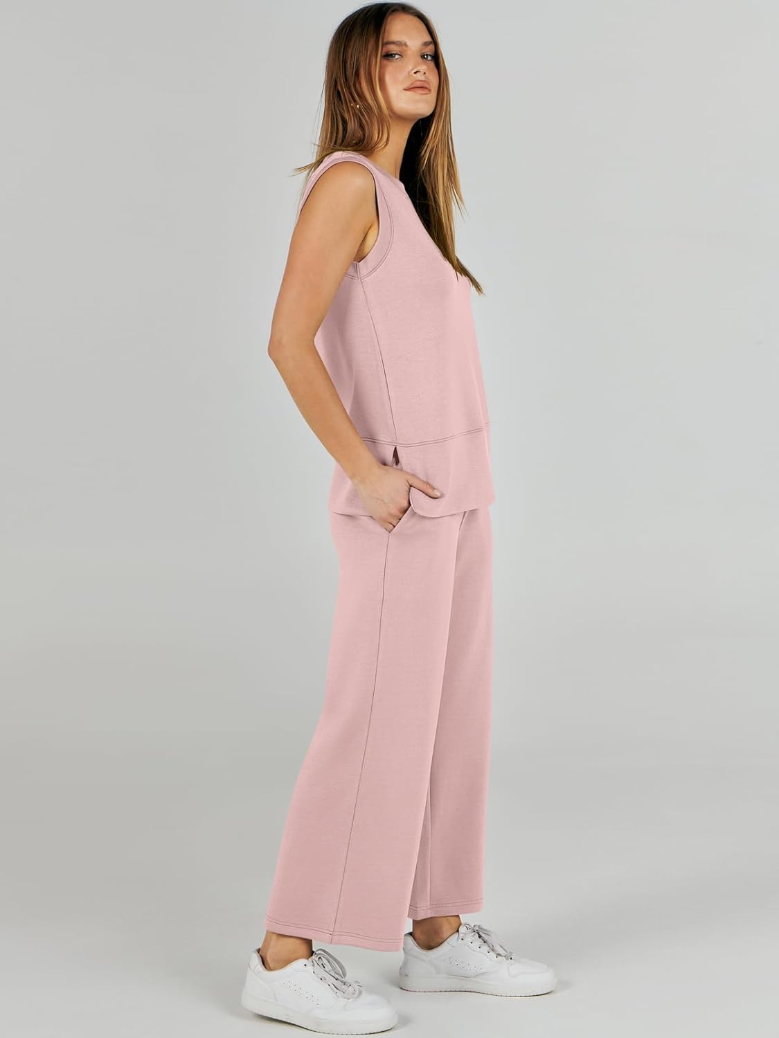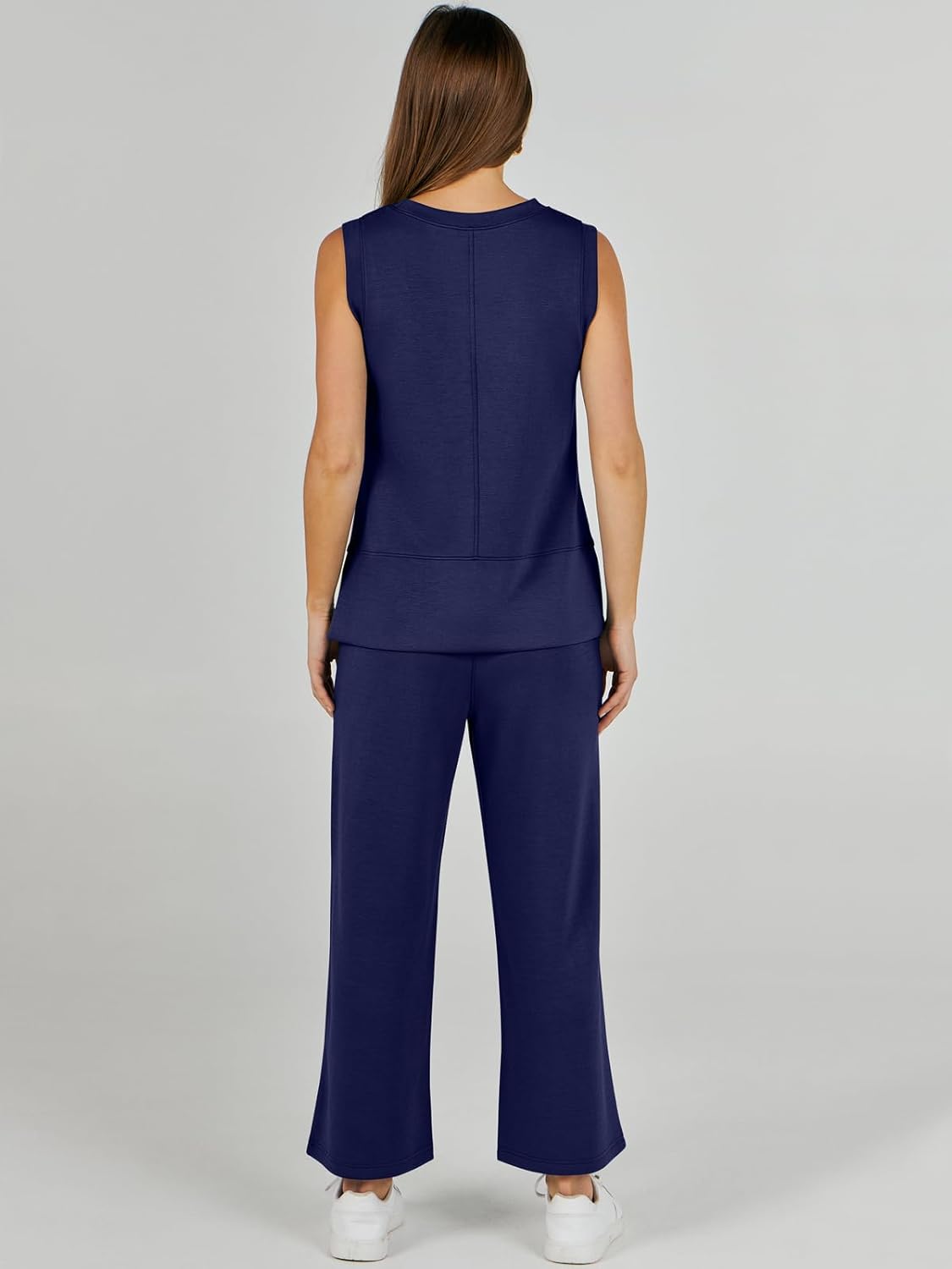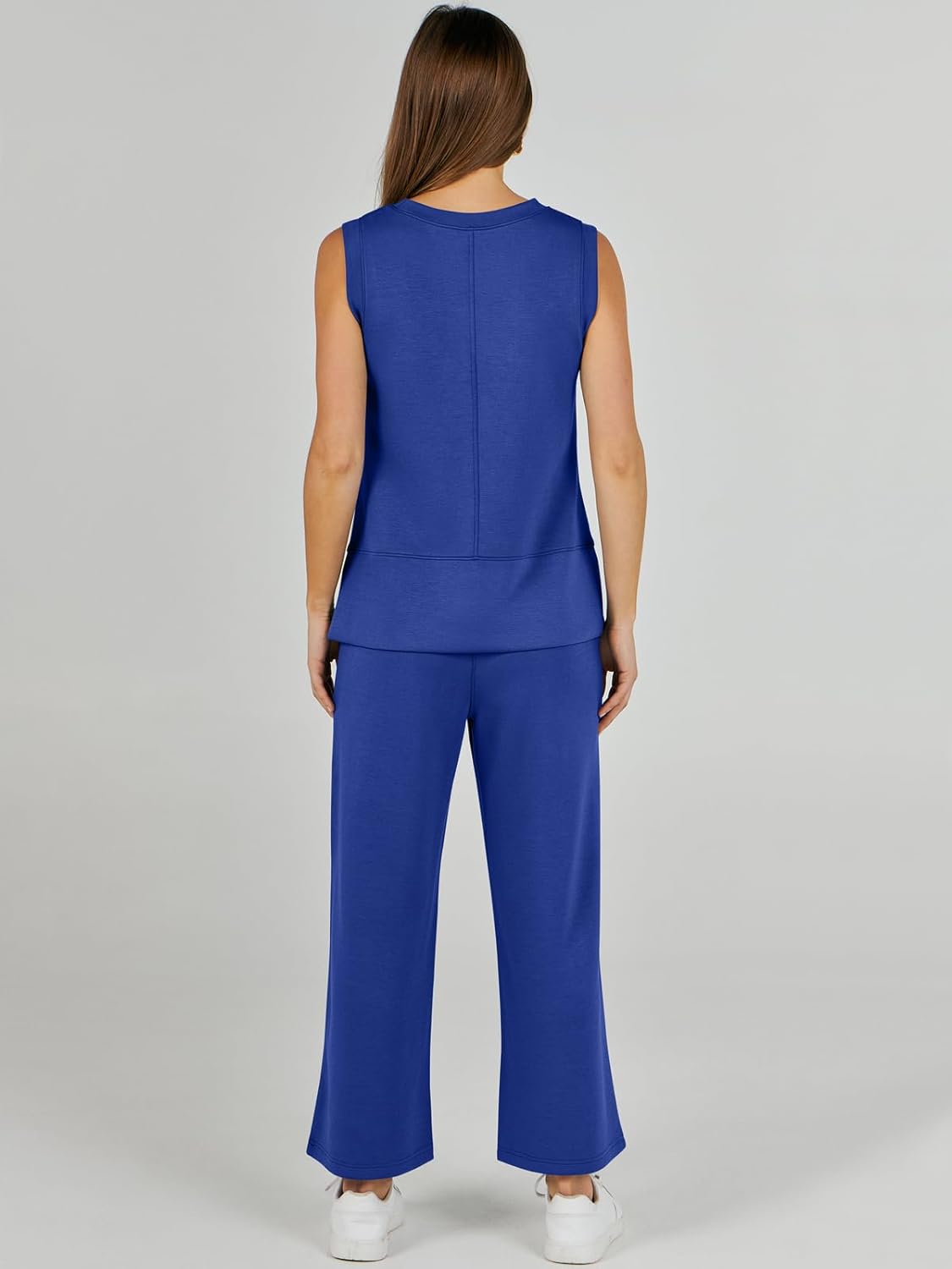 Women's 2 Piece Sets Summer Outfits Sleeveless Wide Leg Tracksuits Casual Sweat Sets Lounge Sweatsuits