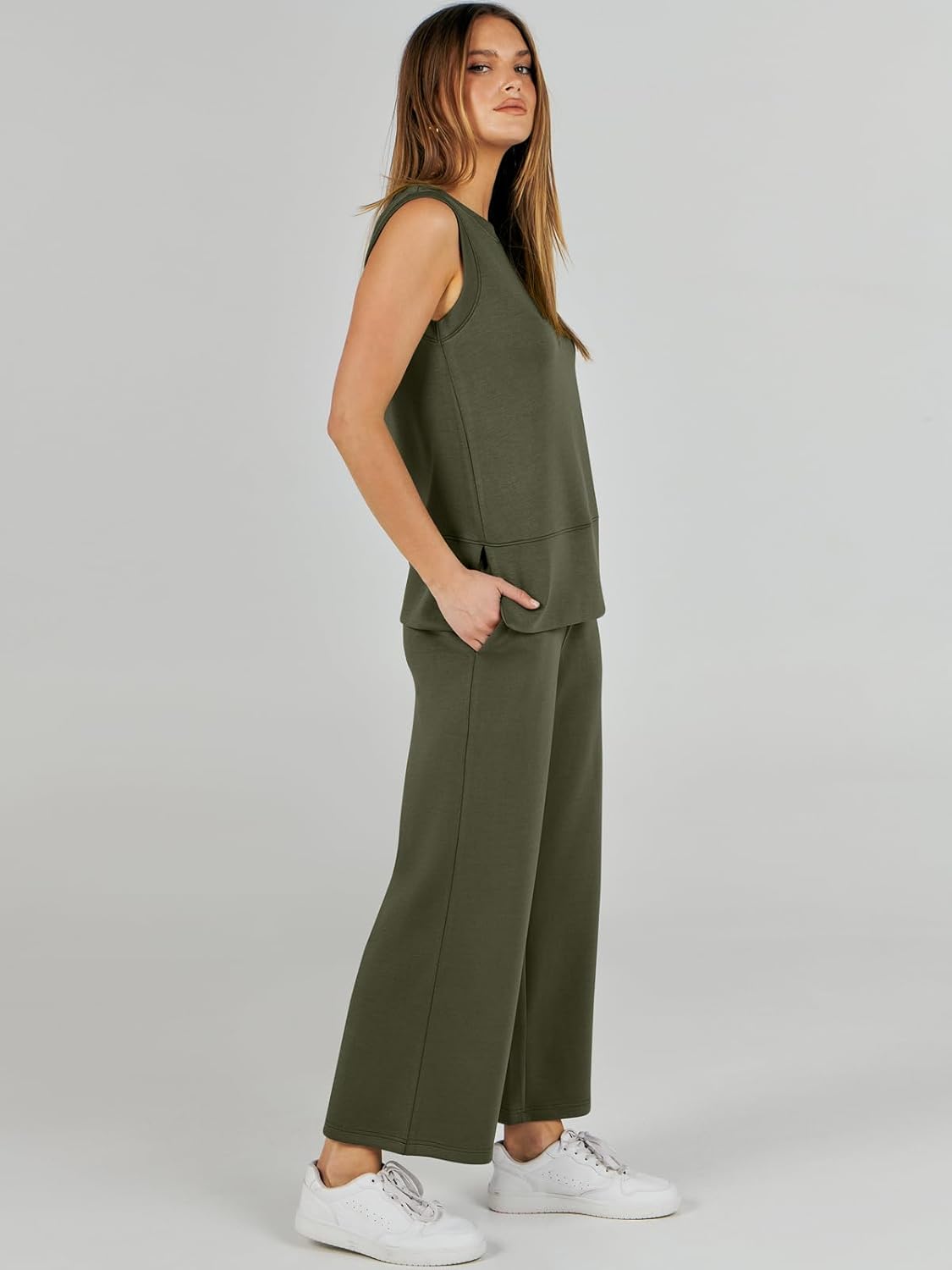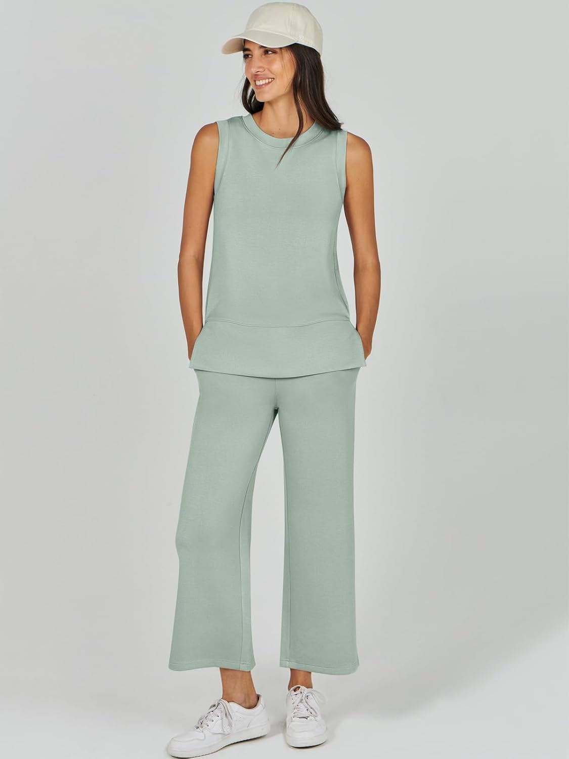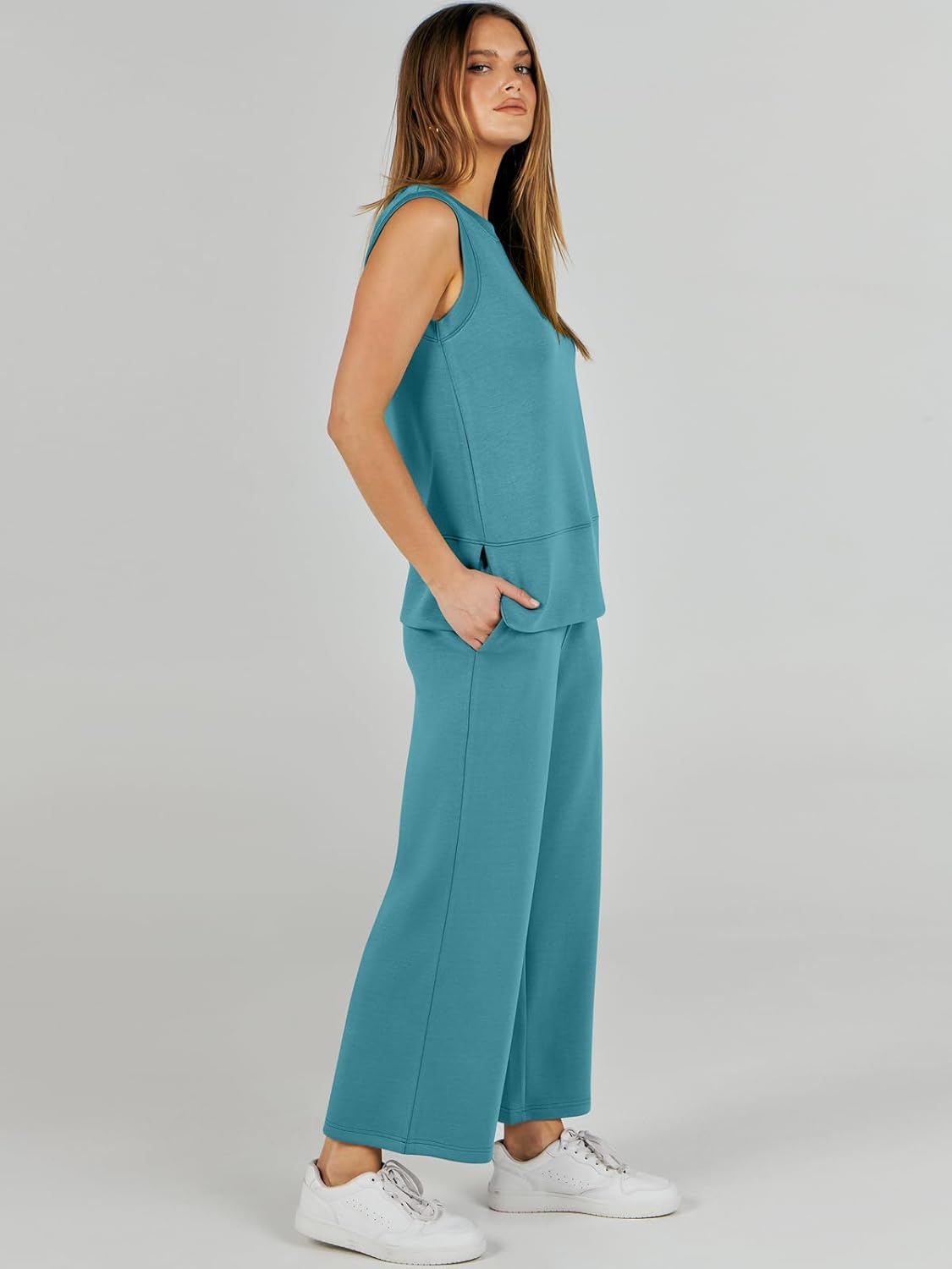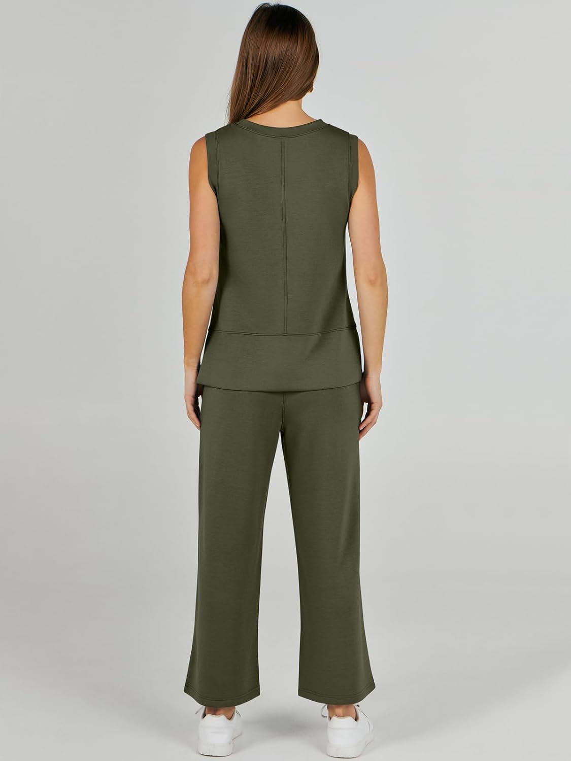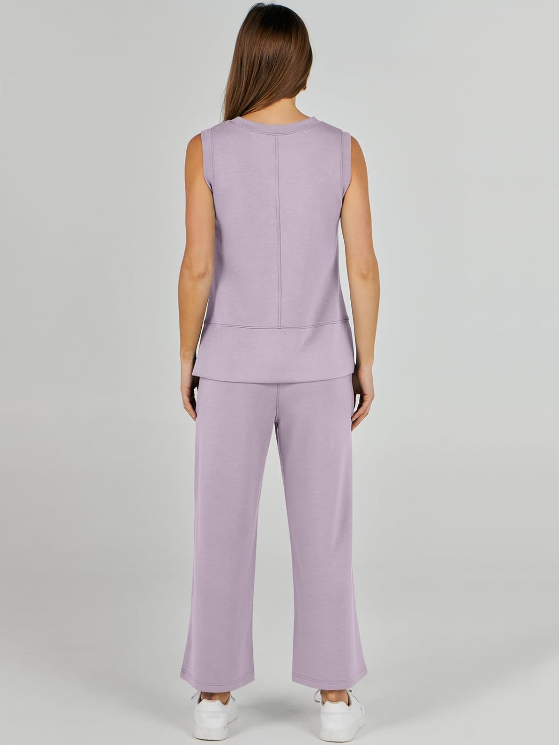 Women's 2 Piece Sets Summer Outfits Sleeveless Wide Leg Tracksuits Casual Sweat Sets Lounge Sweatsuits