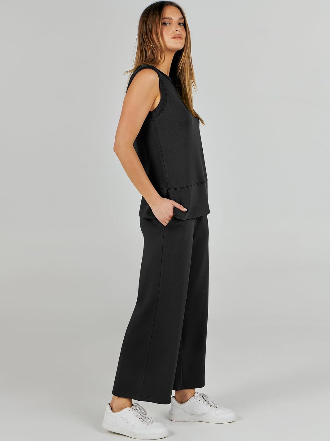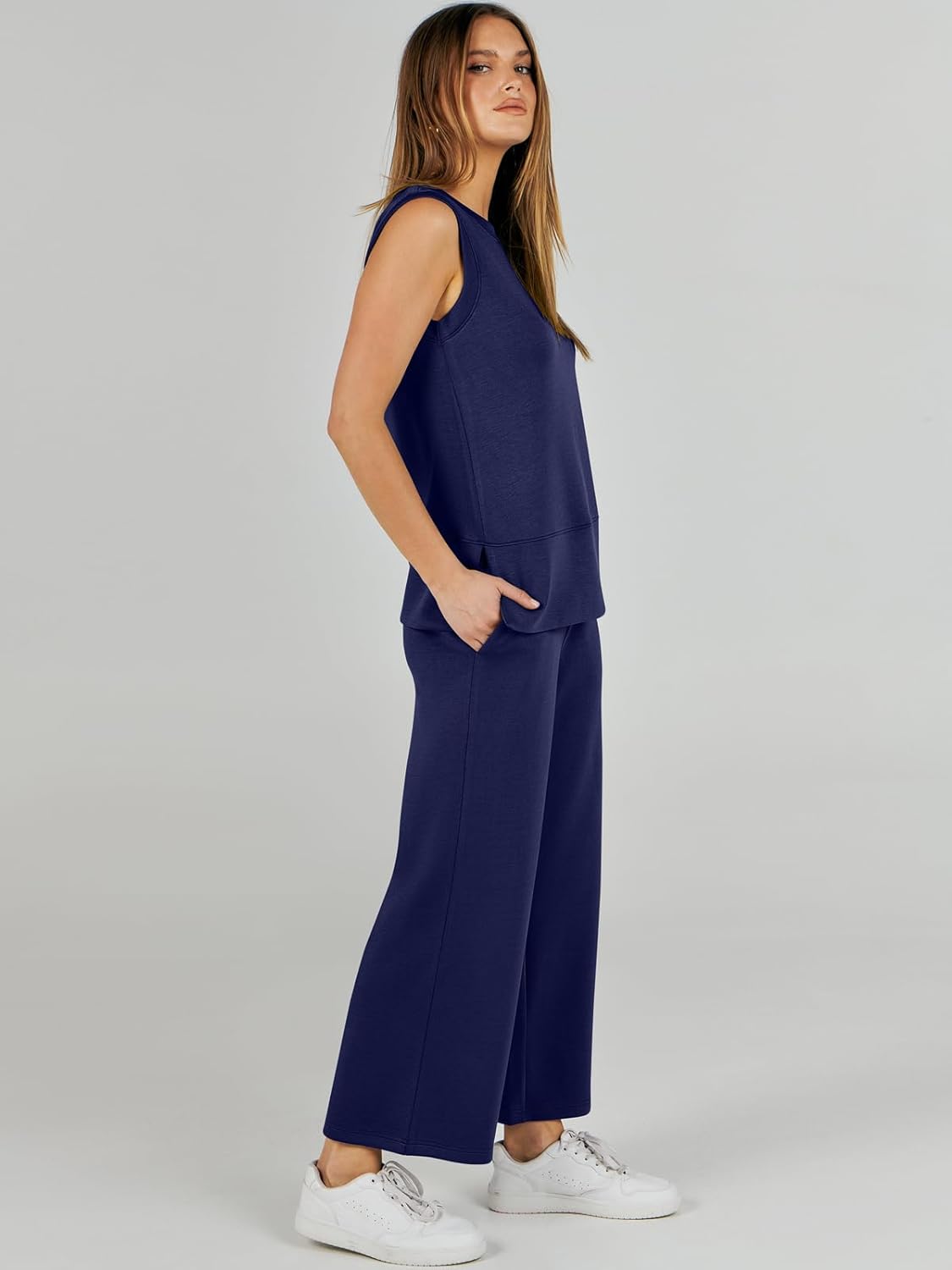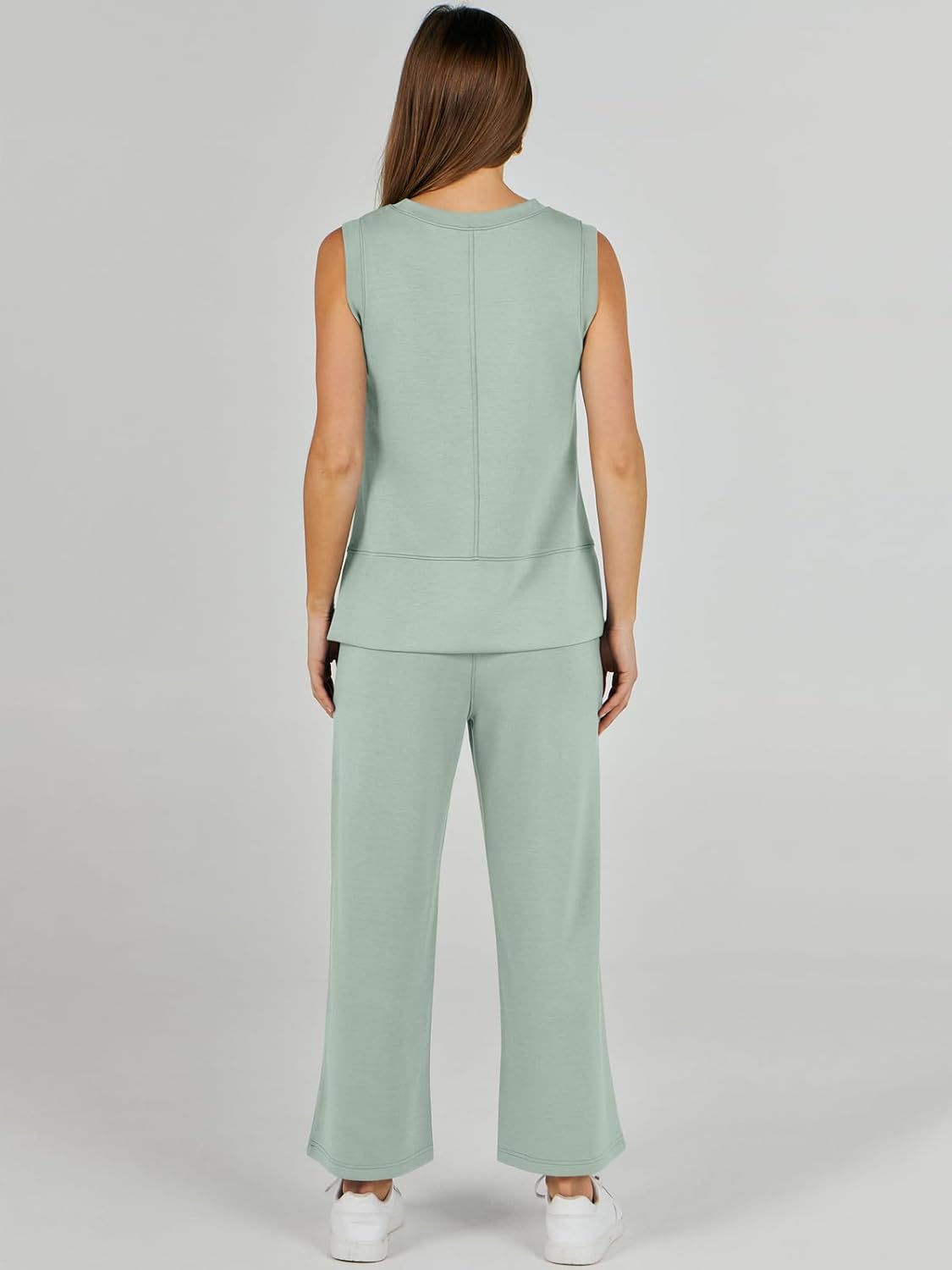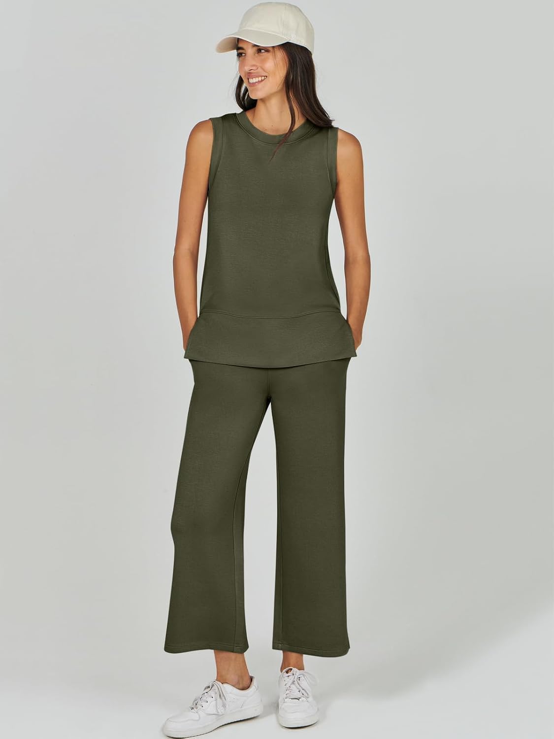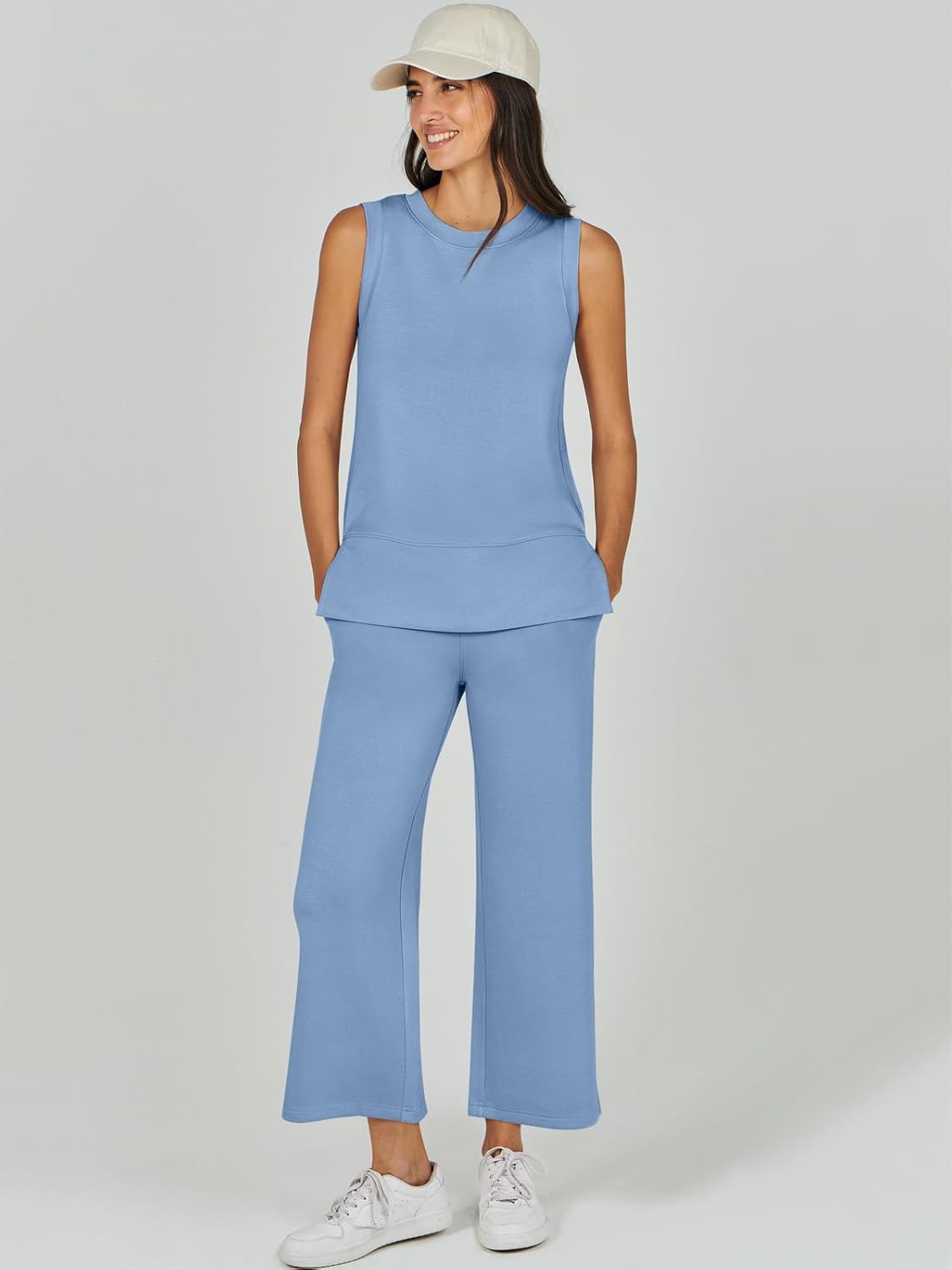 Women's 2 Piece Sets Summer Outfits Sleeveless Wide Leg Tracksuits Casual Sweat Sets Lounge Sweatsuits