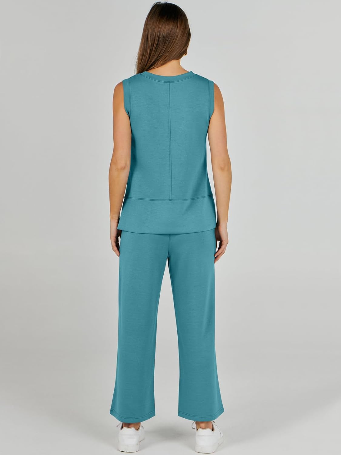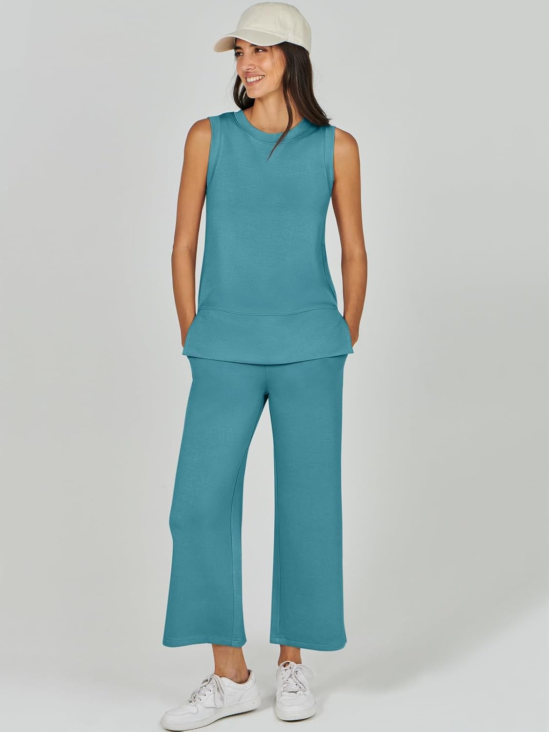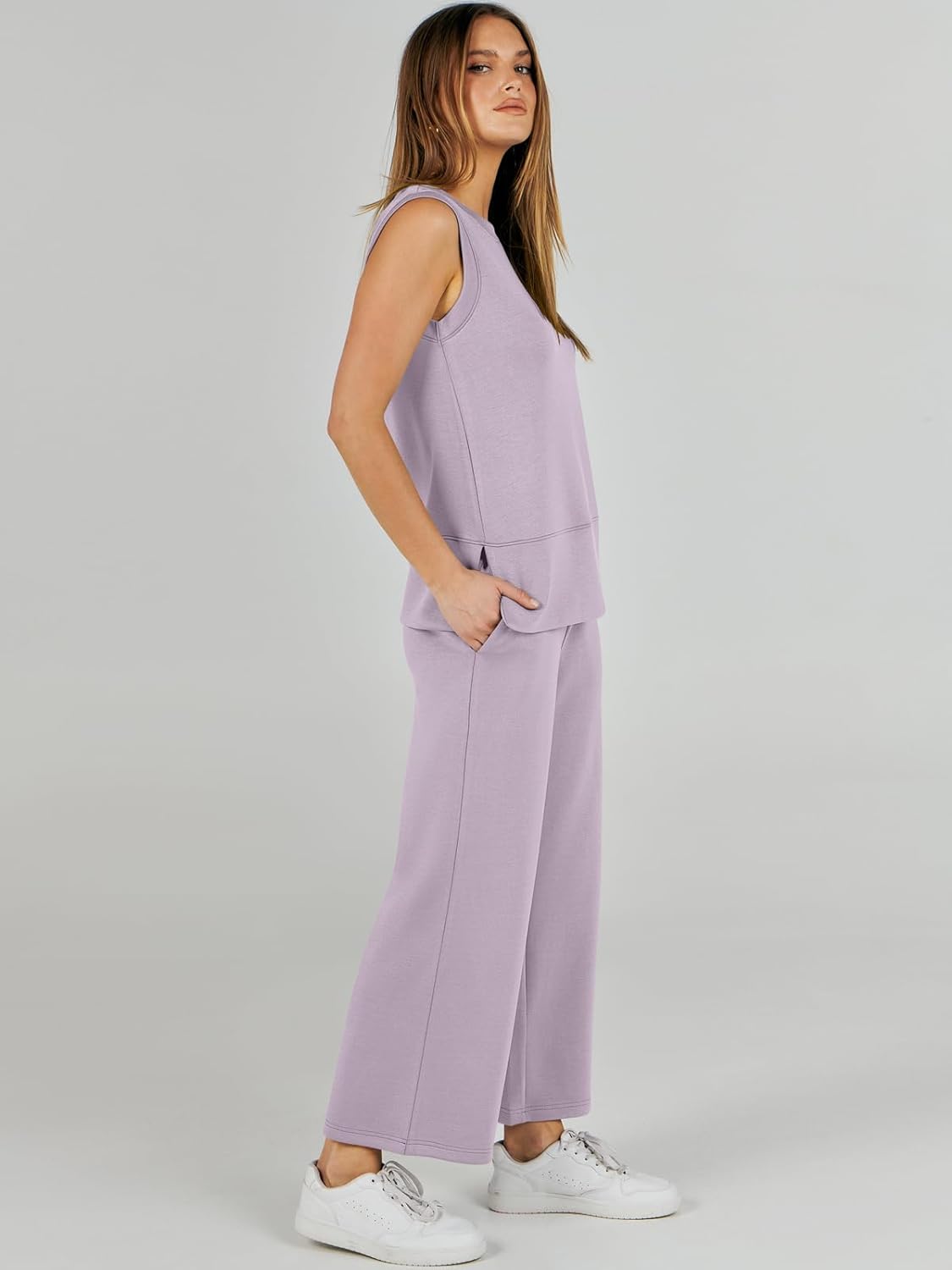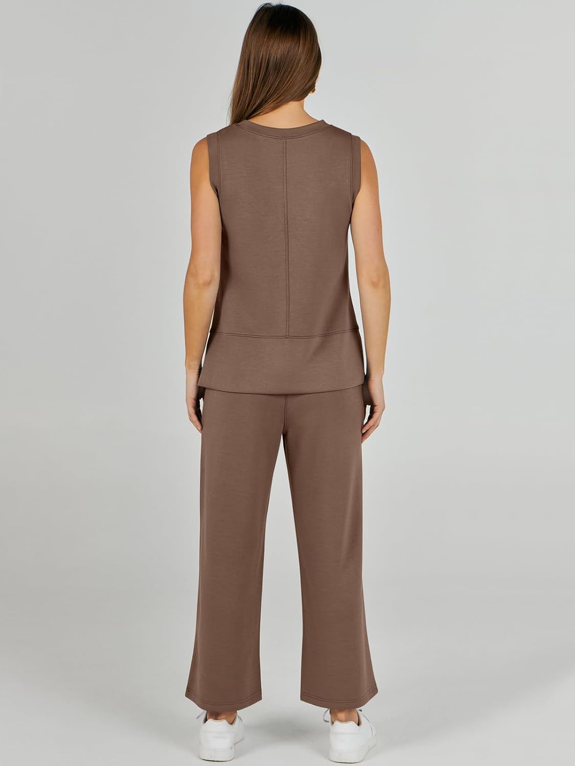 Women's 2 Piece Sets Summer Outfits Sleeveless Wide Leg Tracksuits Casual Sweat Sets Lounge Sweatsuits