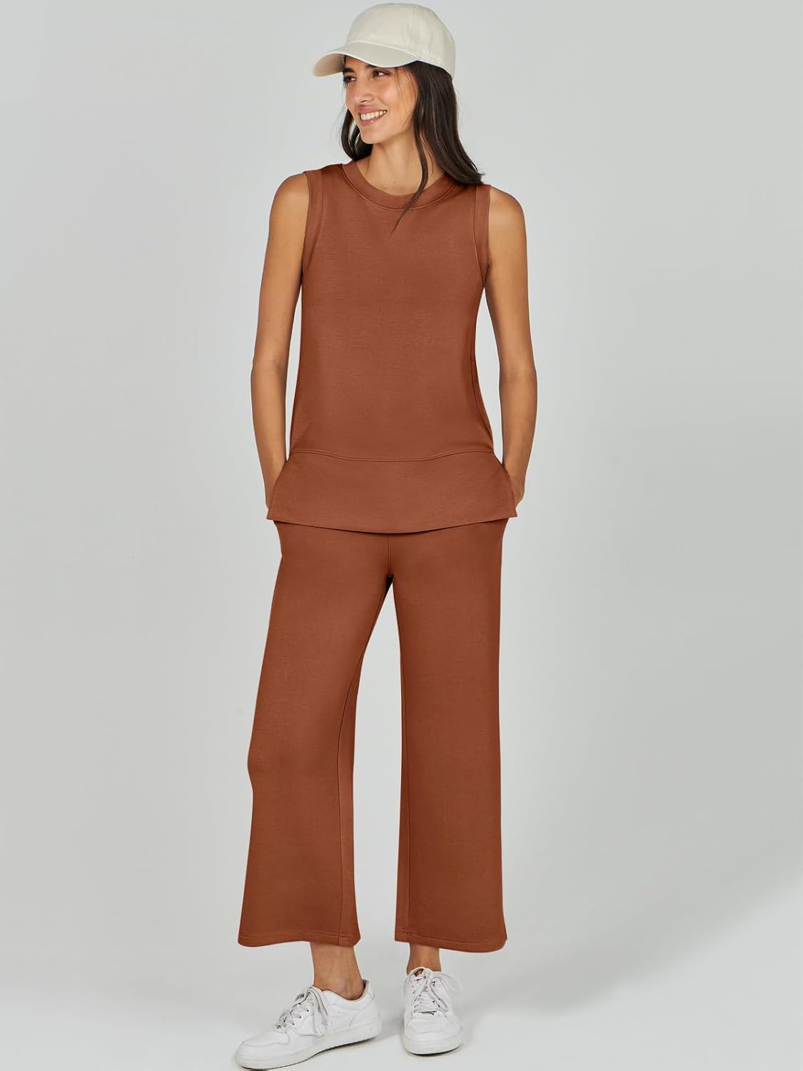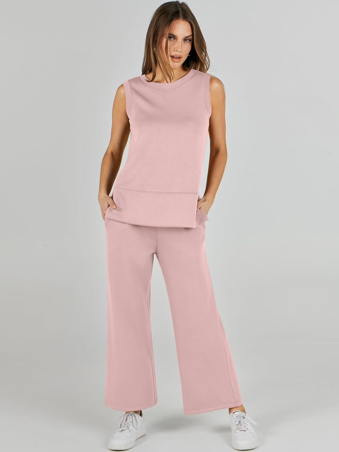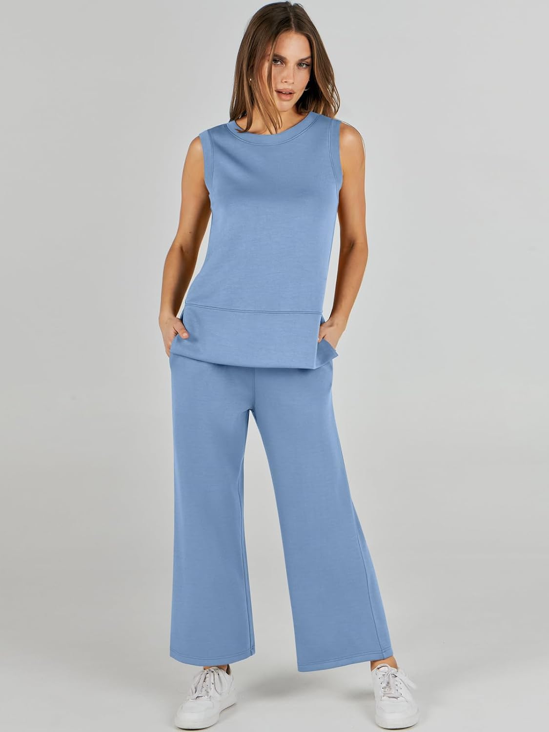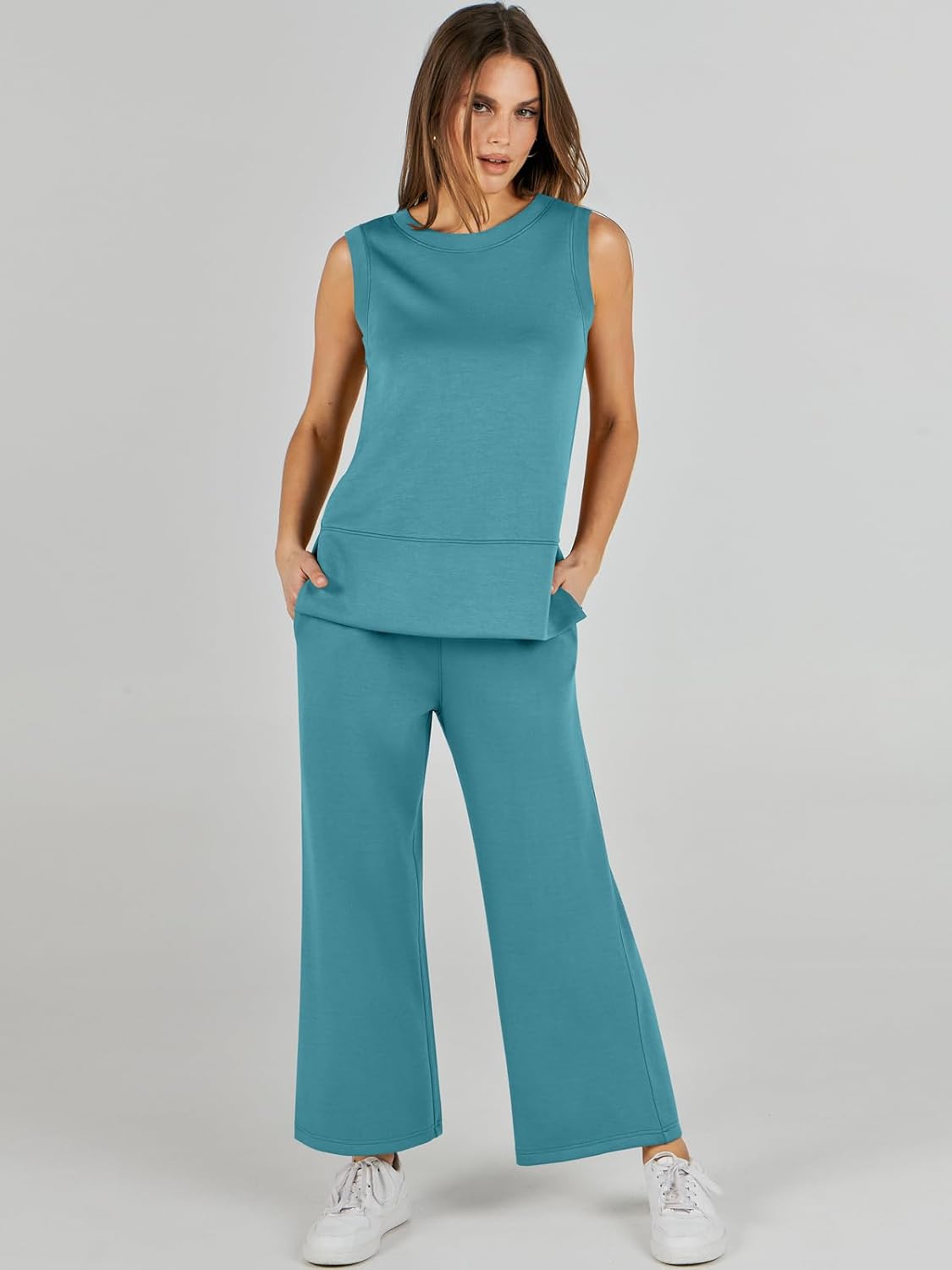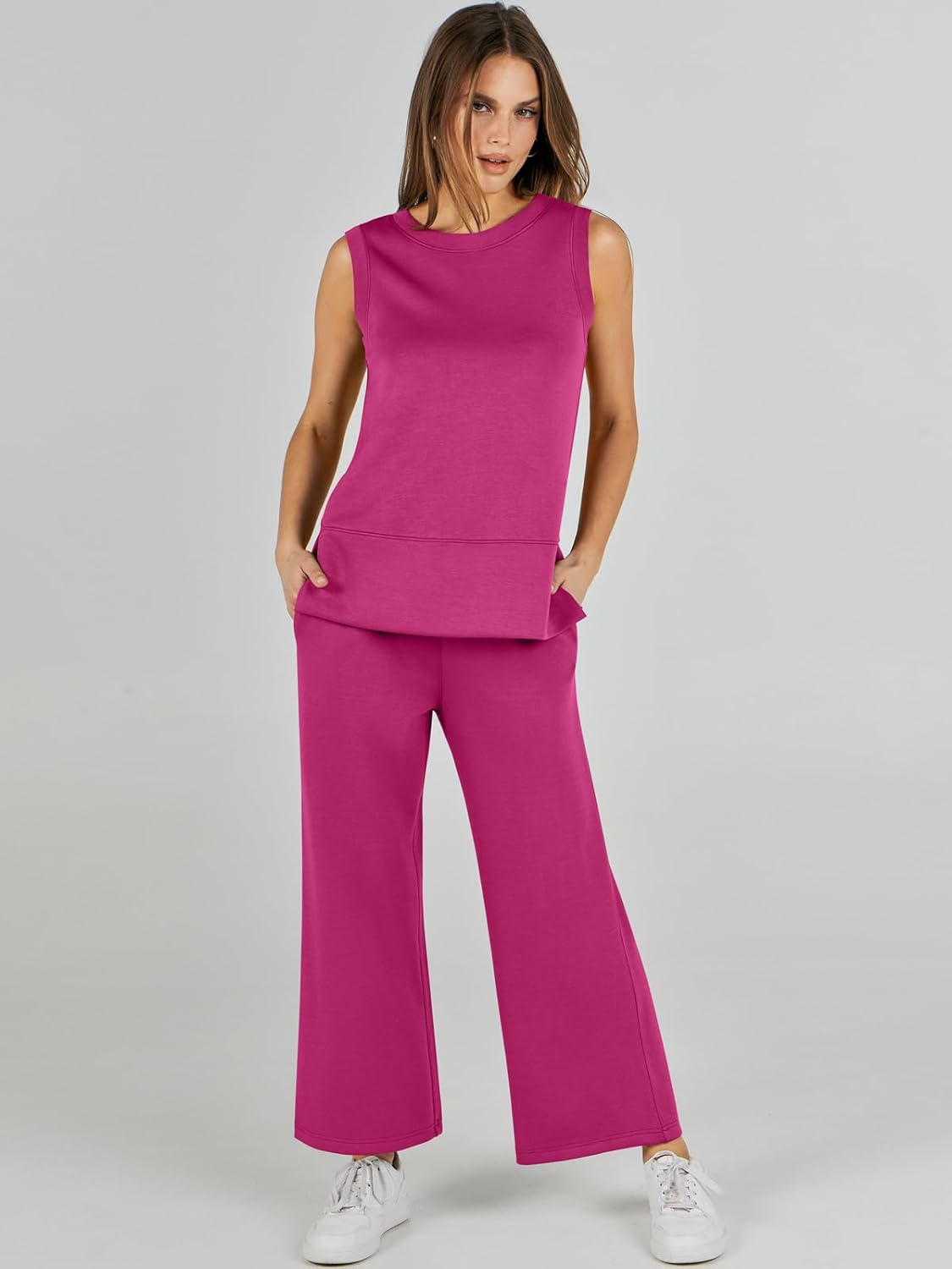 Women's 2 Piece Sets Summer Outfits Sleeveless Wide Leg Tracksuits Casual Sweat Sets Lounge Sweatsuits