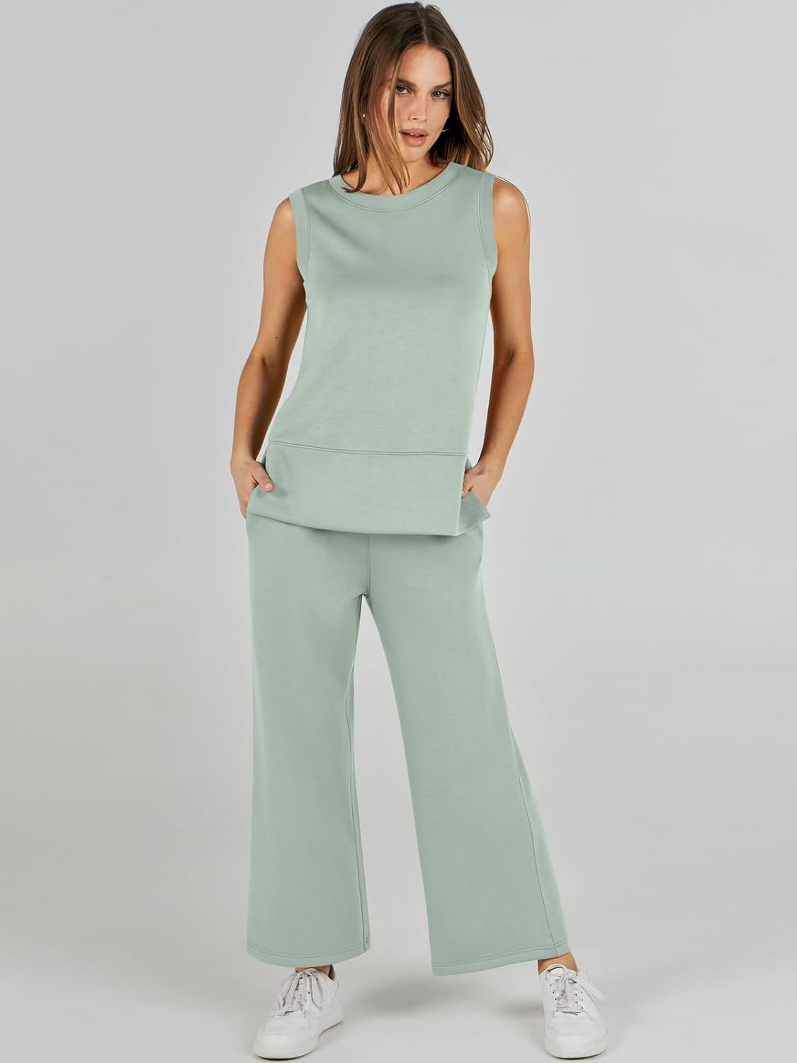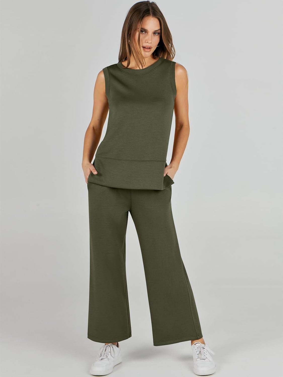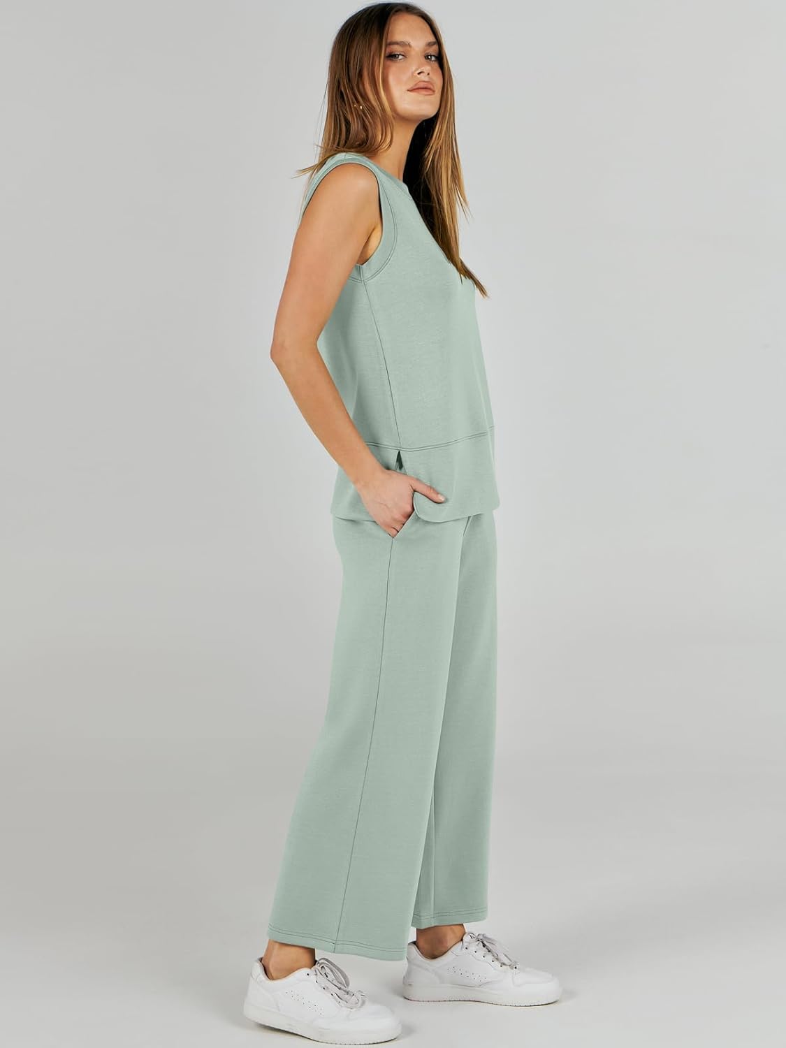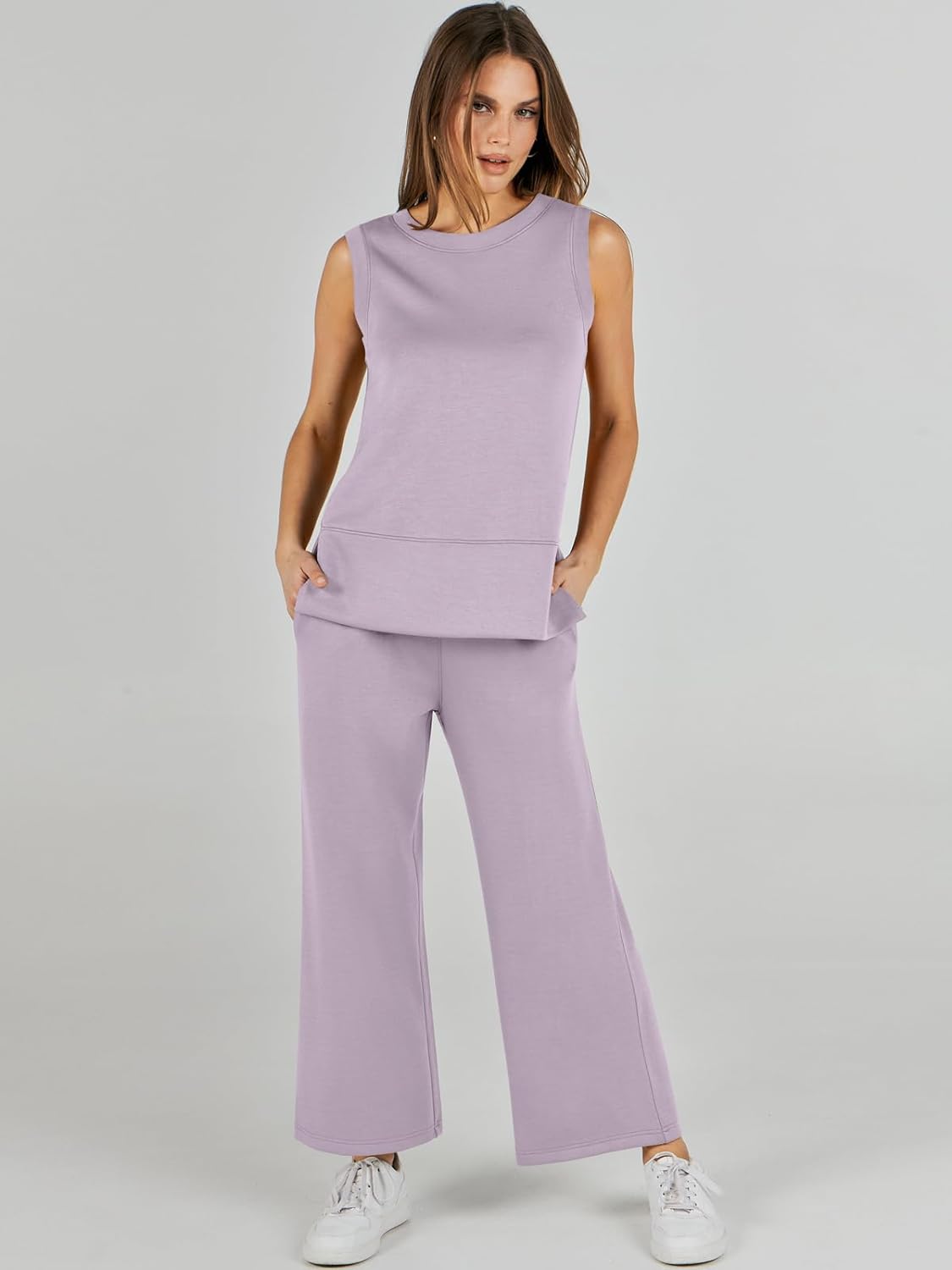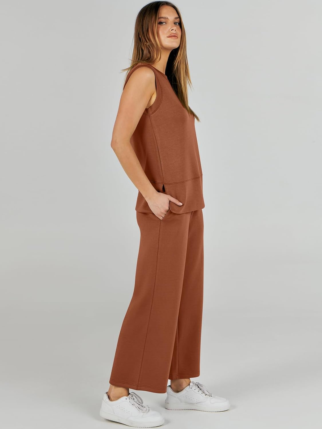Women's 2 Piece Sets Summer Outfits Sleeveless Wide Leg Tracksuits Casual Sweat Sets Lounge Sweatsuits