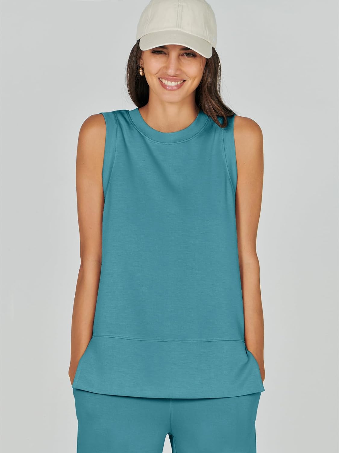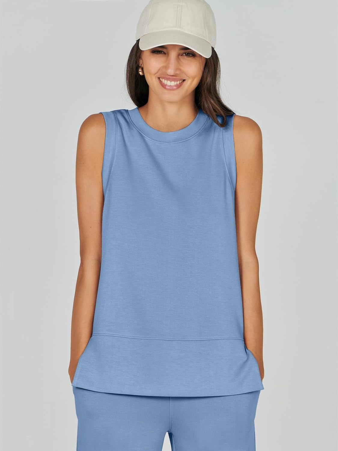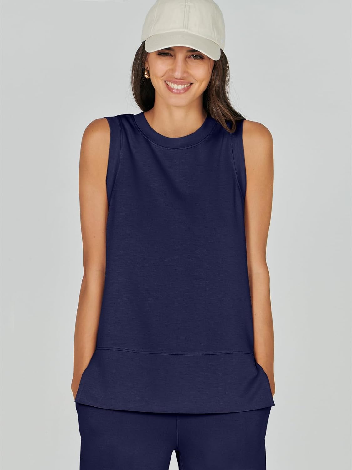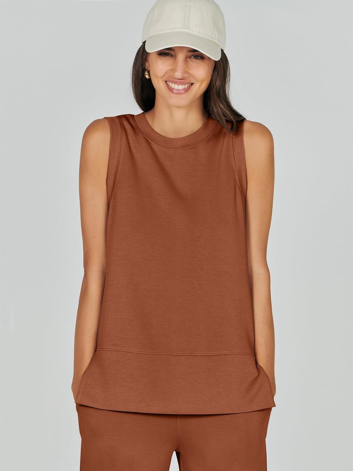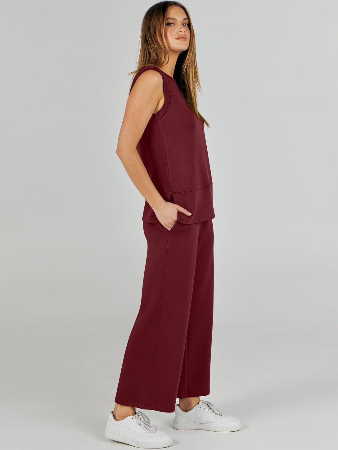 Women's 2 Piece Sets Summer Outfits Sleeveless Wide Leg Tracksuits Casual Sweat Sets Lounge Sweatsuits