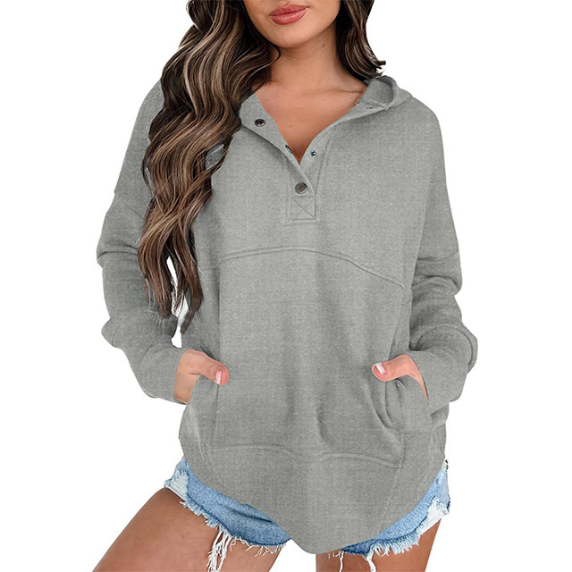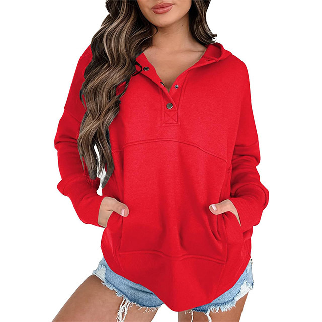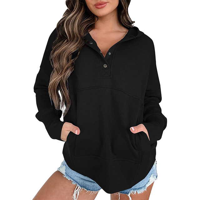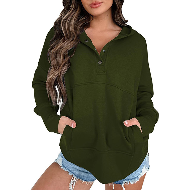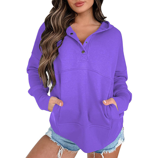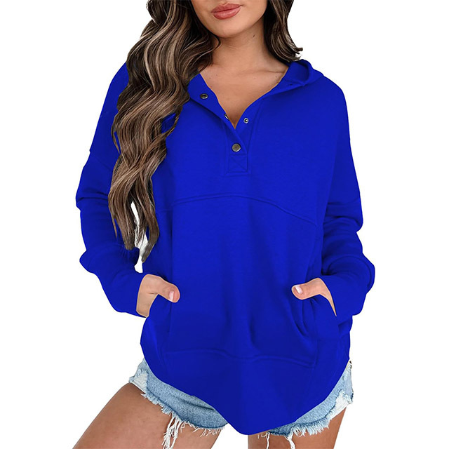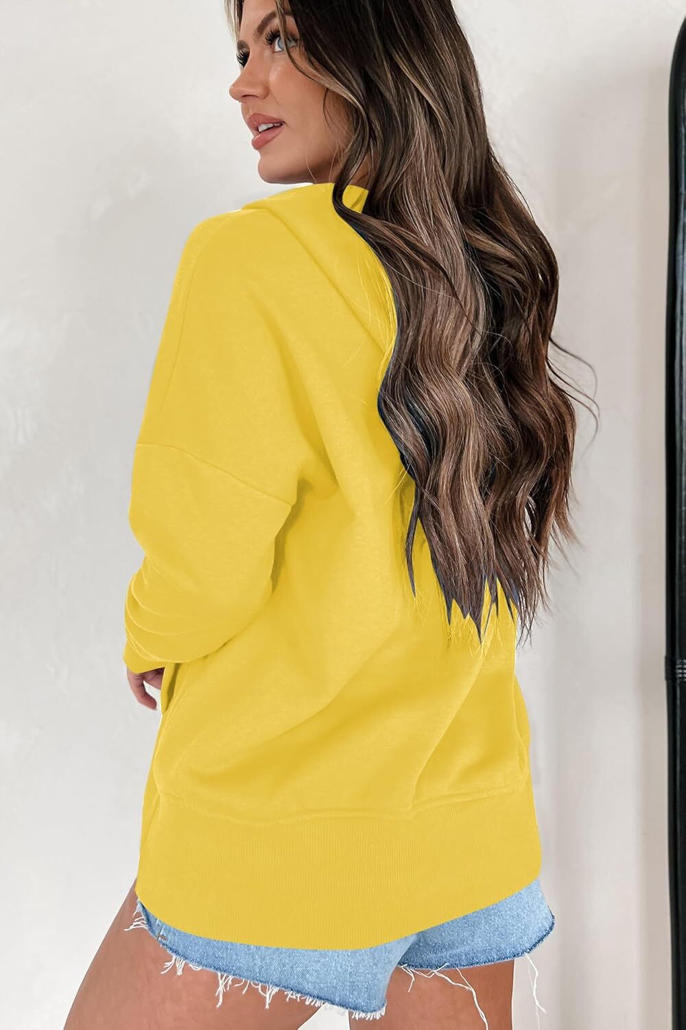 Women's Casual Long Sleeve Lapel Zipper Sweatshirt Drawstring Loose Pullover Tops