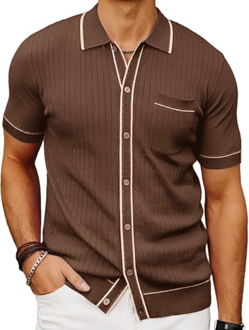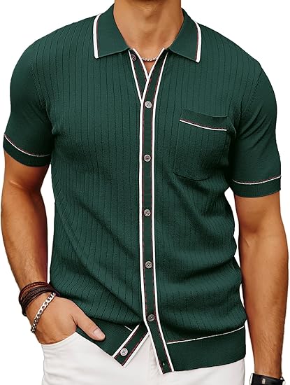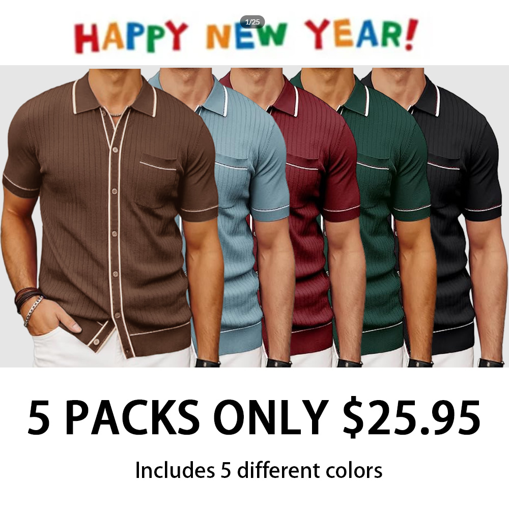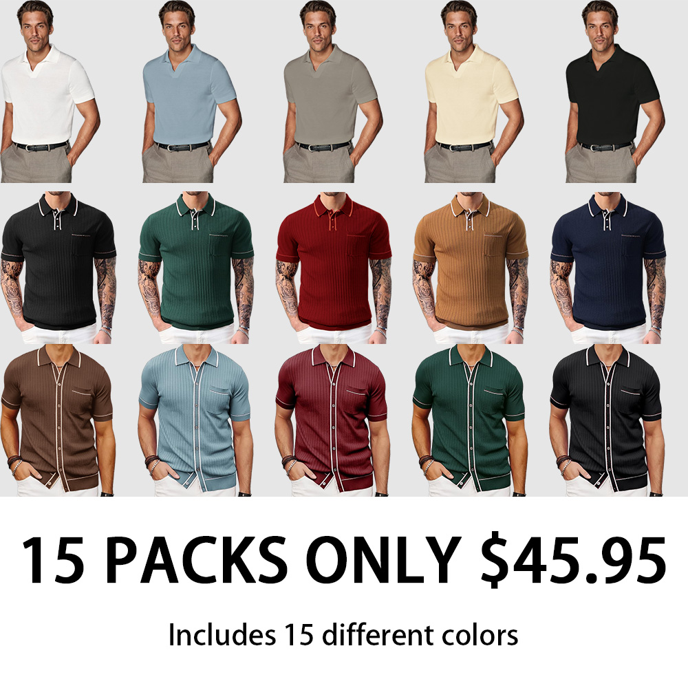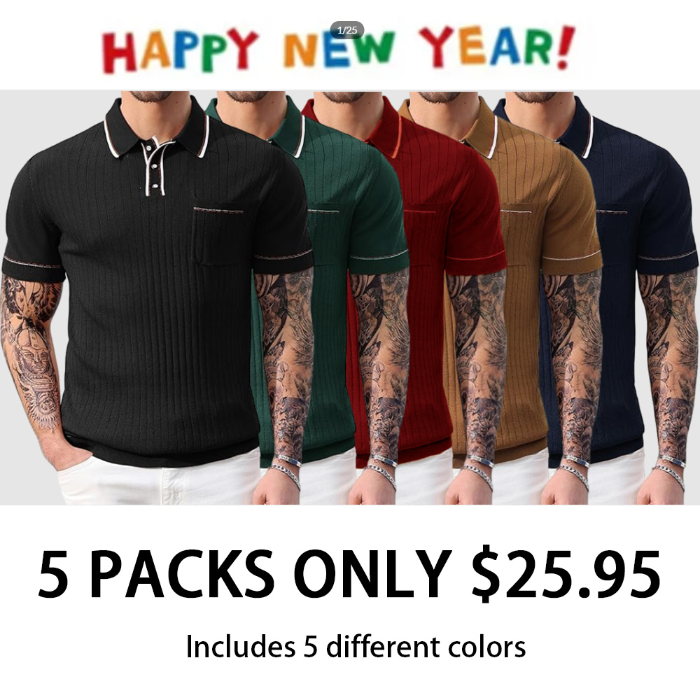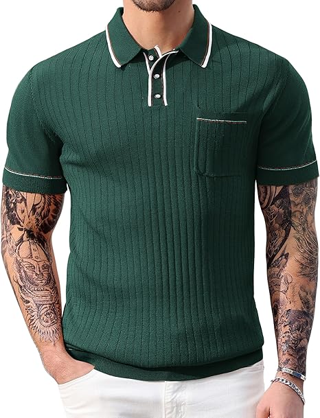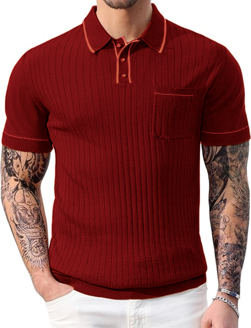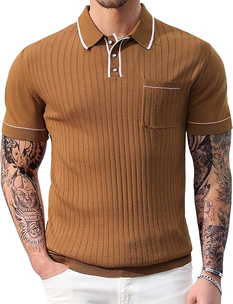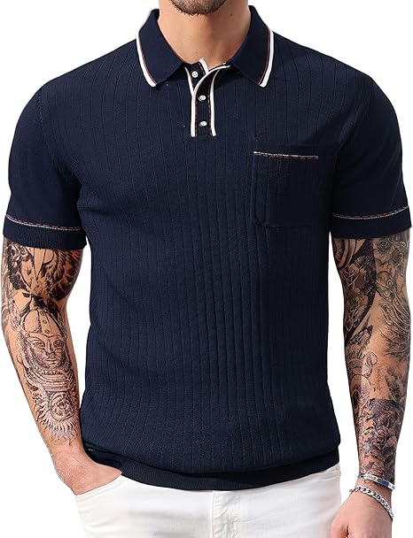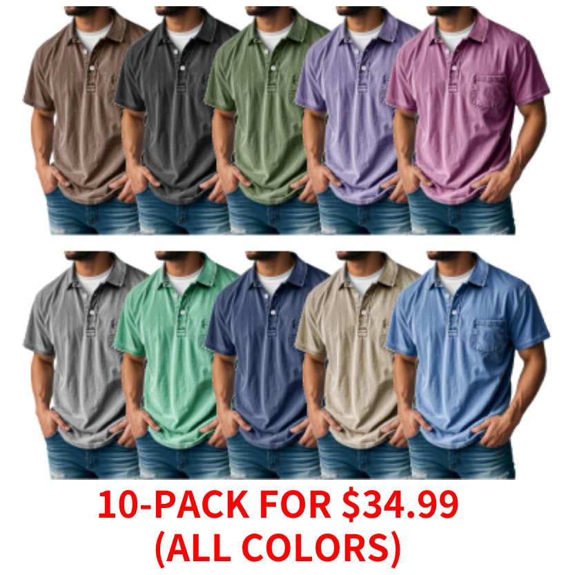 Men's Retro Lapel Button Pocket Casual Short Sleeve POLO Shirt