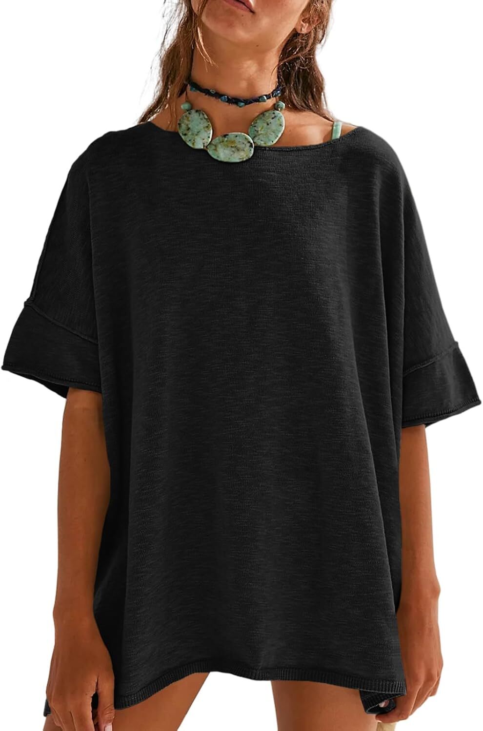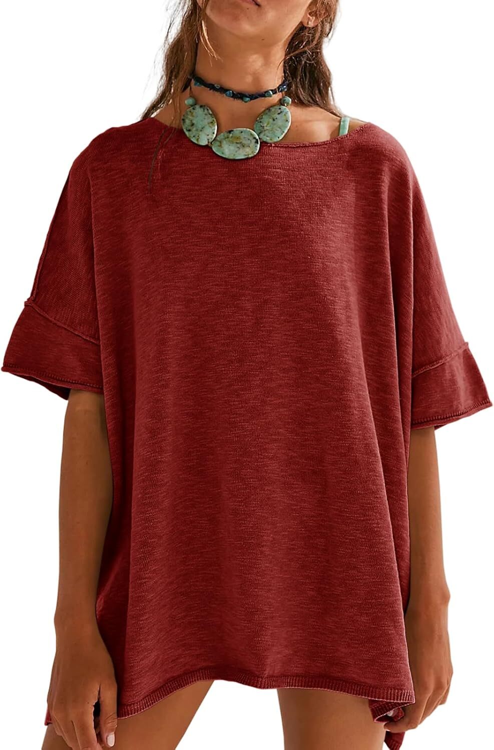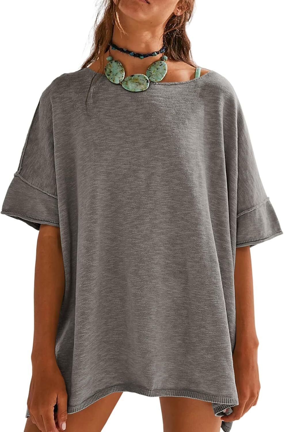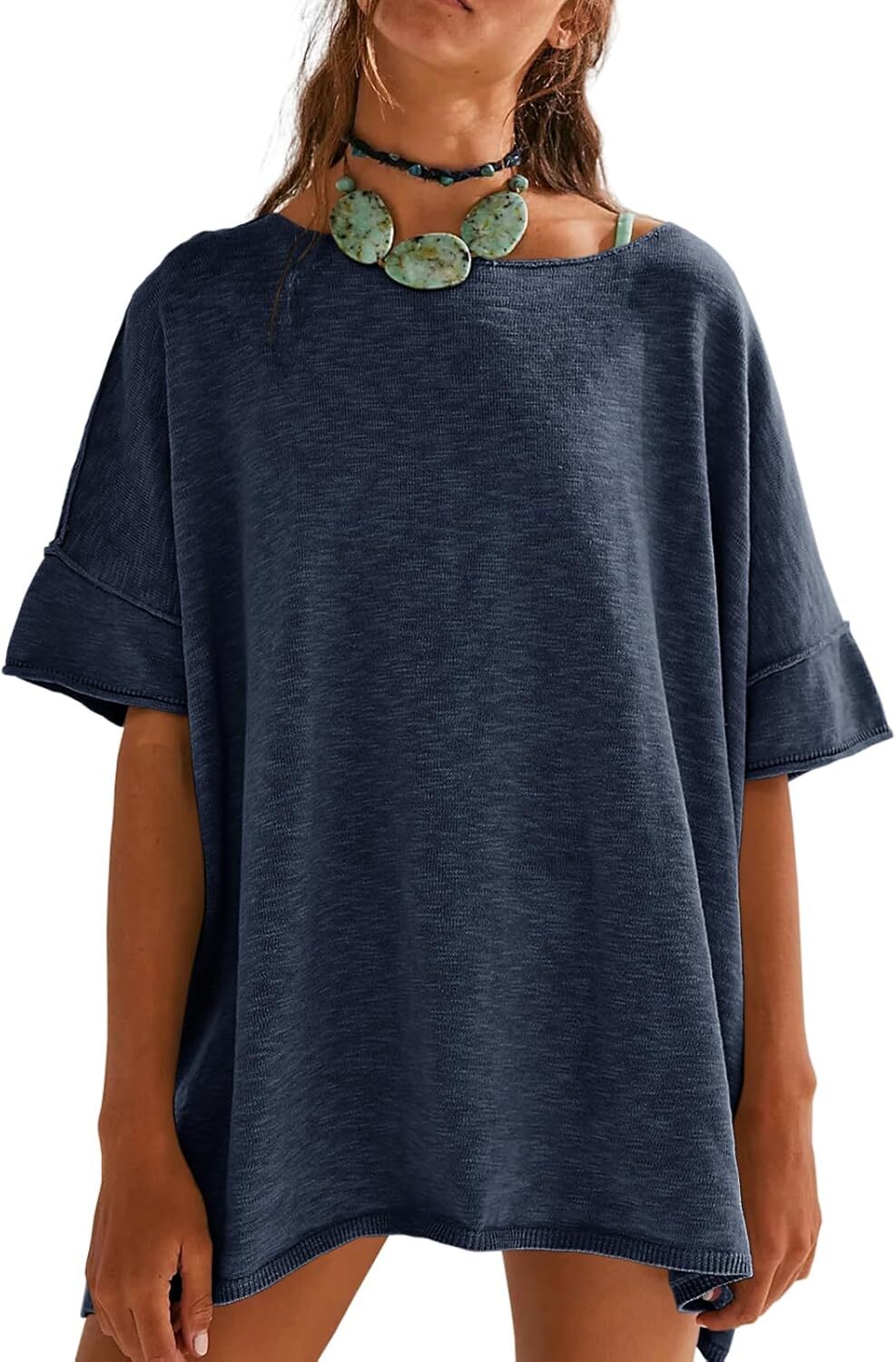 💝Women's Oversized T Shirts Side Slit Hem Blouse Tunic Tops
