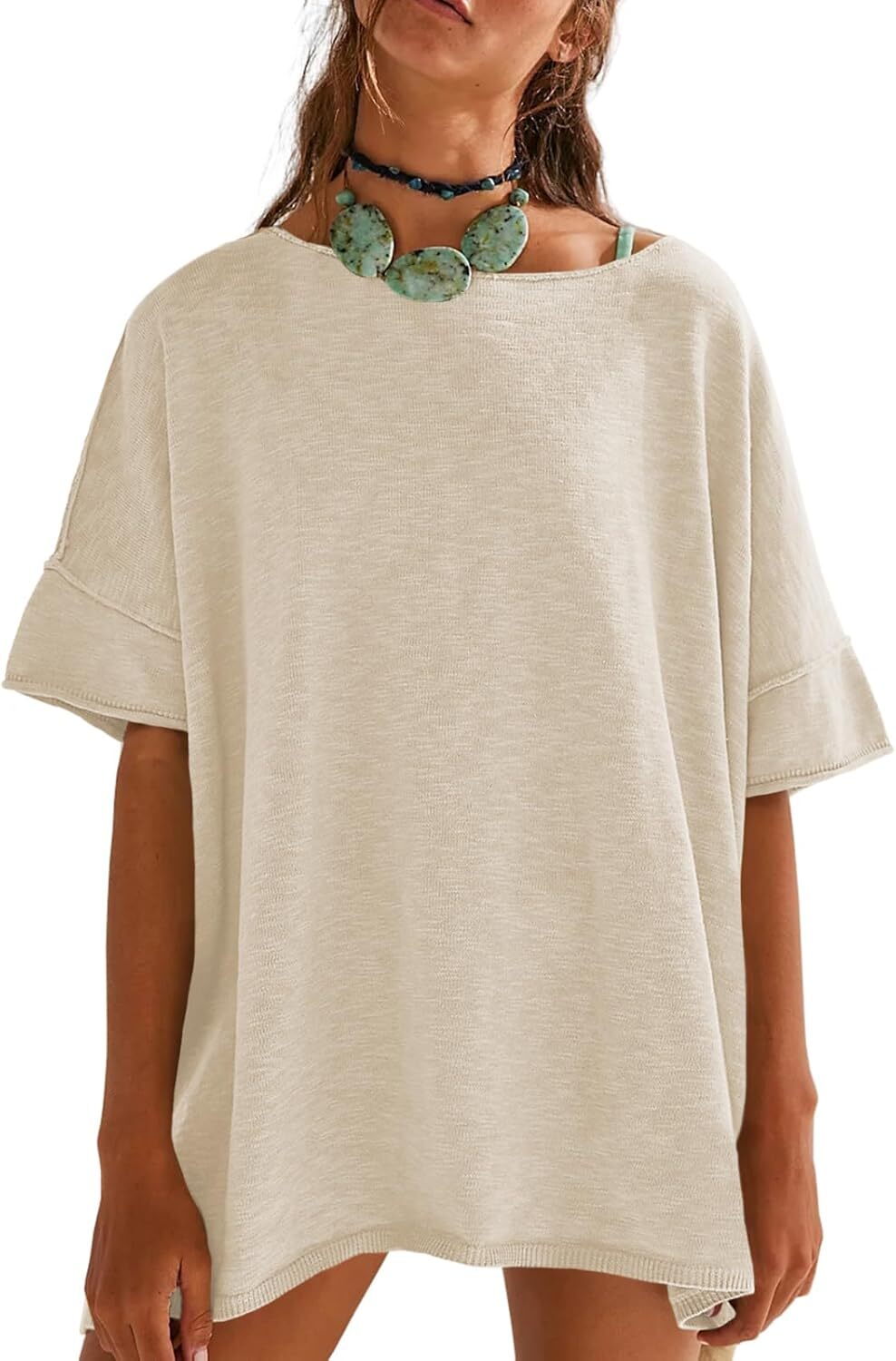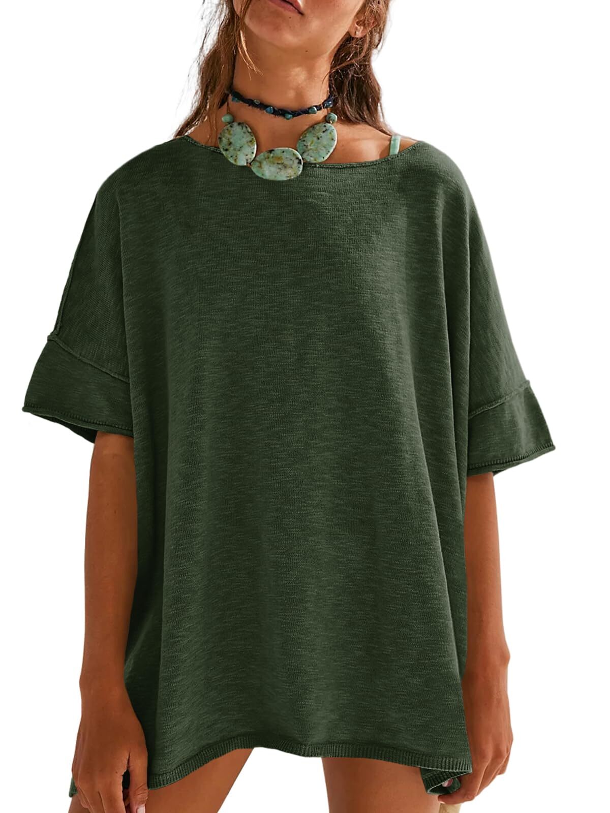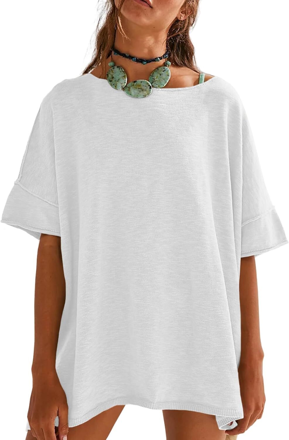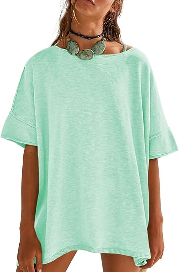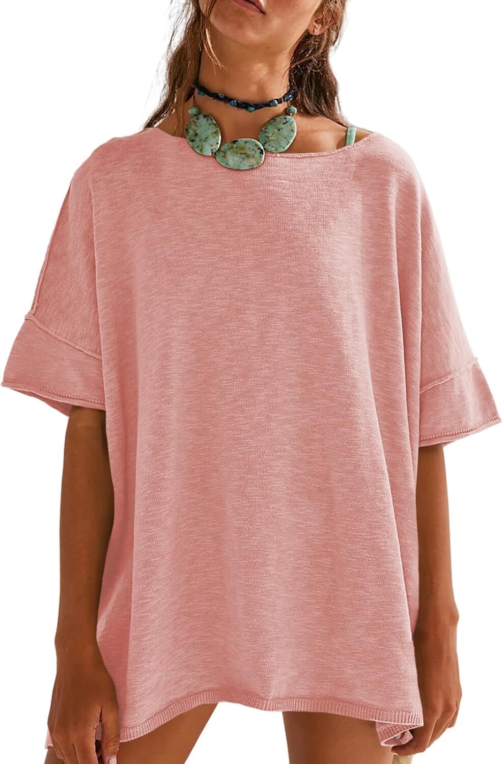 💝Women's Oversized T Shirts Side Slit Hem Blouse Tunic Tops