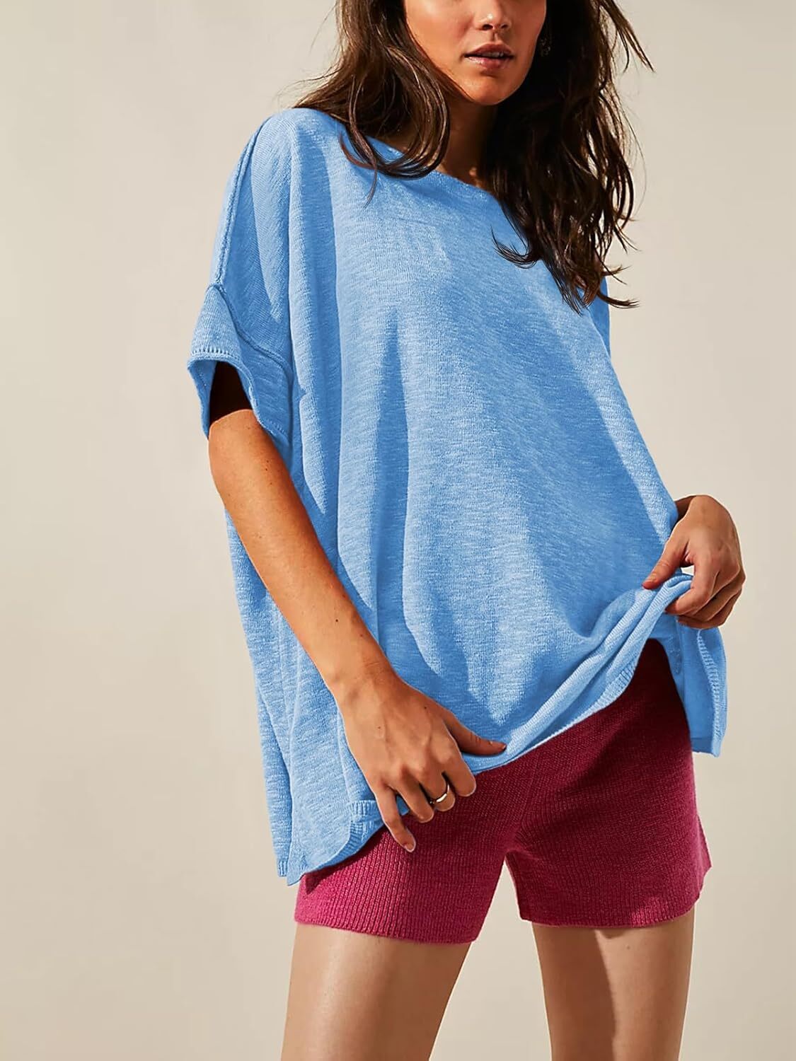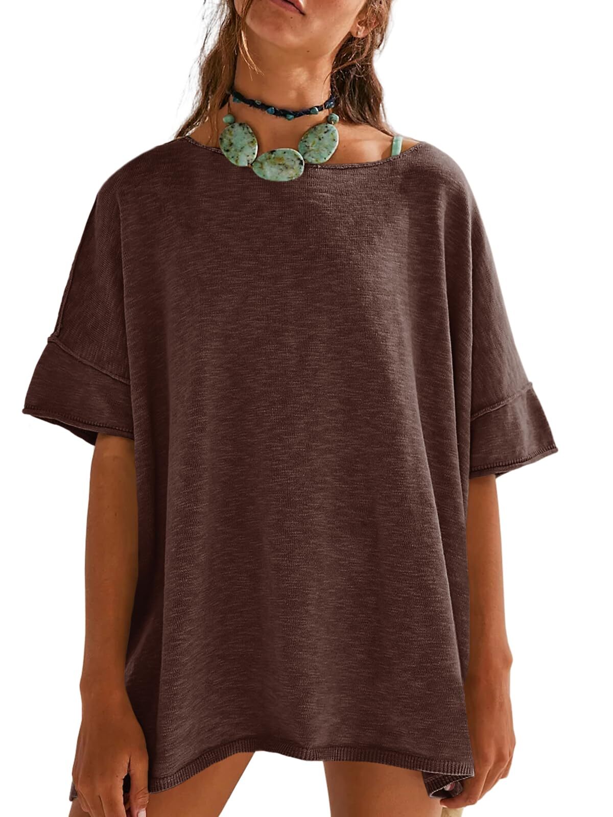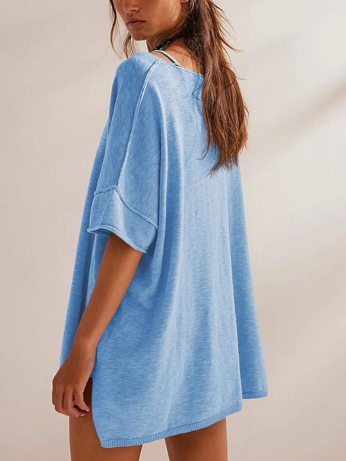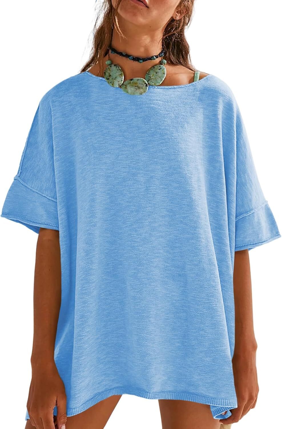 💝Women's Oversized T Shirts Side Slit Hem Blouse Tunic Tops