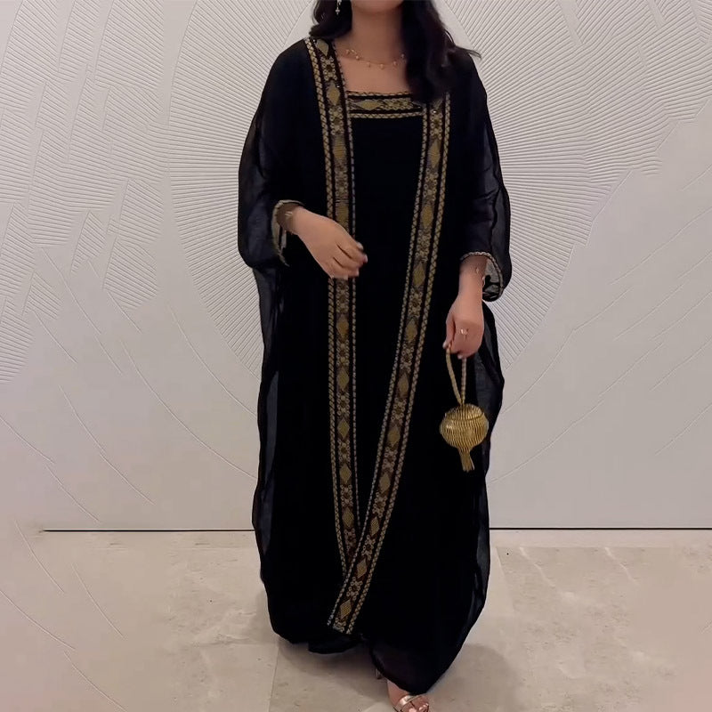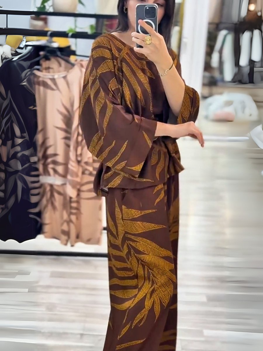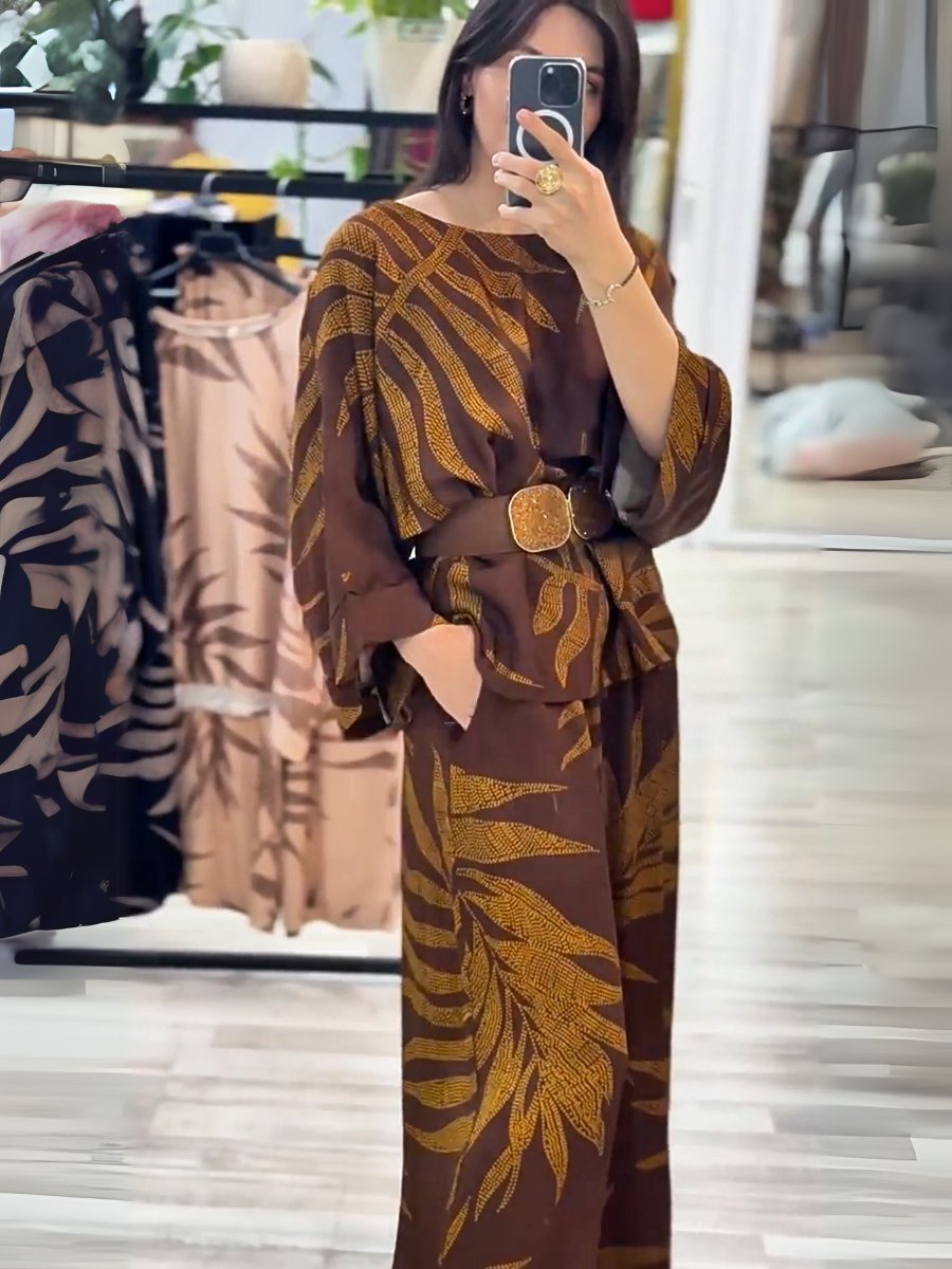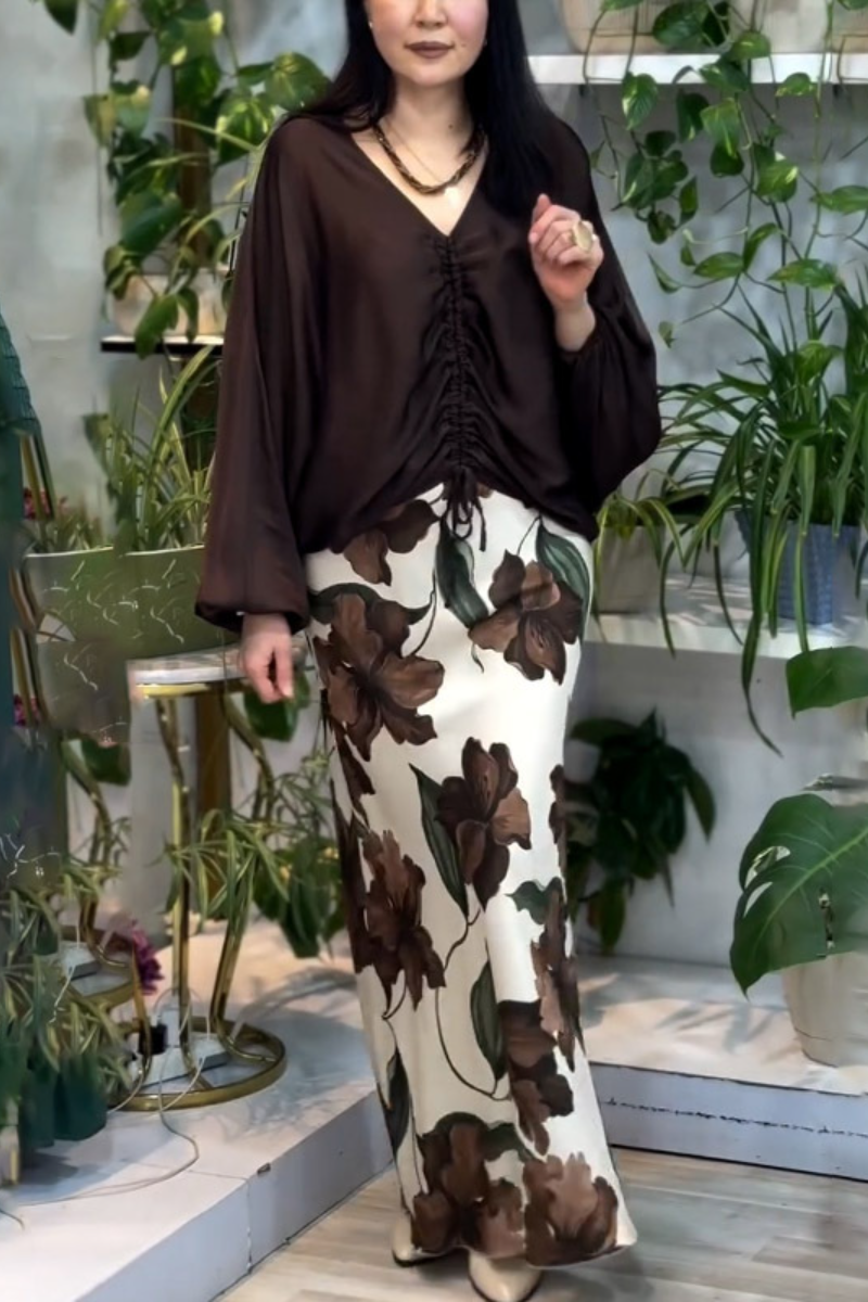 Elegant and sexy printed V-neck top + skirt two-piece set