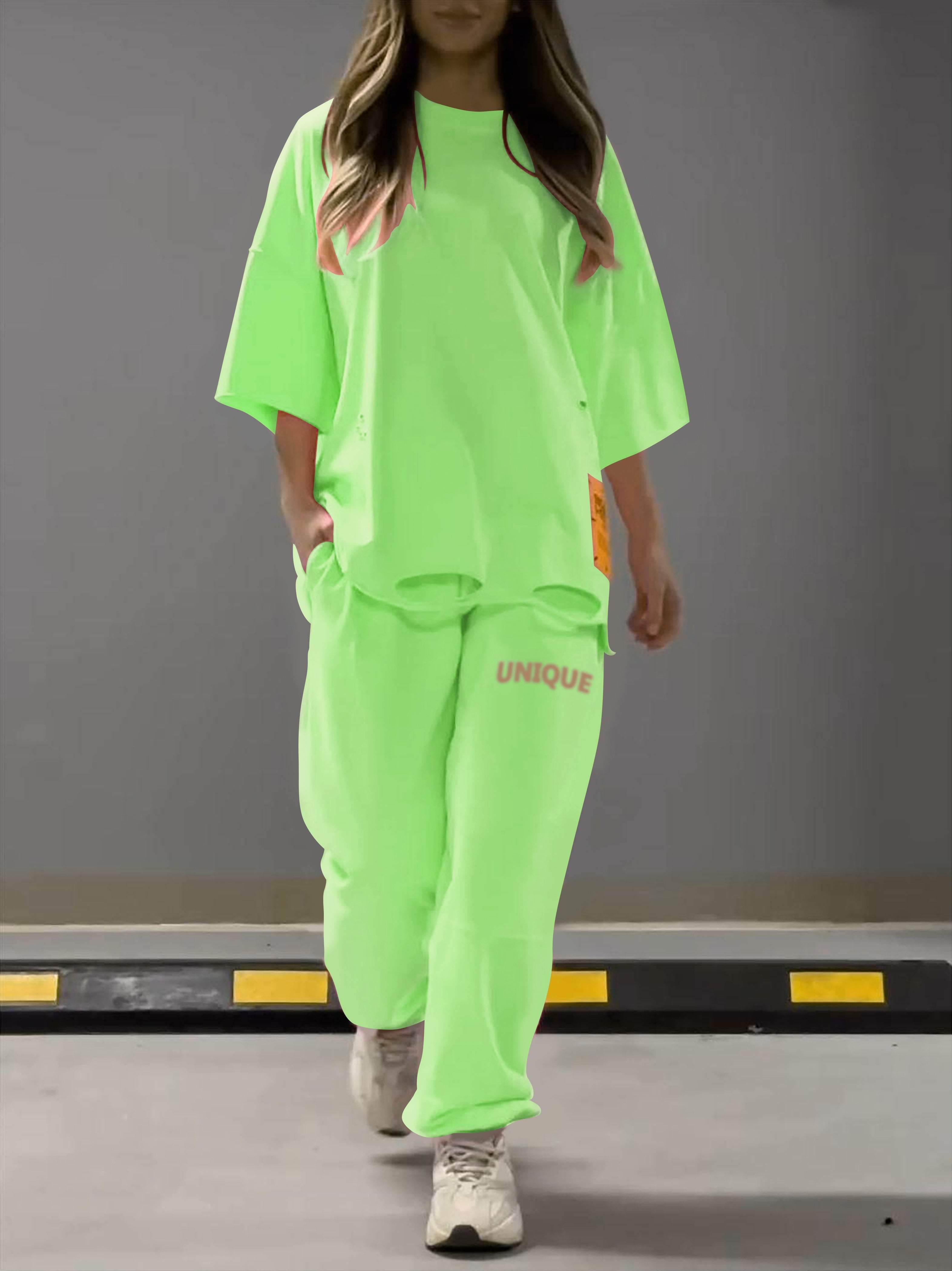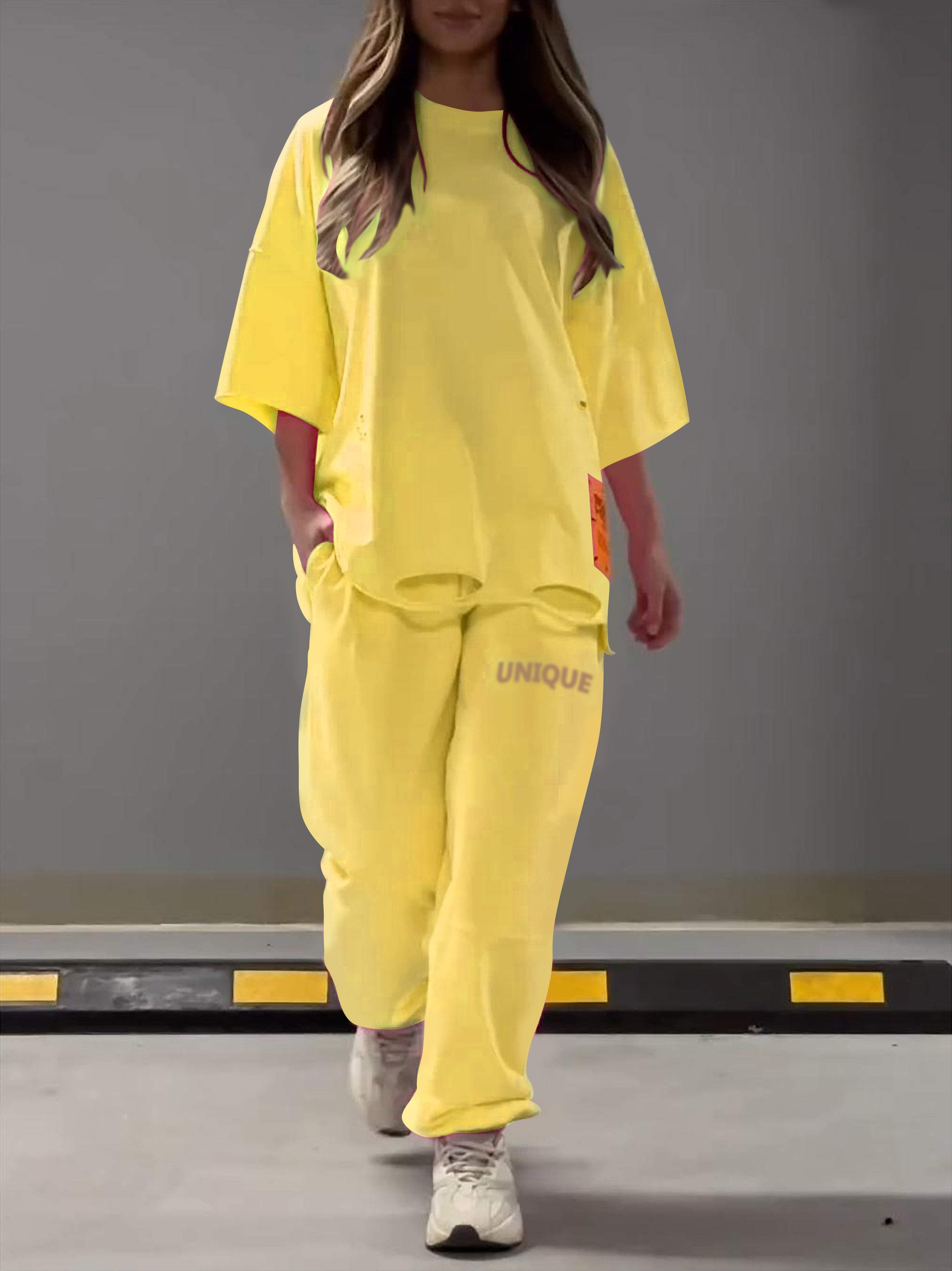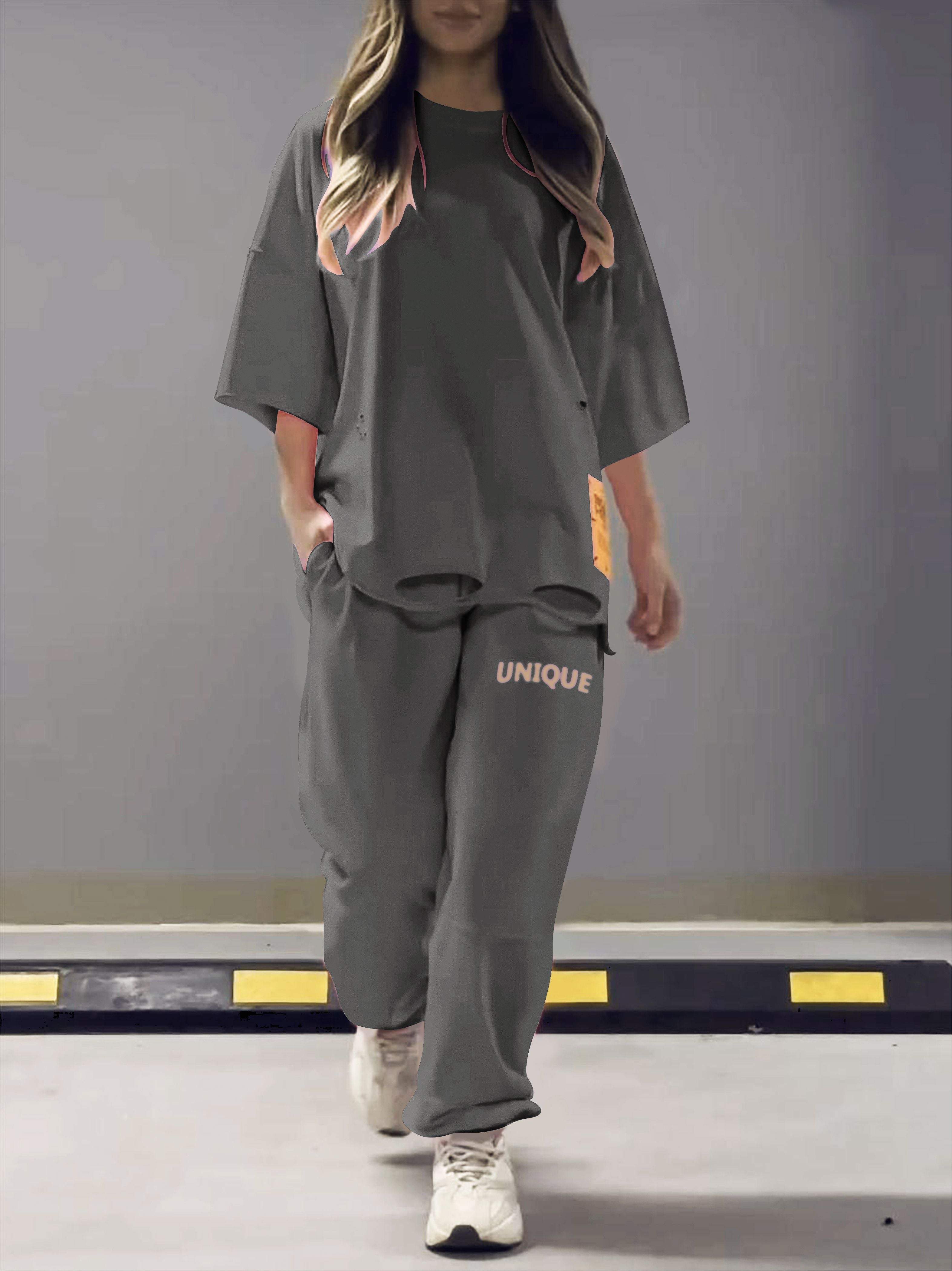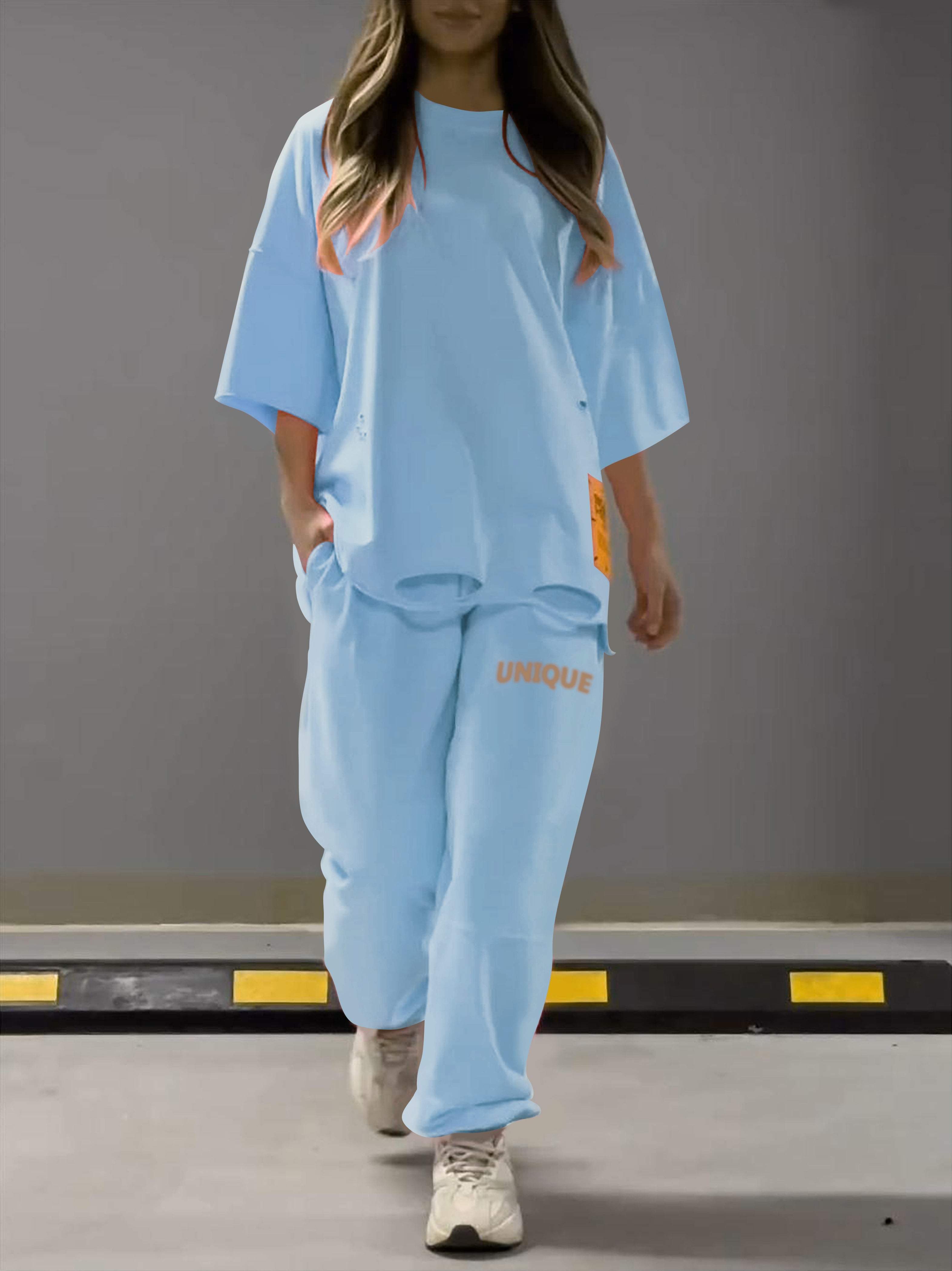 Fashion Loose Hollow Round Neck T-shirt Two-piece Set