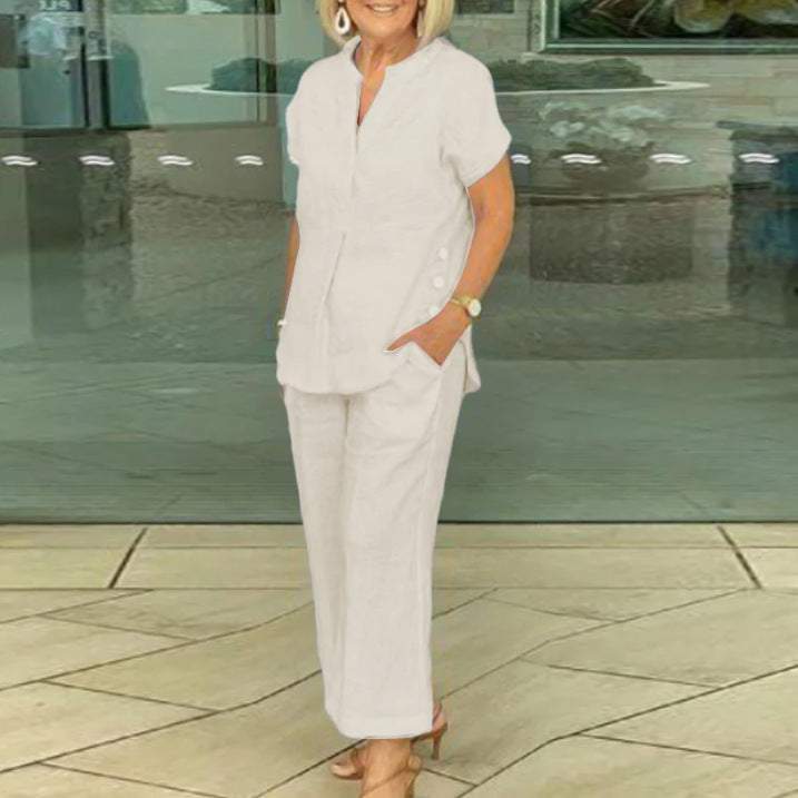 Fashionable and casual summer multi-color V-neck loose cotton and linen suit
